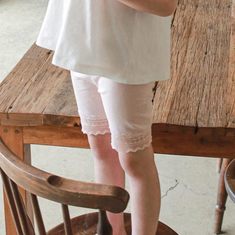 2025 여름 딸기 샌드 한국 아동복 아동 소녀 솔리드 컬러 레이스 레깅스 재고 있음스토어 가기