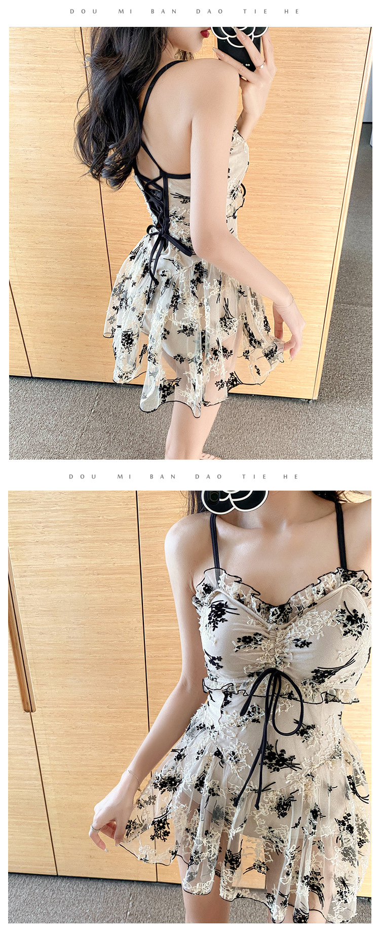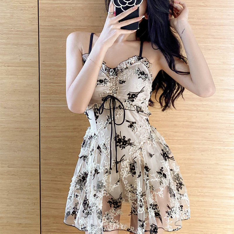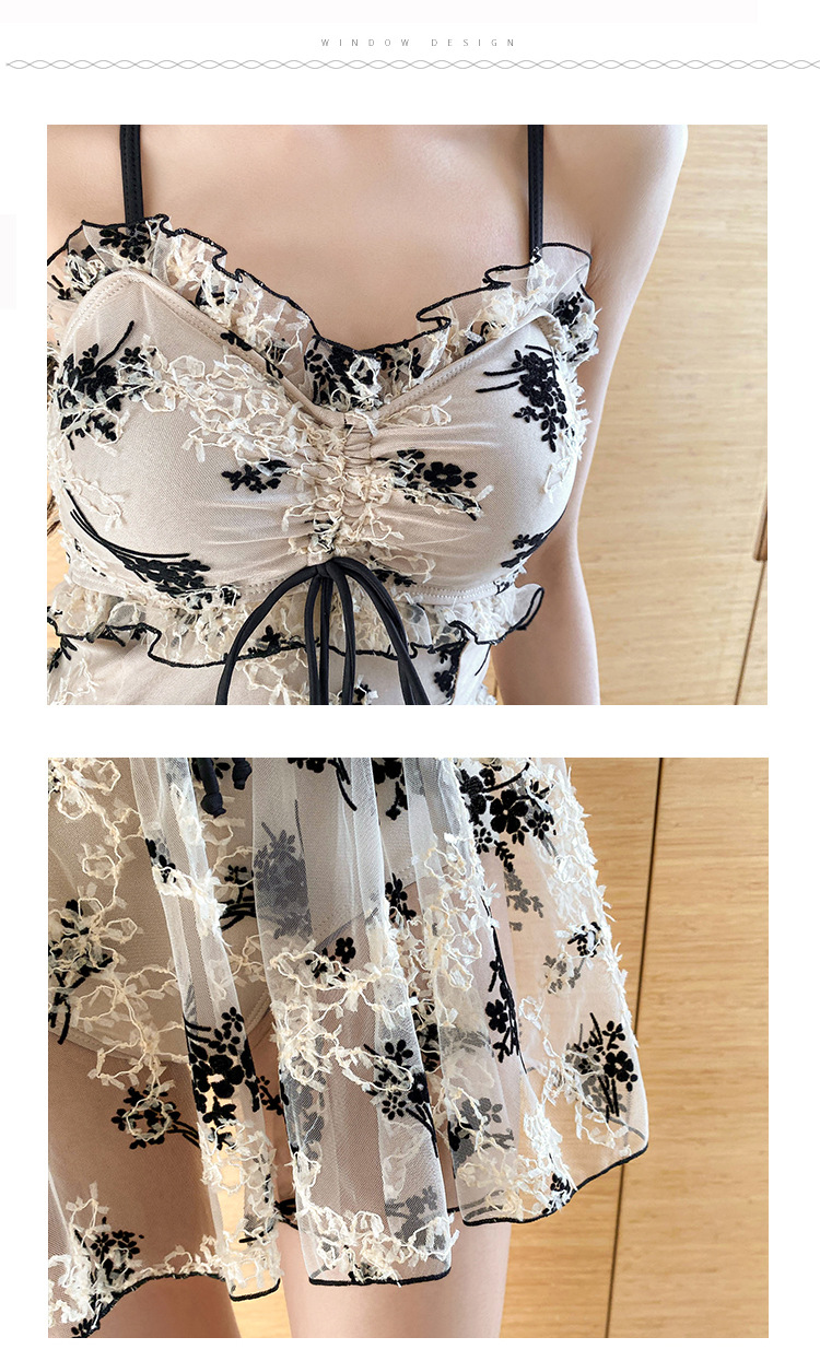 2023 여름 새로운 한국 스타일 우아한 온천 수영복 레이스 슬림핏 슬리밍 작은 가슴 모여 보수적 인 원피스 여성