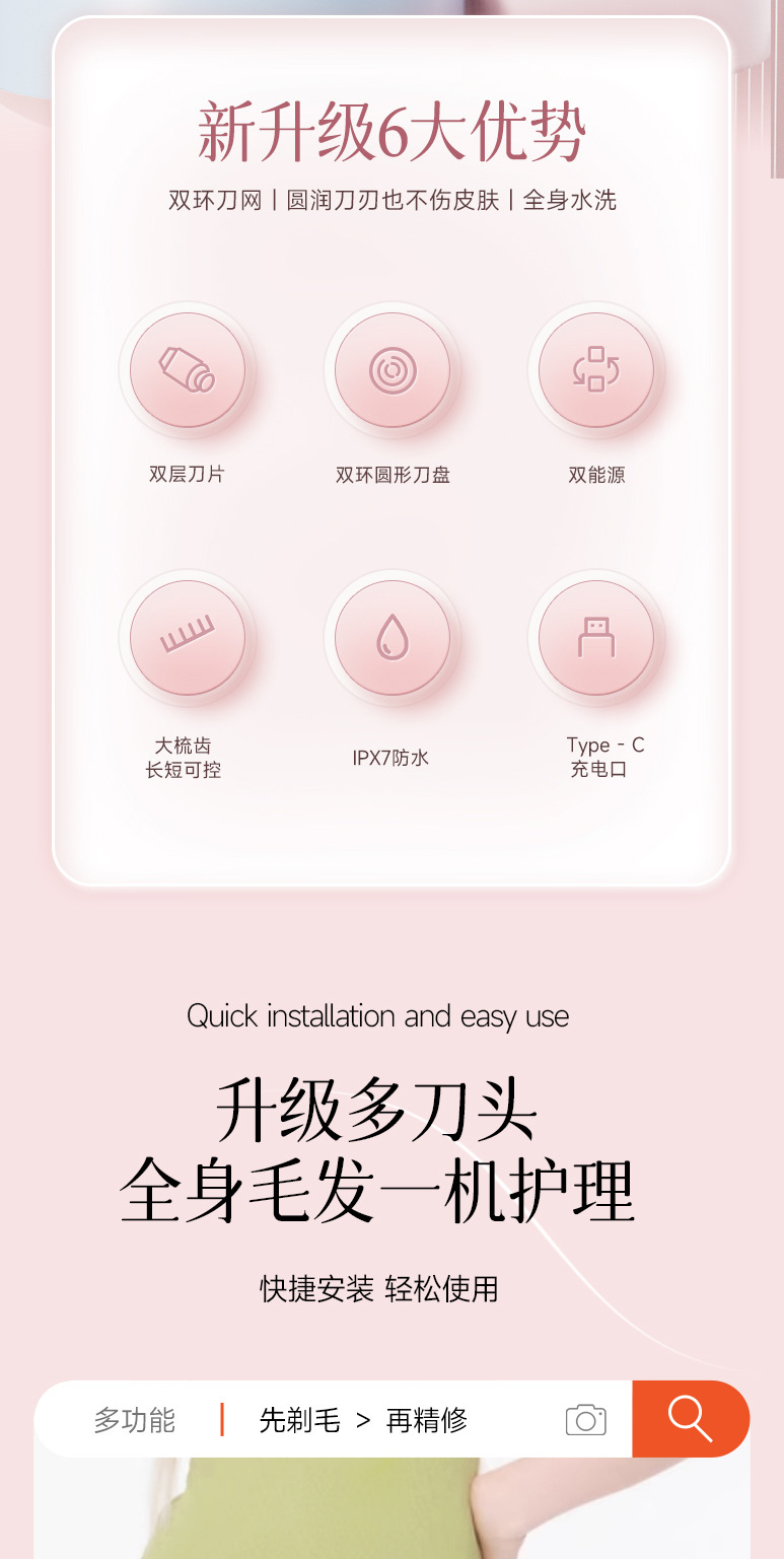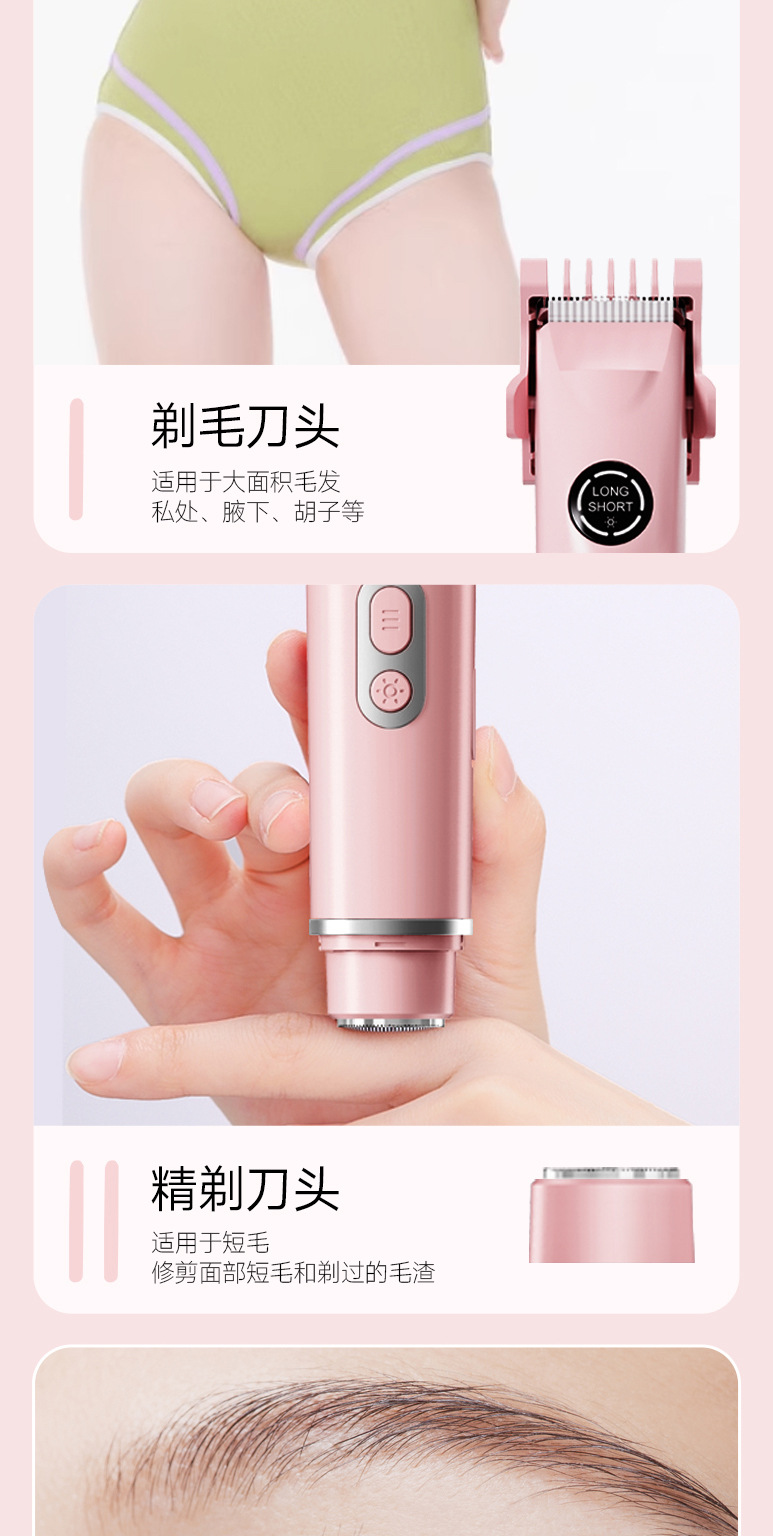 국경을 넘는 아마존 인기 전기 다중 헤드 여성용 은밀한 부위, 겨드랑이 및 다리 제모기, 디지털 디스플레이 휴대용 제모기