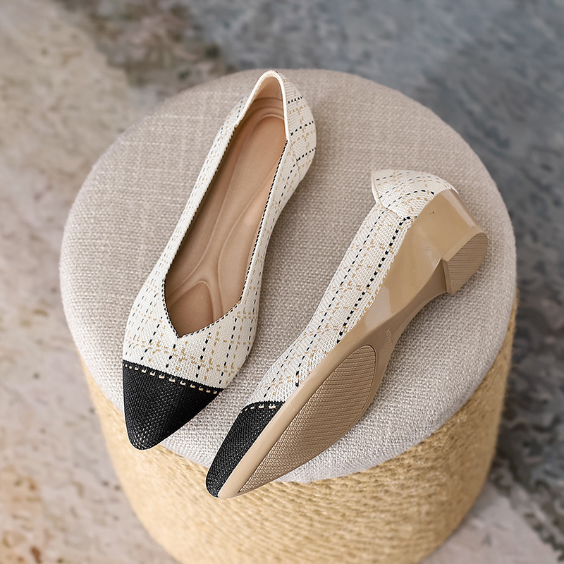 2023 대외 무역 높이 증가 공주 신발 짠 니트 웨지 신발 여성용 뾰족한 얕은 입 통기성 비행 직조 여성 신발 색상 일치스토어 가기