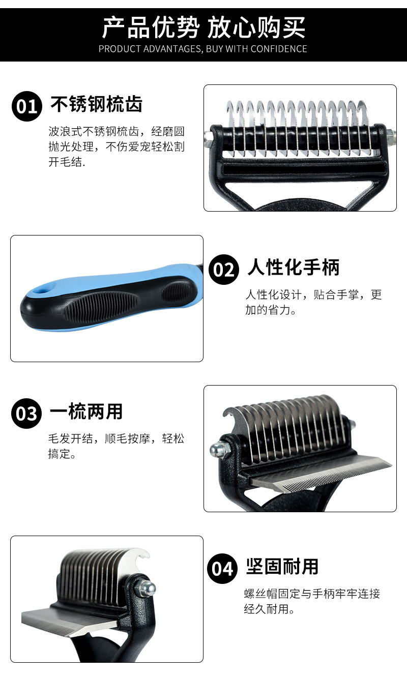 공장 도매 신규 개 빗 애완 동물 빗 개 2 개 뜨는 털을 제거하는 오픈 매듭 청소 미용 애완 동물 용품스토어 가기