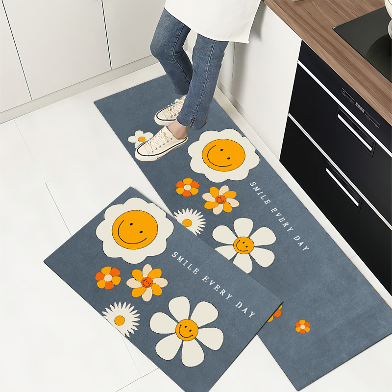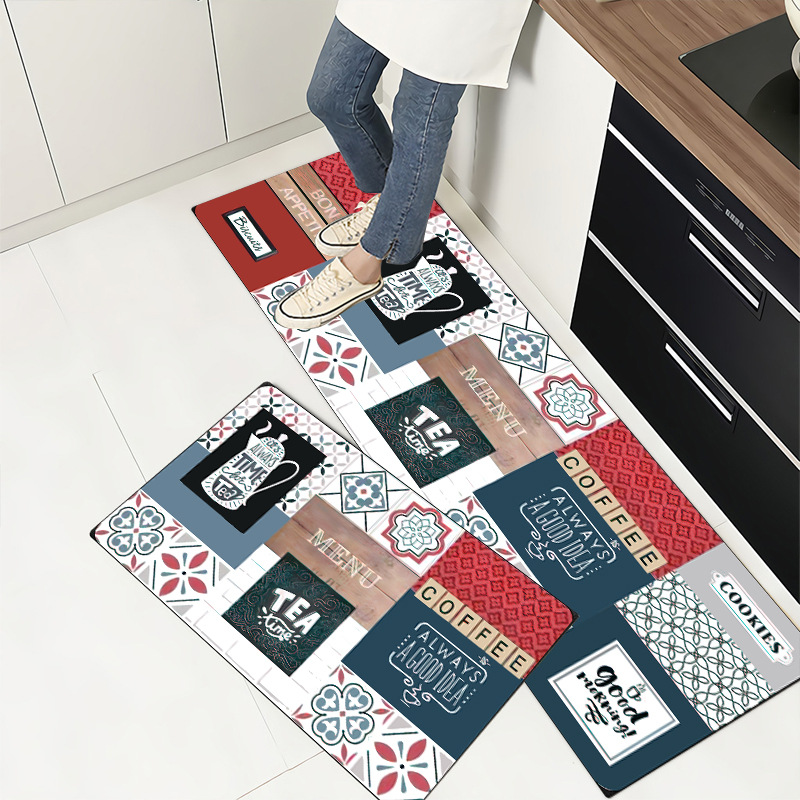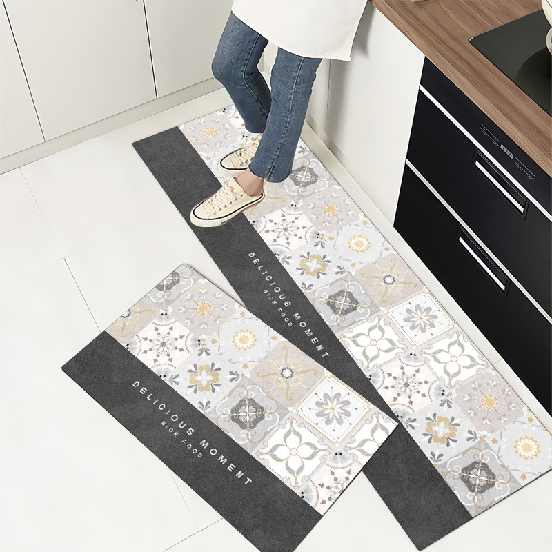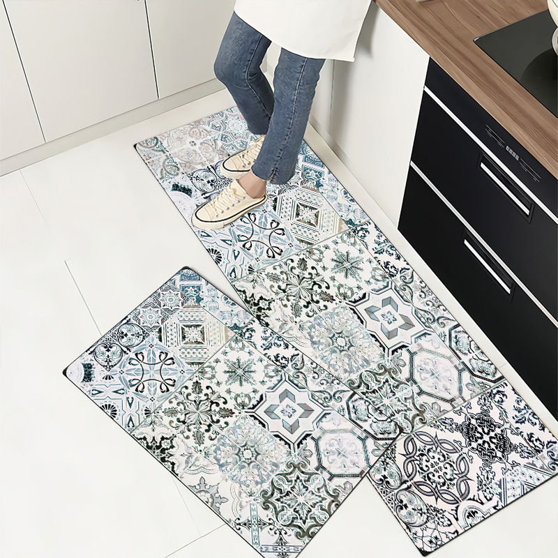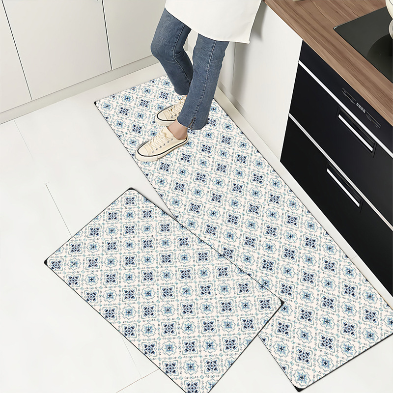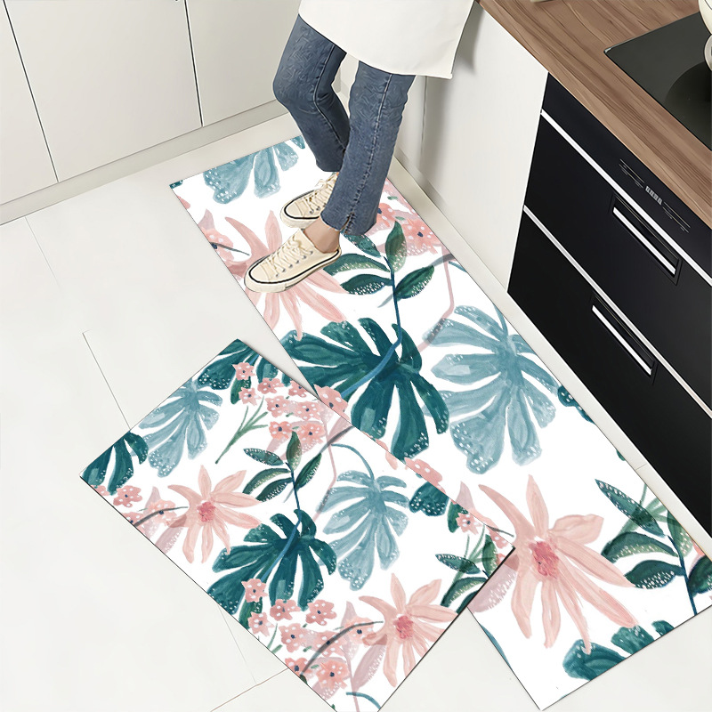 북유럽 pvc 가죽 주방 바닥 매트 미끄럼 방지 매트 내유성 직사각형 스크러빙 더러운 방지 카펫 방수 매트스토어 가기