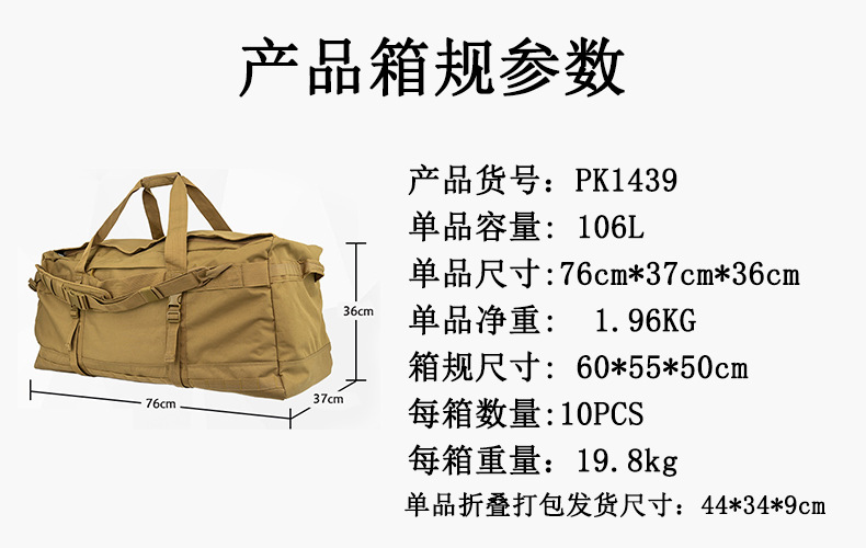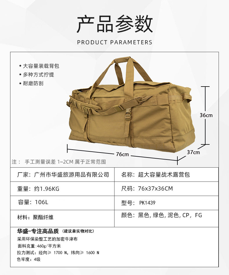 대용량 전술 여행 가방 106L 캠핑 가방 대형 전면 수납 가방 야외 수납 가방 휴대용 백팩 재고 있음스토어 가기
