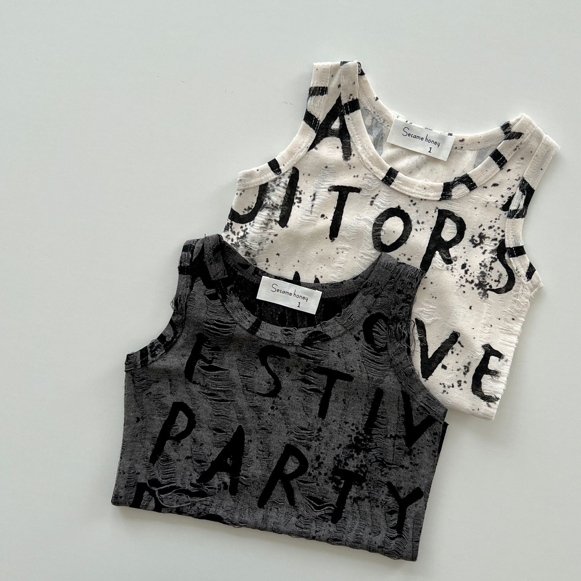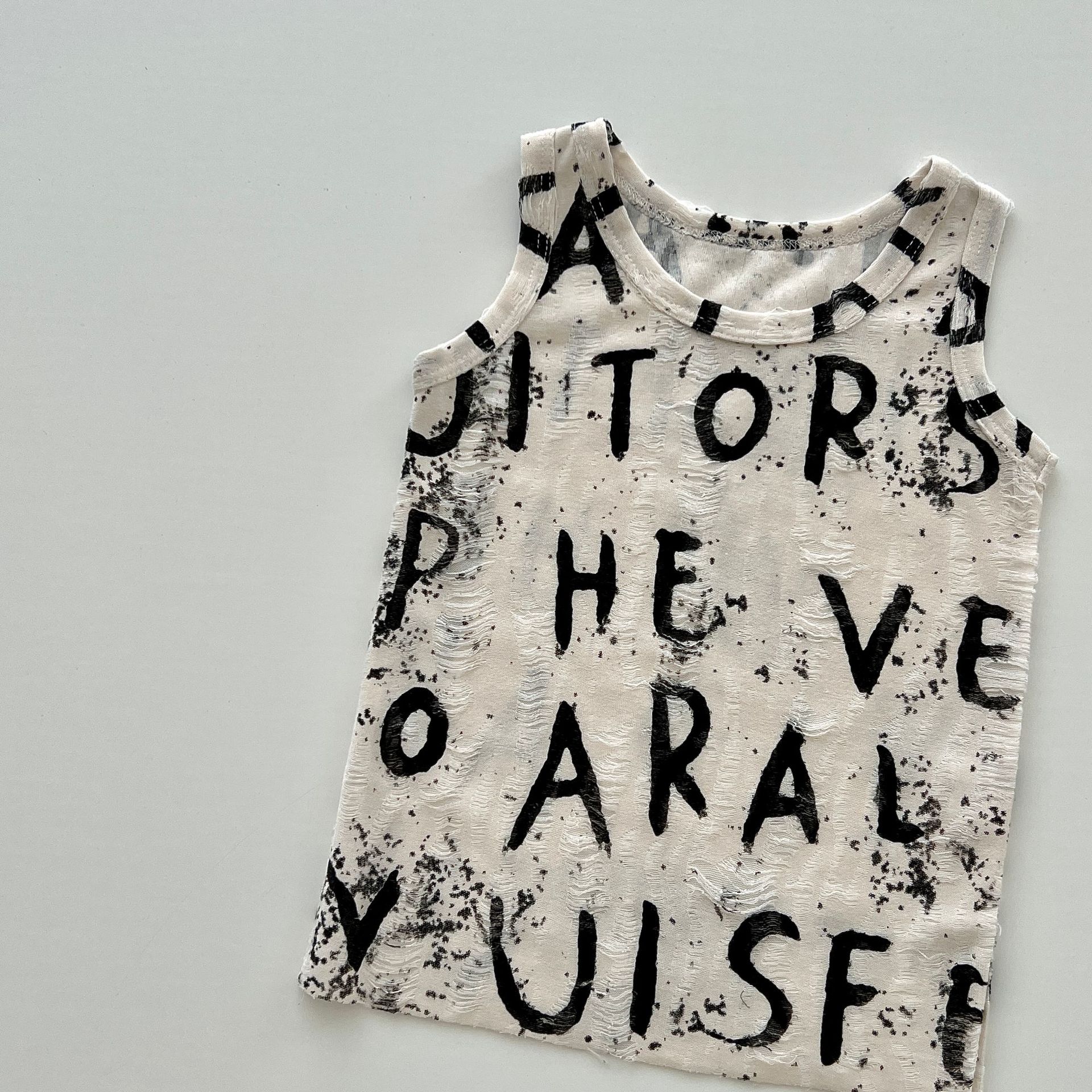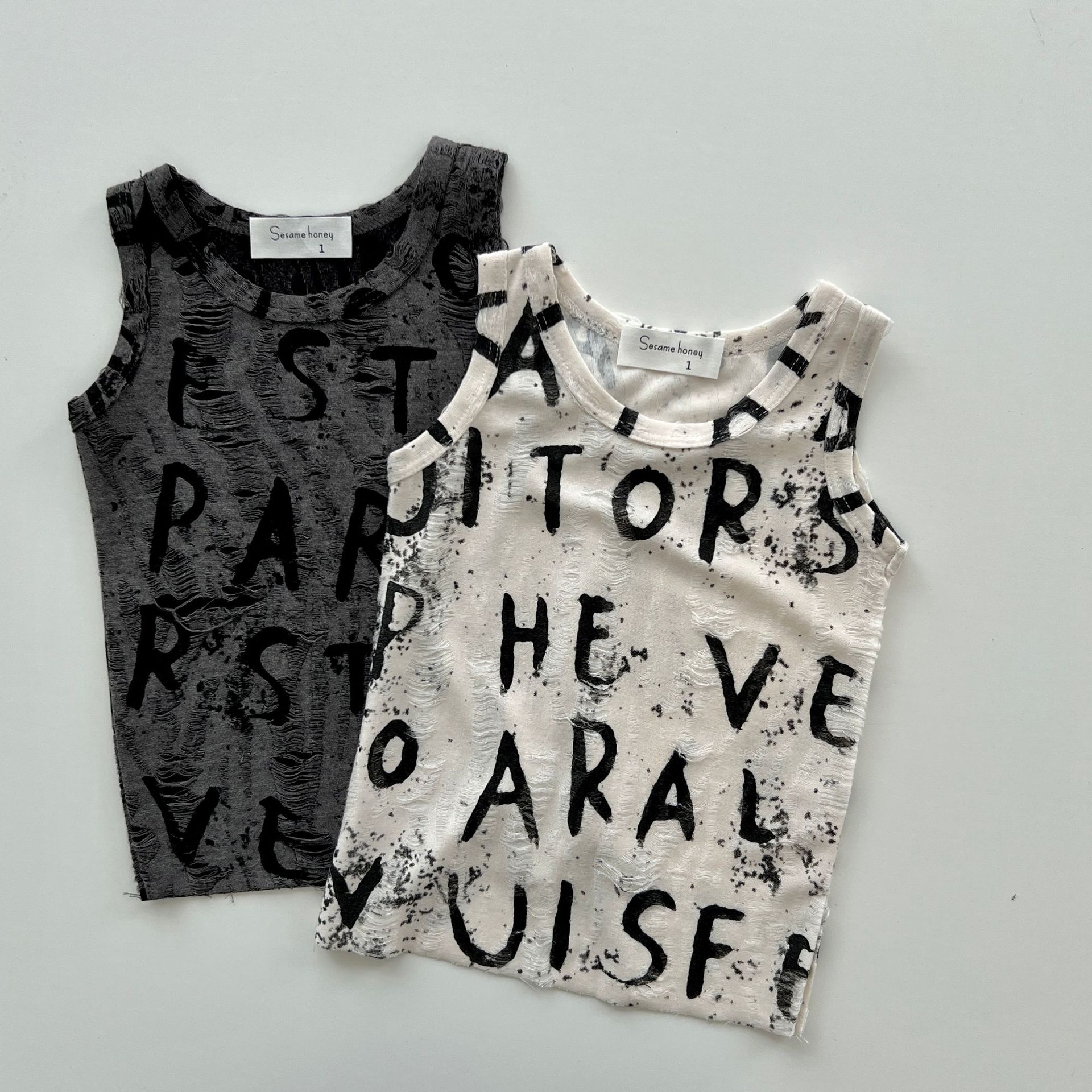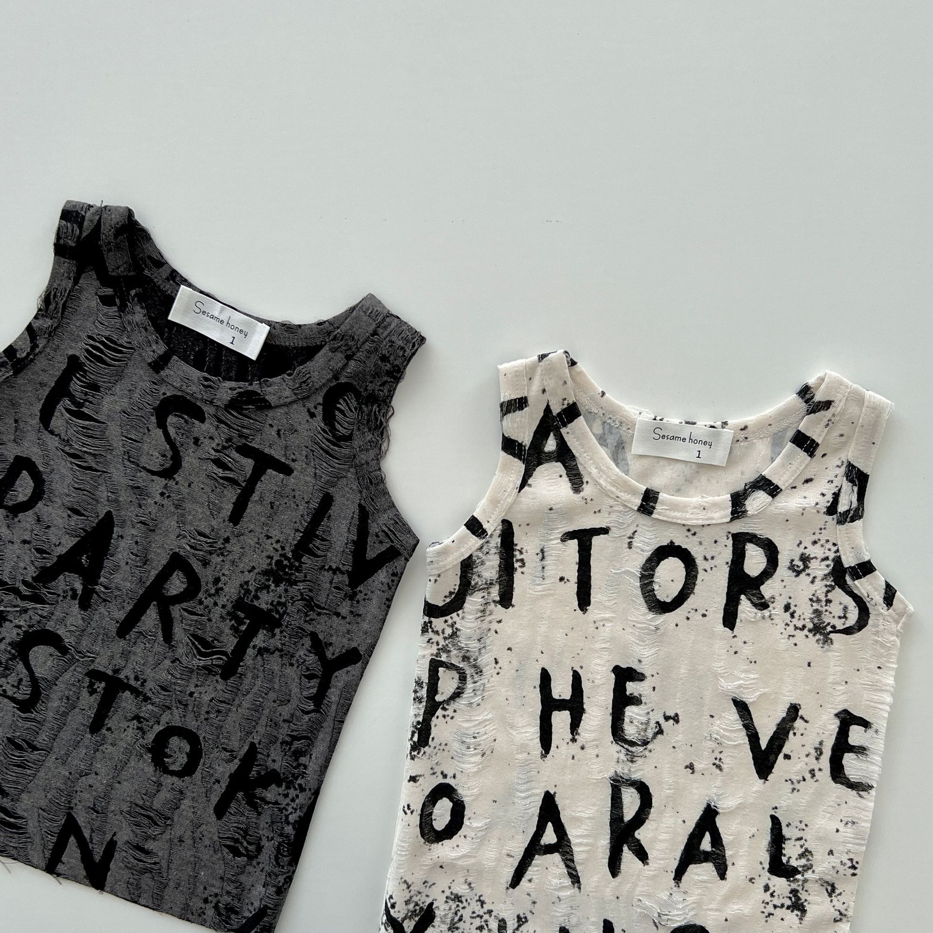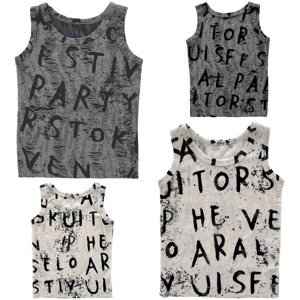 일본 트렌디 브랜드 아동복 여름 조끼 남아 여아 여름 레터링 데미지 민소매 상의