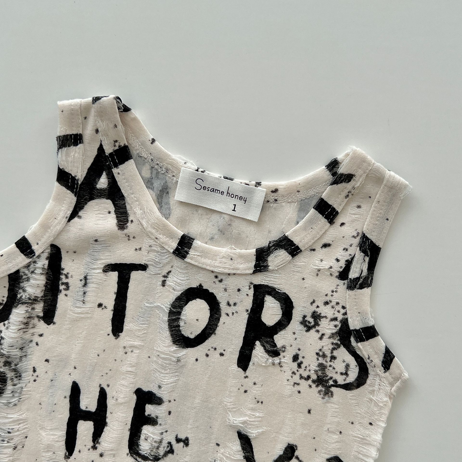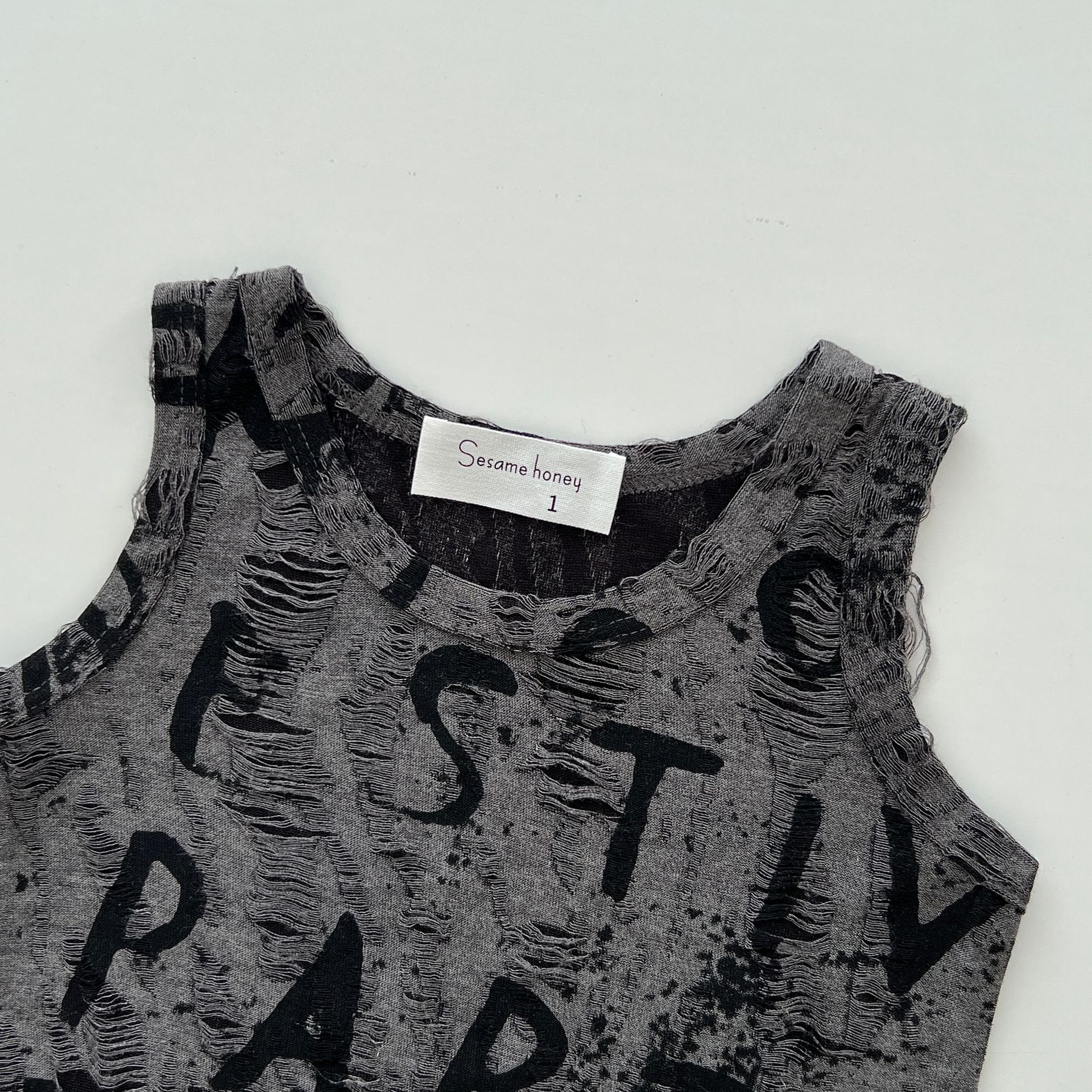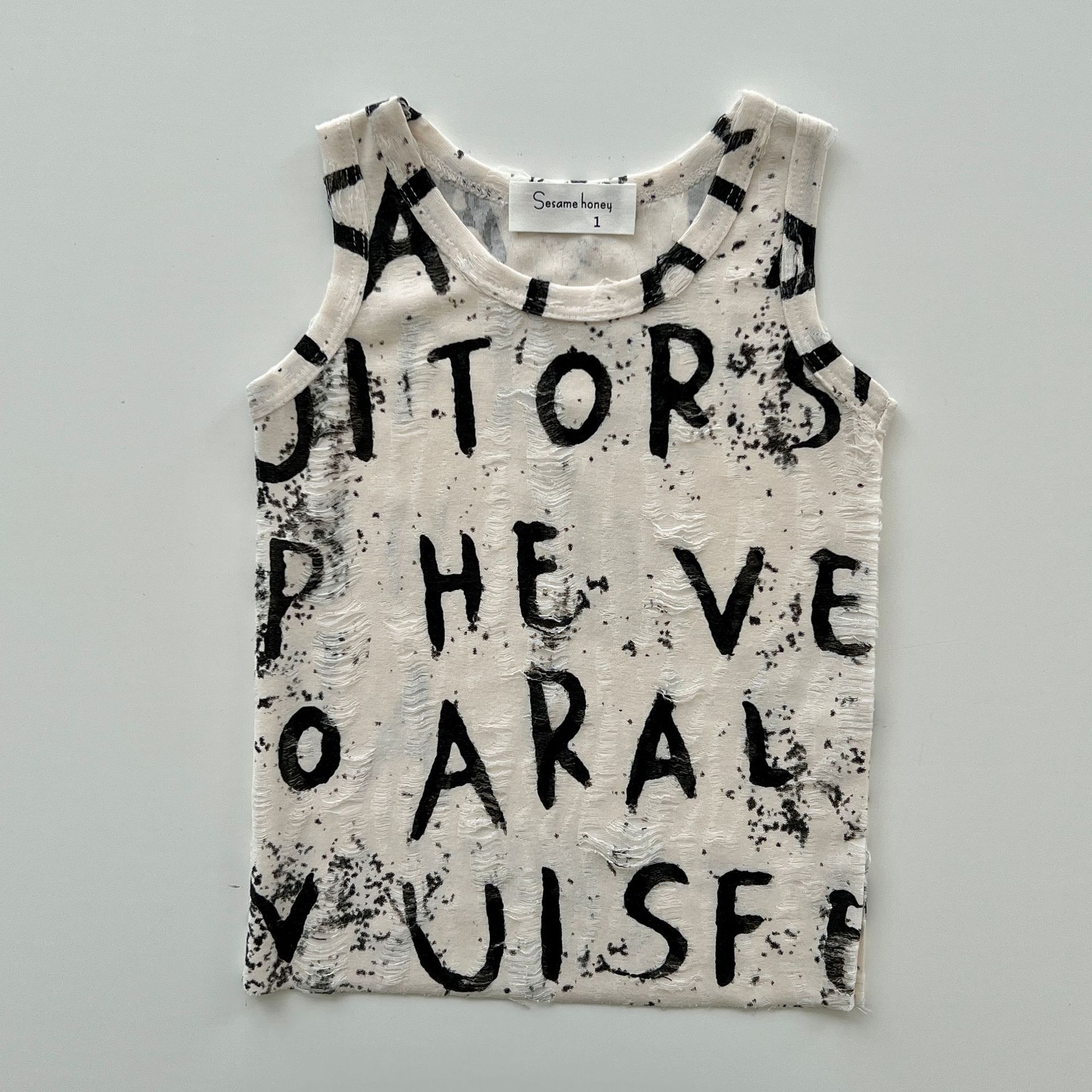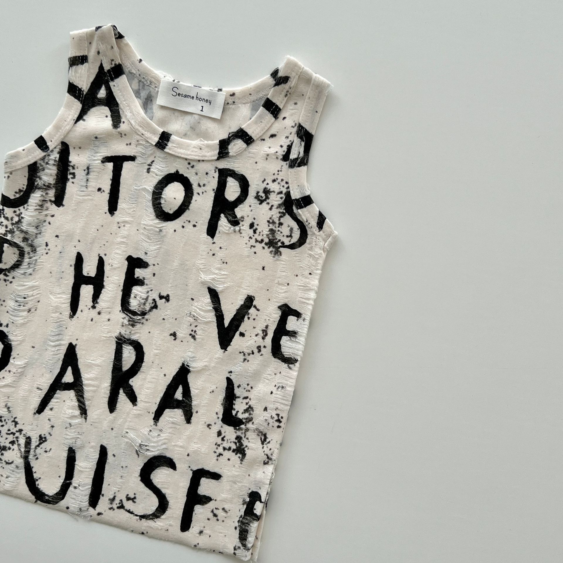 일본 트렌디 브랜드 아동복 여름 조끼 남아 여아 여름 레터링 데미지 민소매 상의