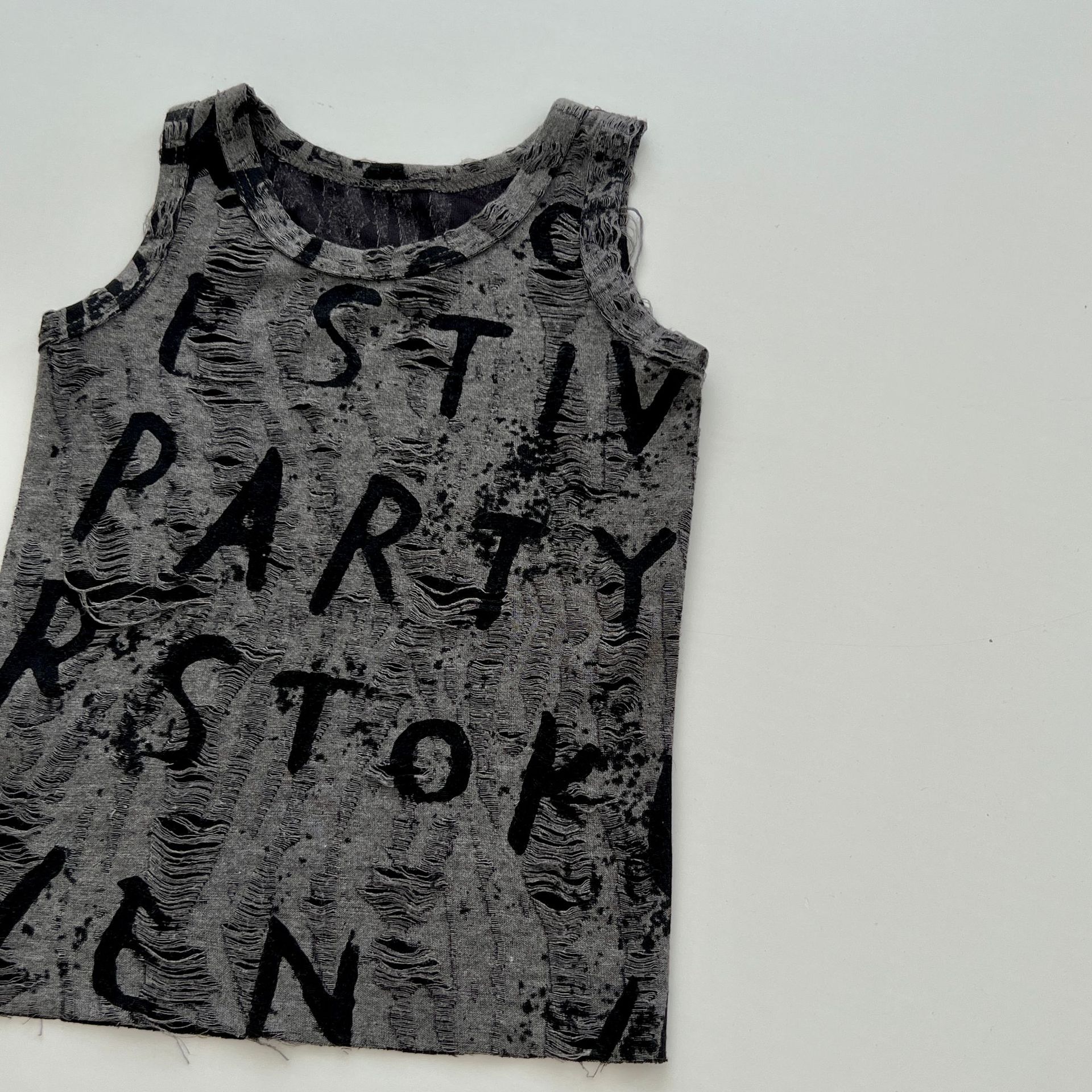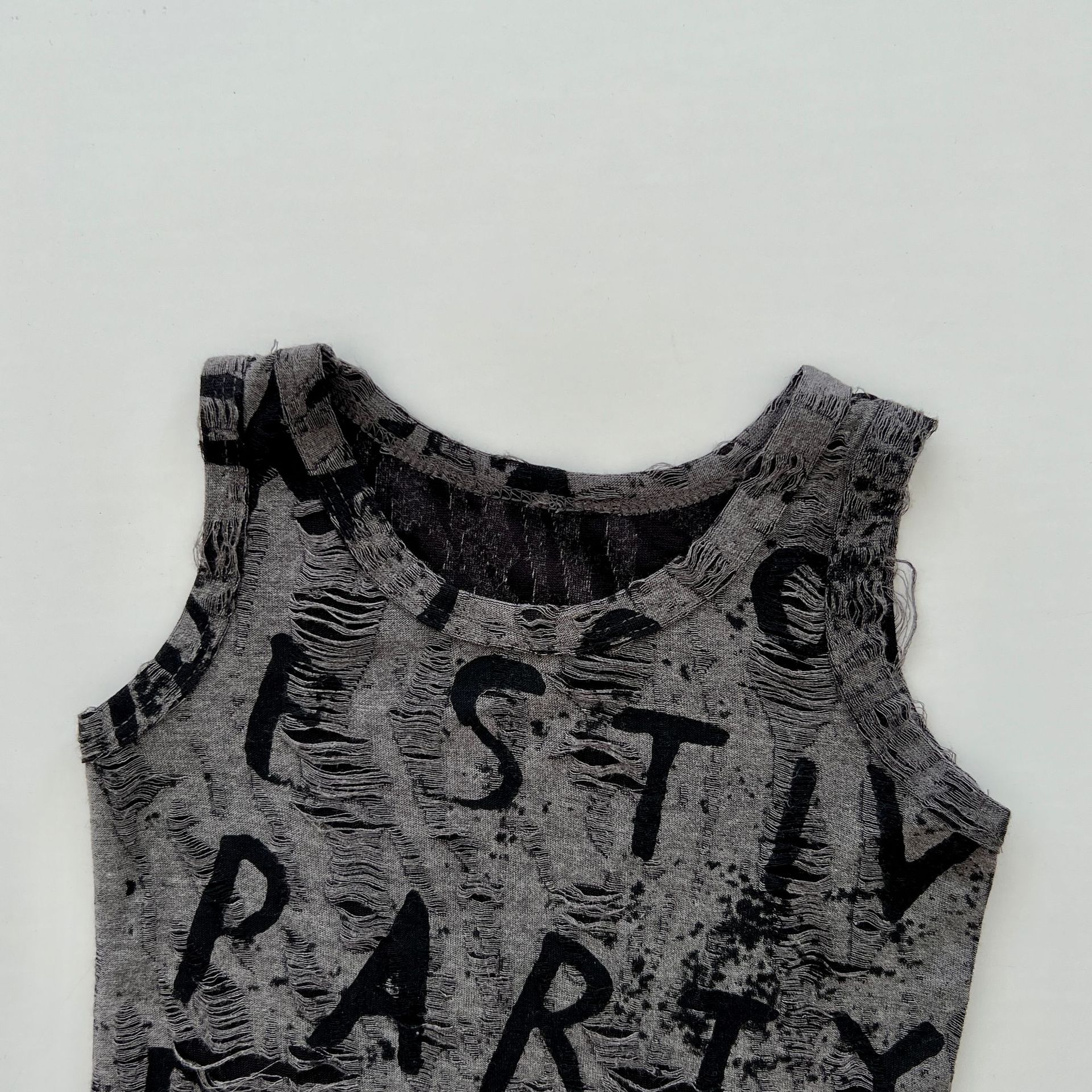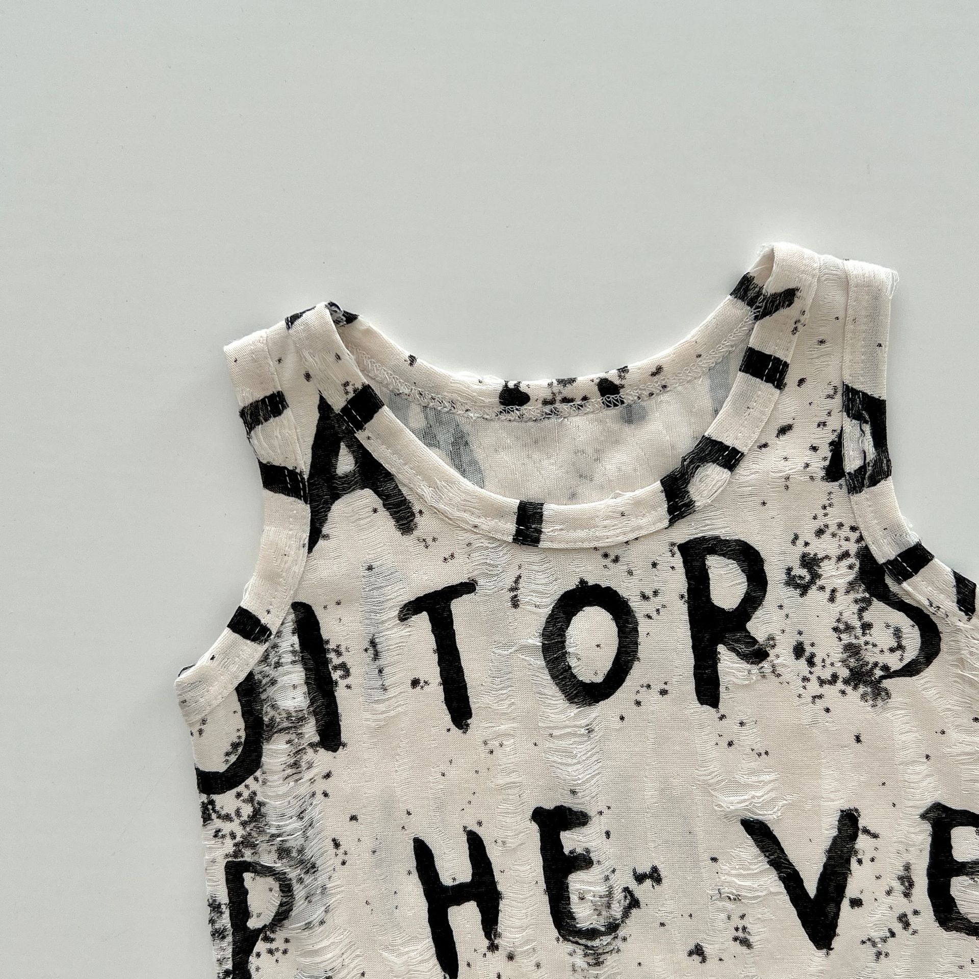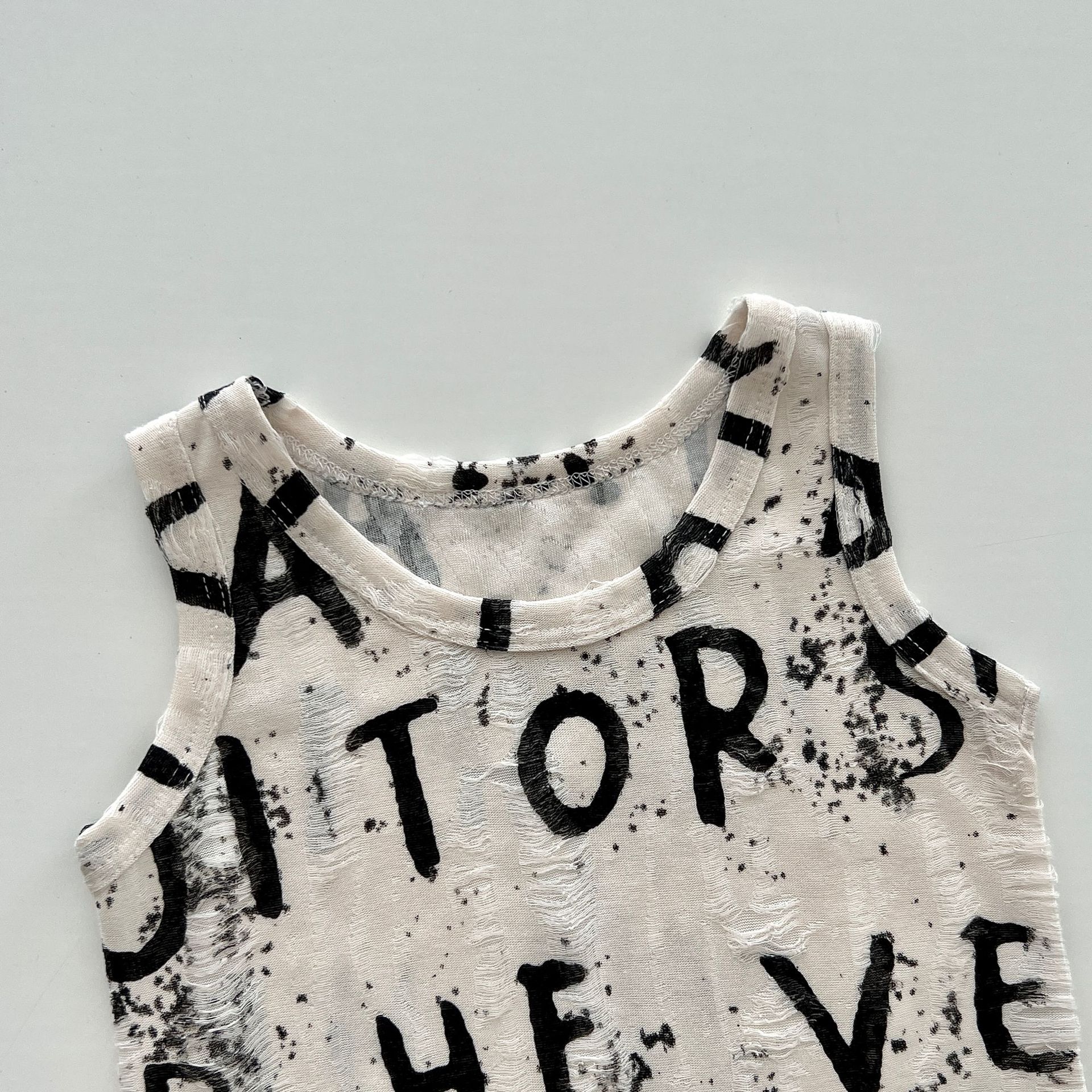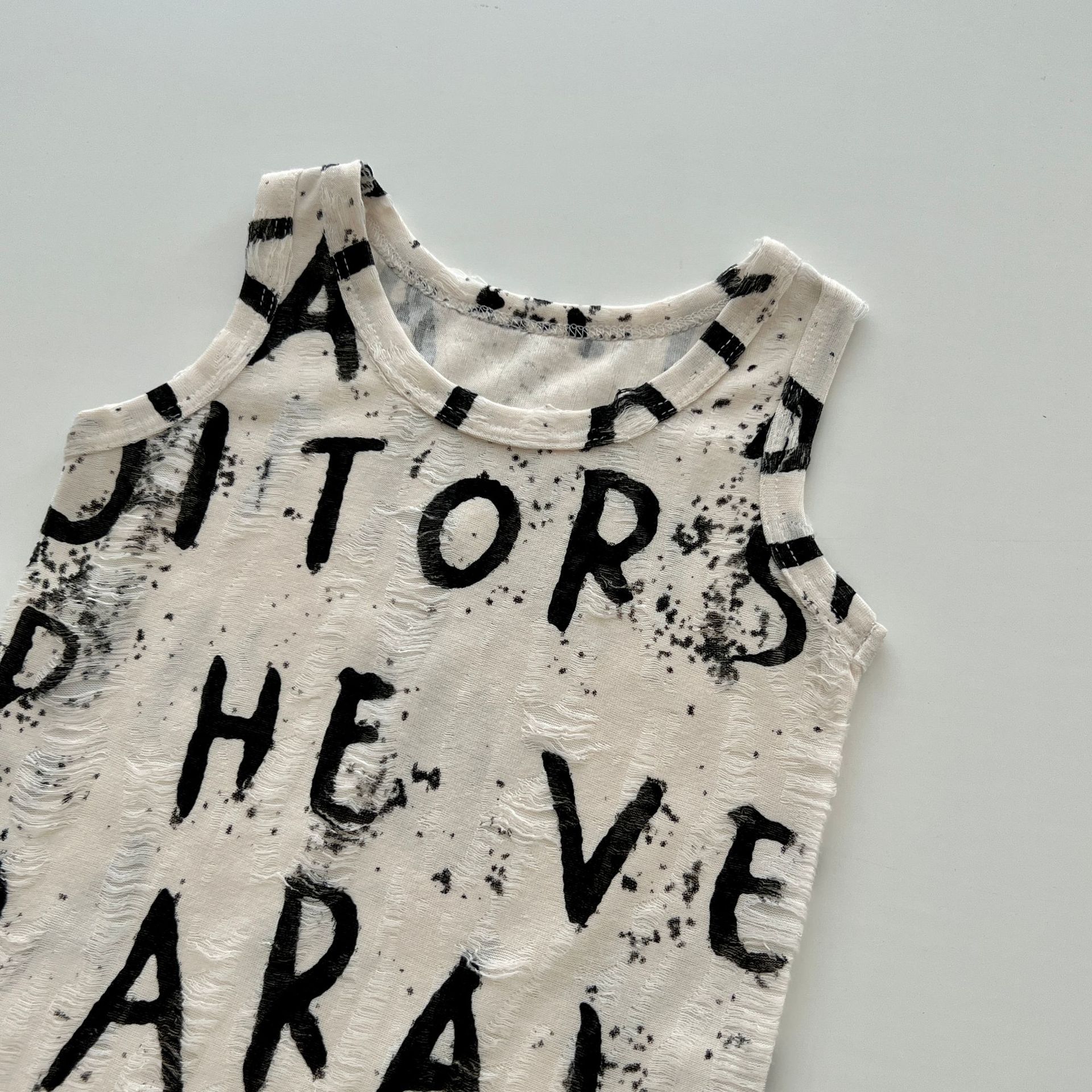 일본 트렌디 브랜드 아동복 여름 조끼 남아 여아 여름 레터링 데미지 민소매 상의
