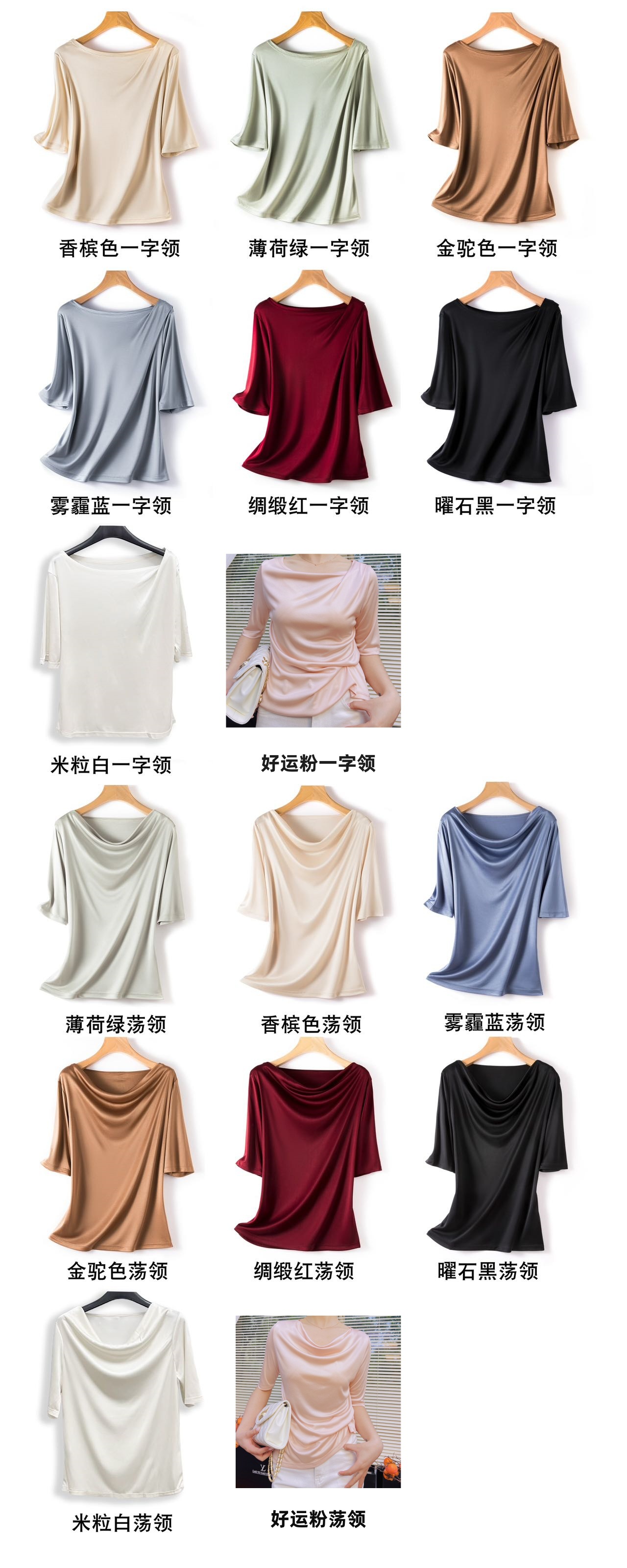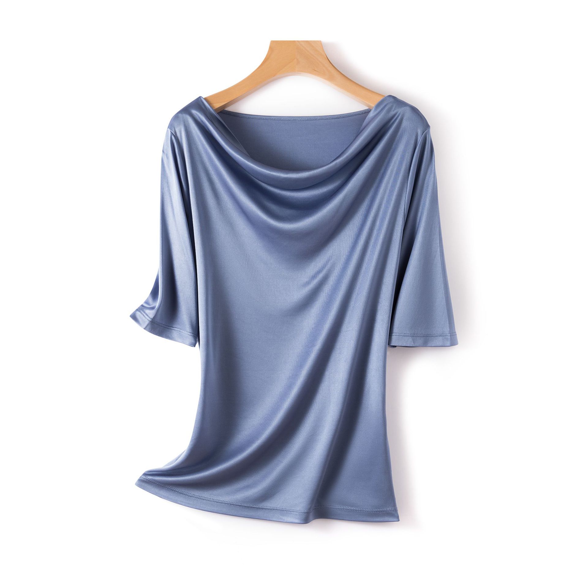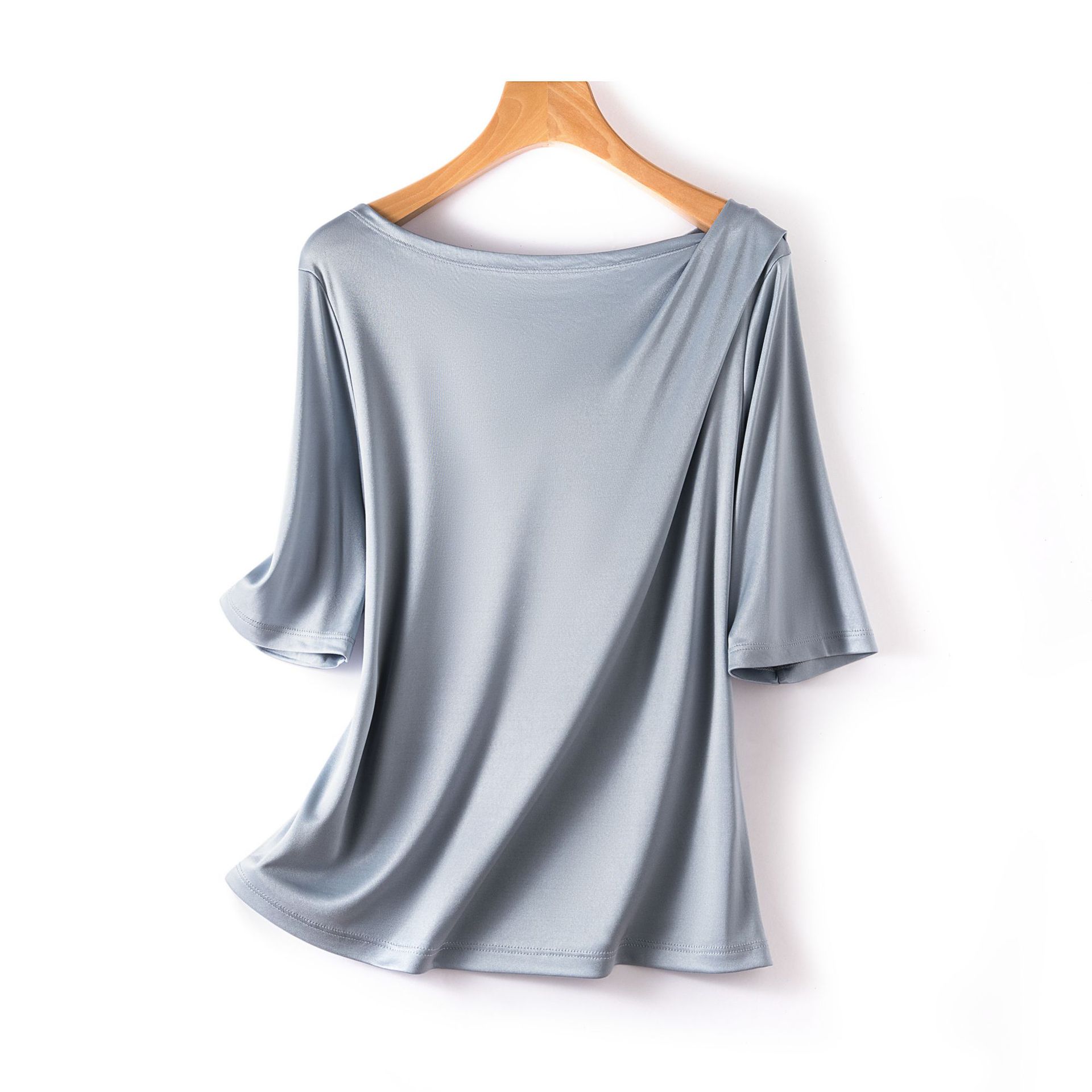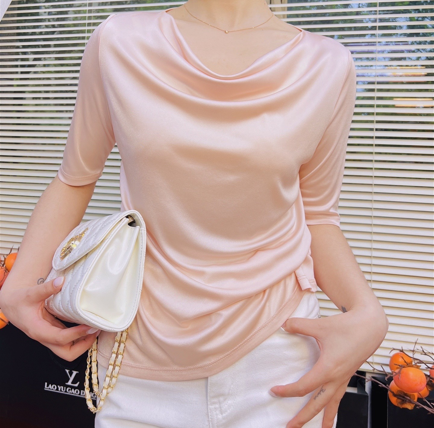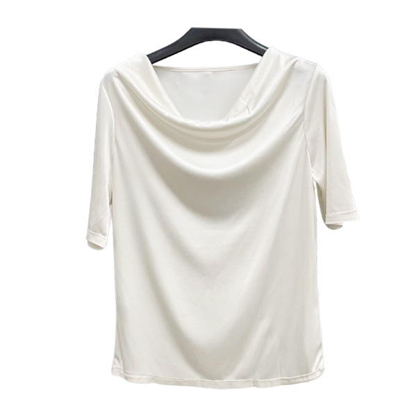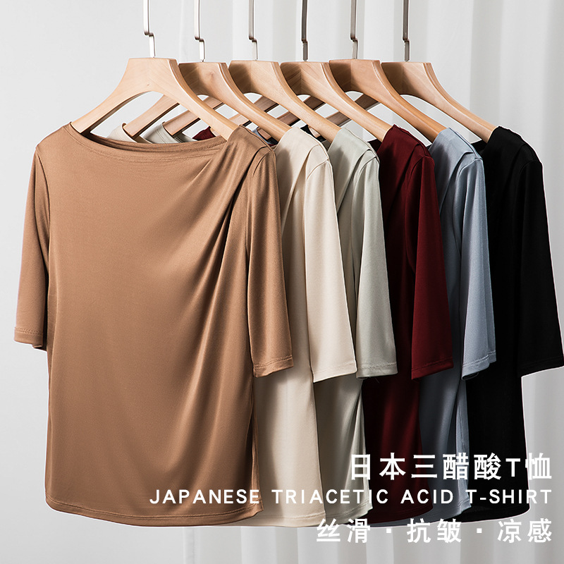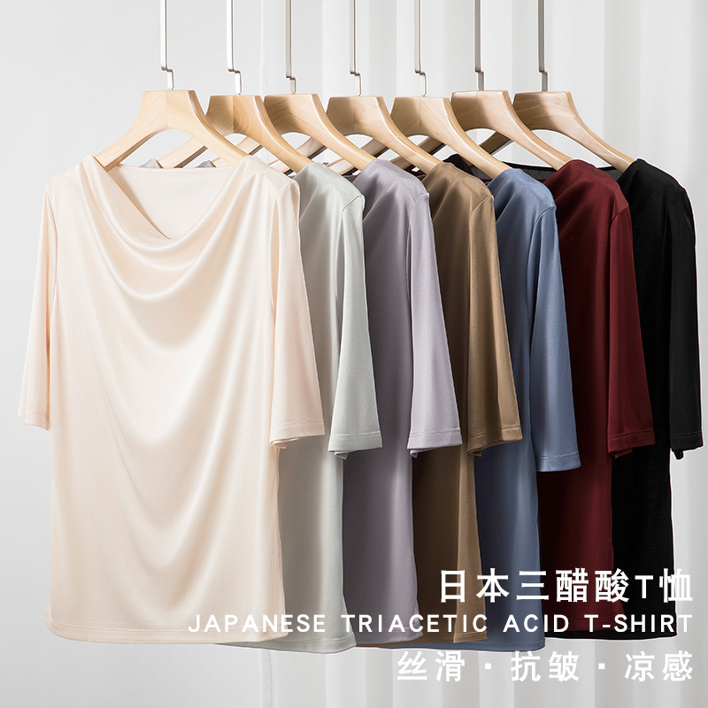 일본 산링 아세트산 반팔 여성용 솔리드 컬러 쿨 비 다림질 반팔 한 단어 스윙 칼라 여성용 반팔 중간 소매 티셔츠