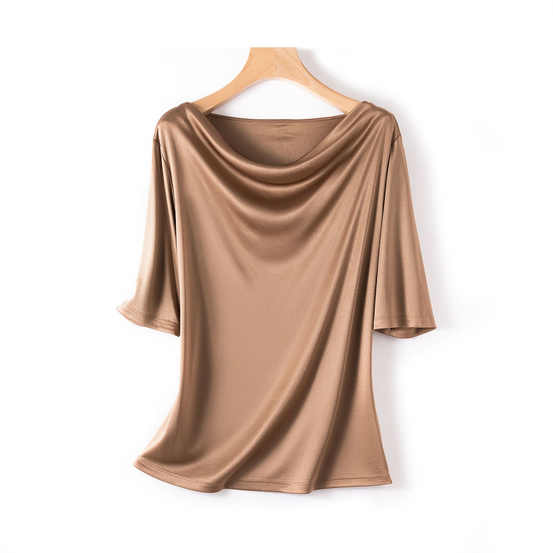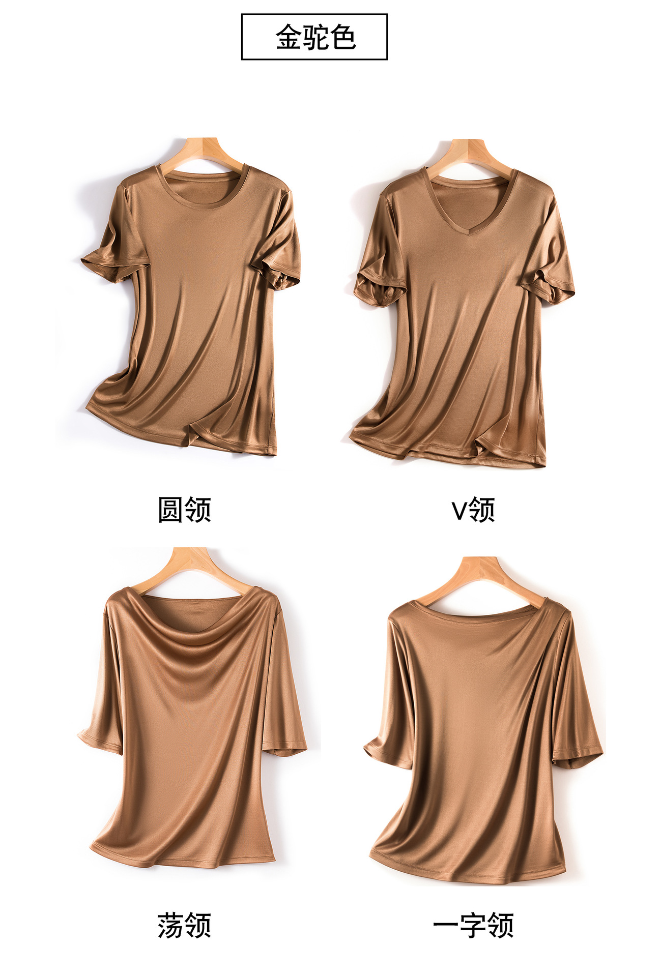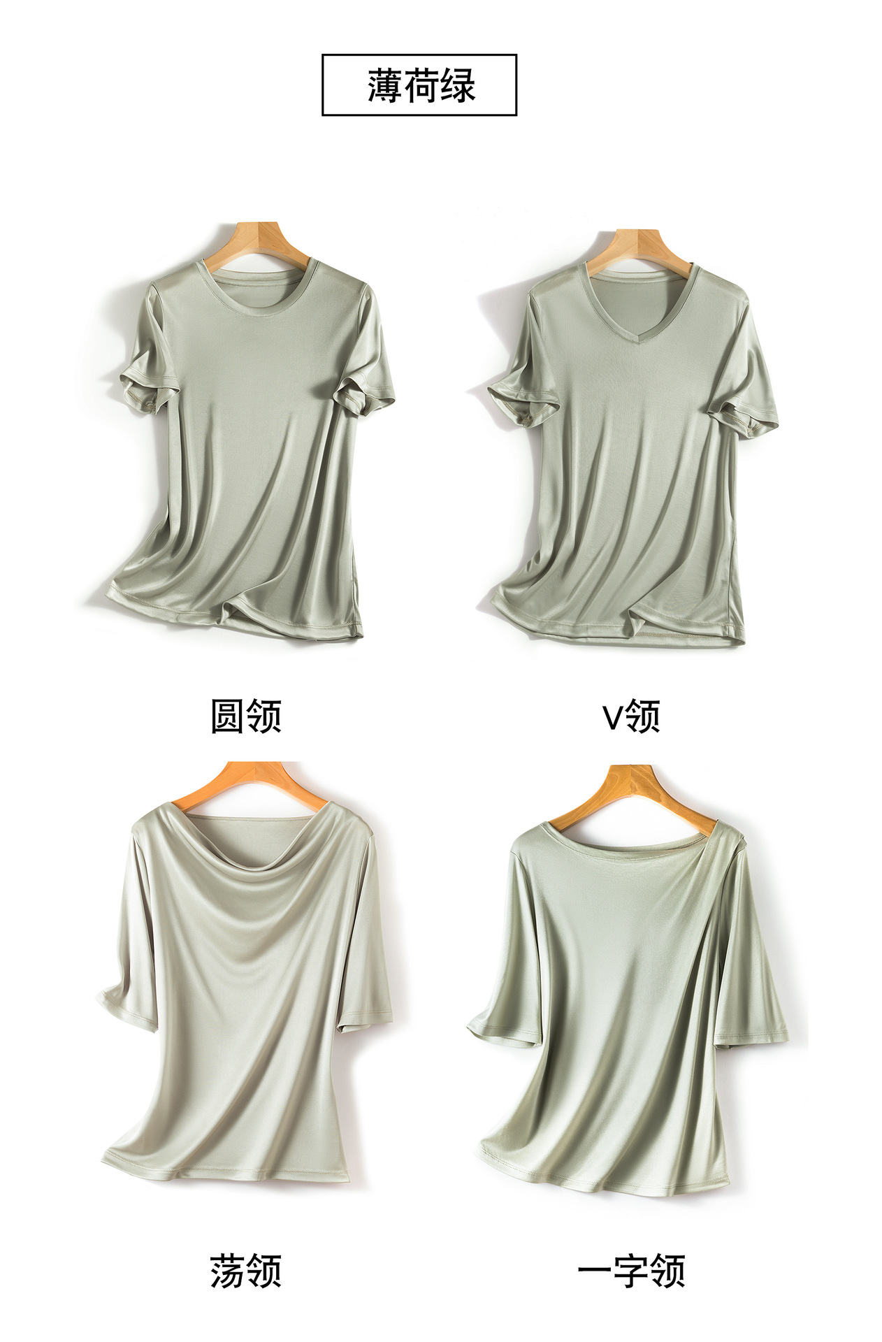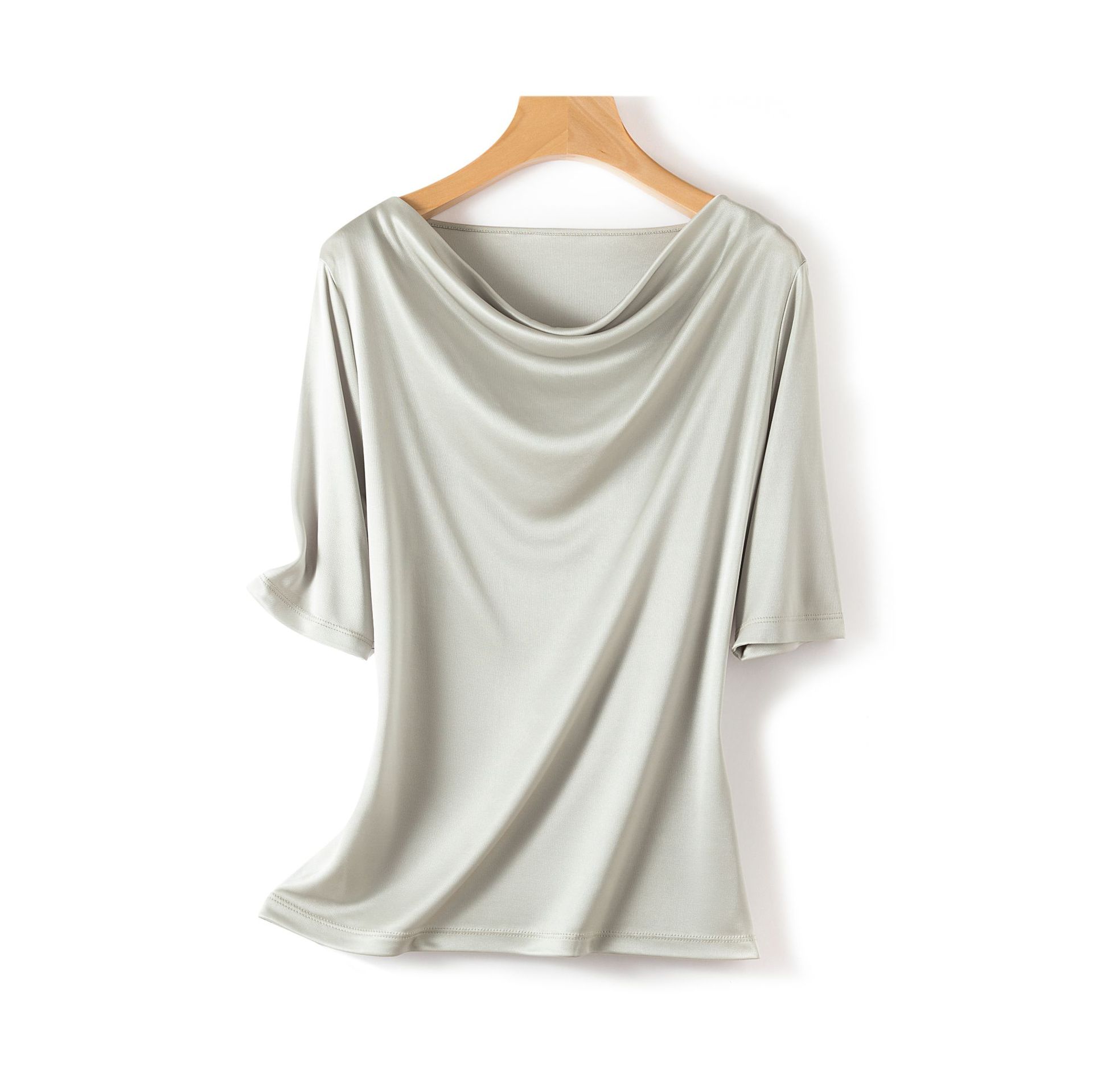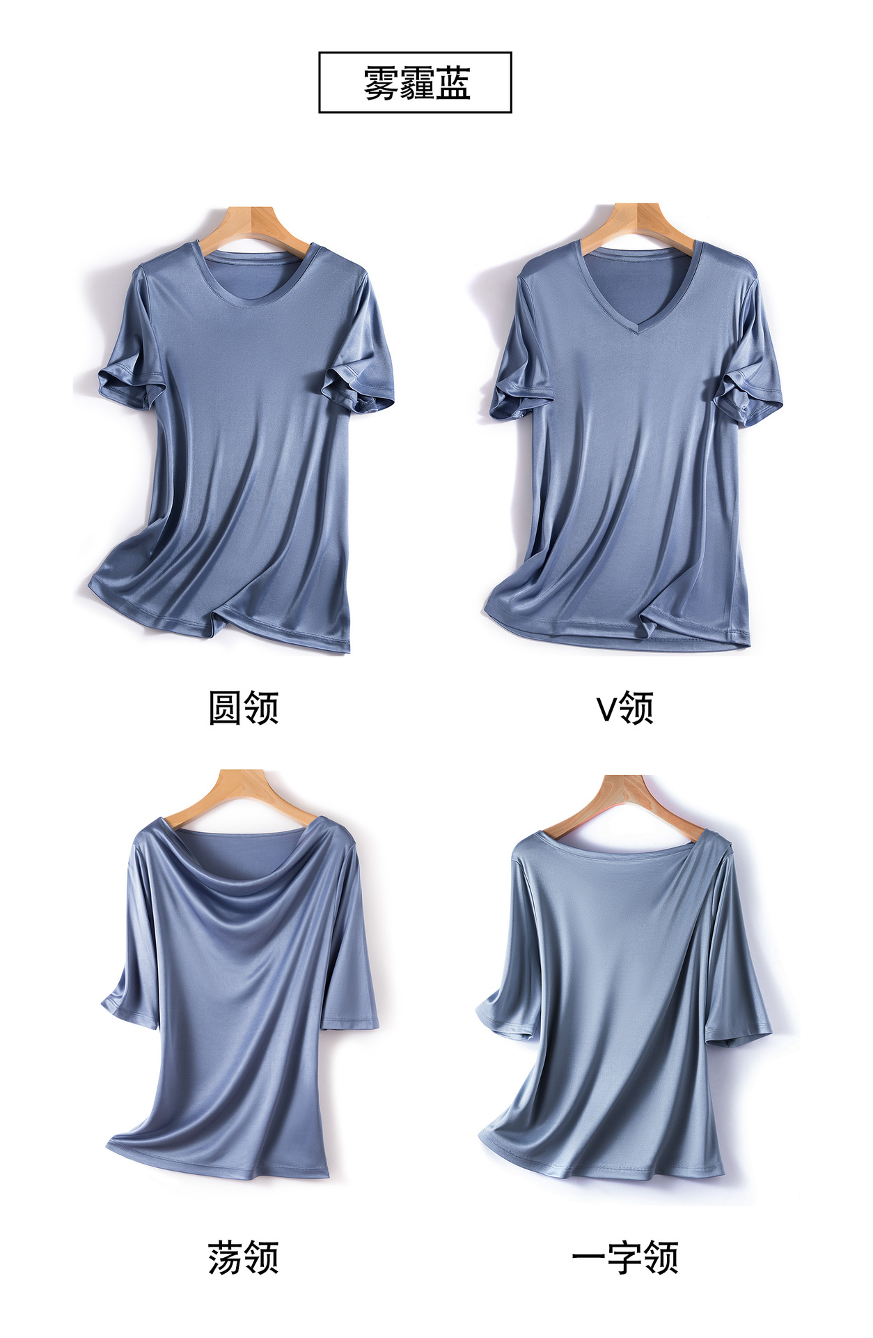 일본 산링 아세트산 반팔 여성용 솔리드 컬러 쿨 비 다림질 반팔 한 단어 스윙 칼라 여성용 반팔 중간 소매 티셔츠