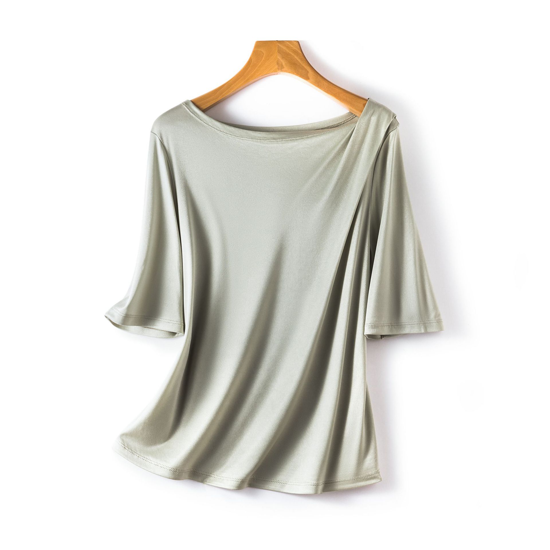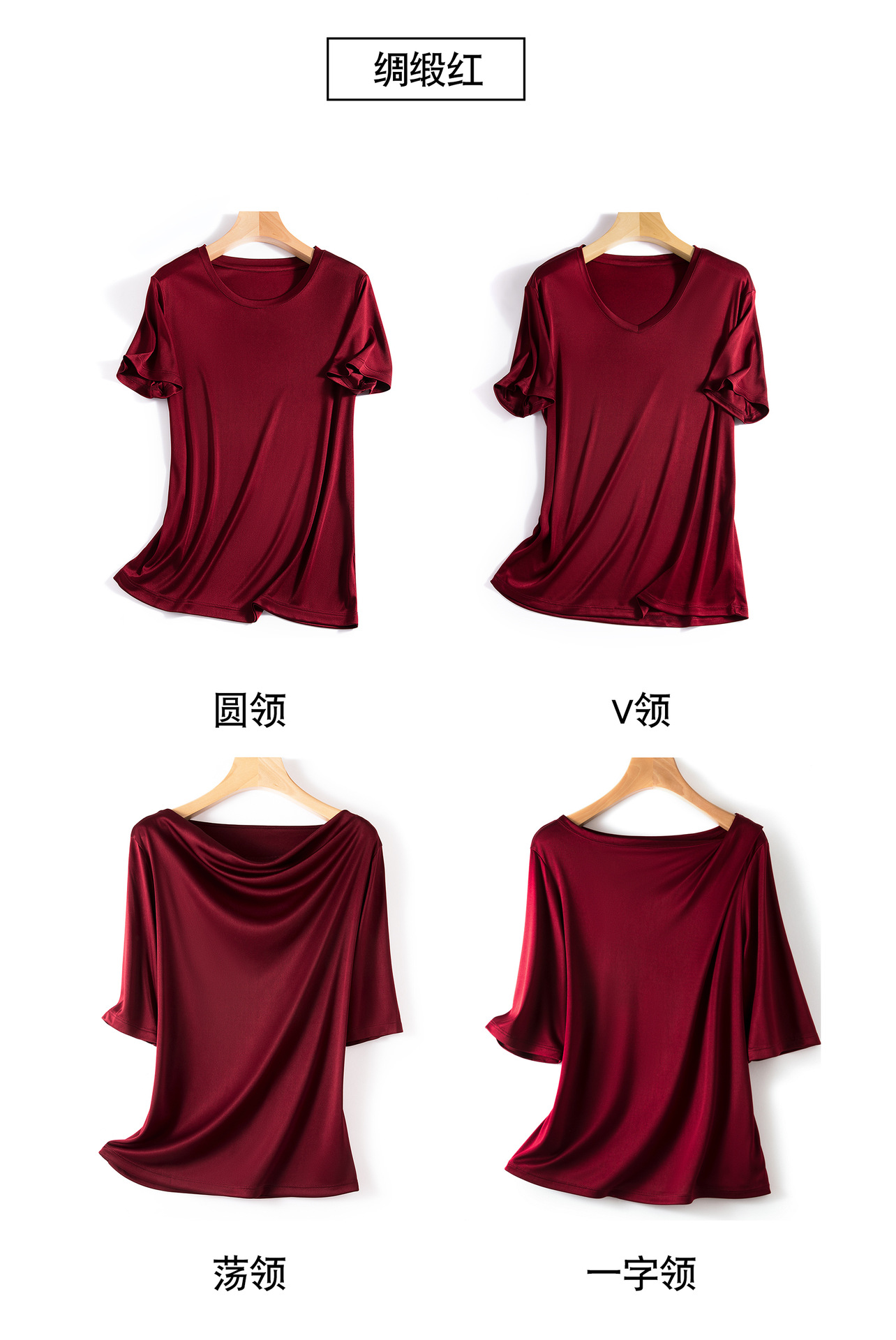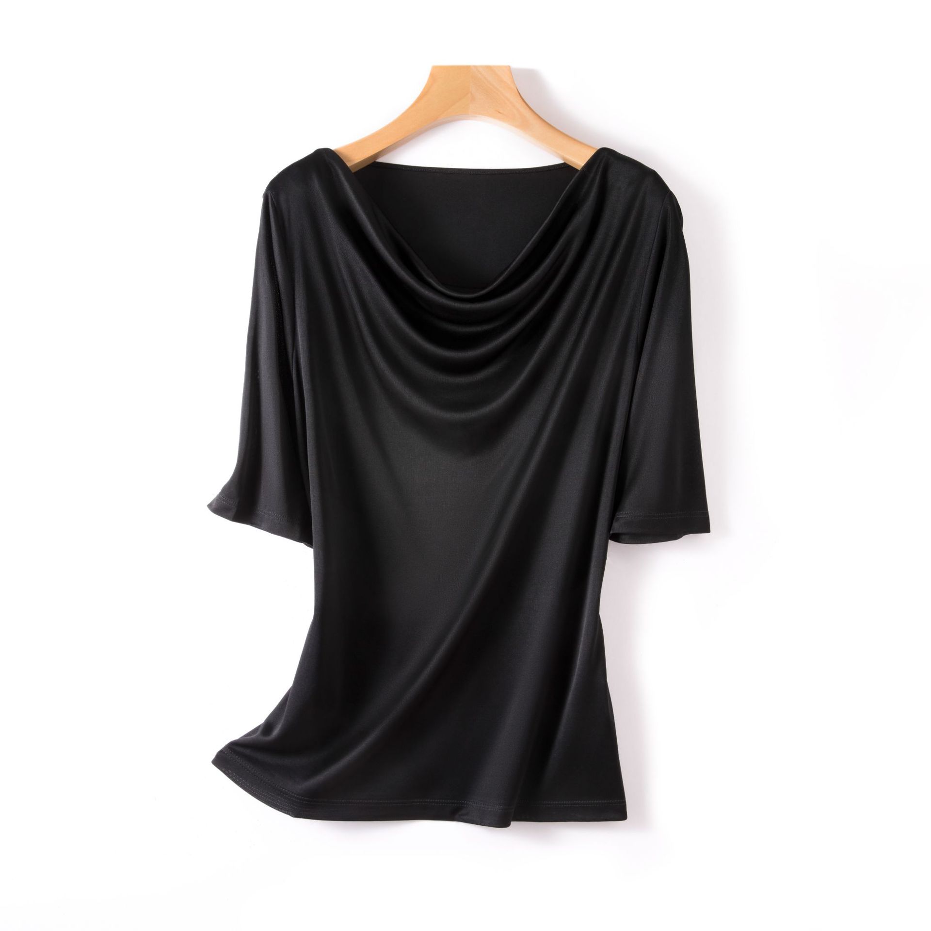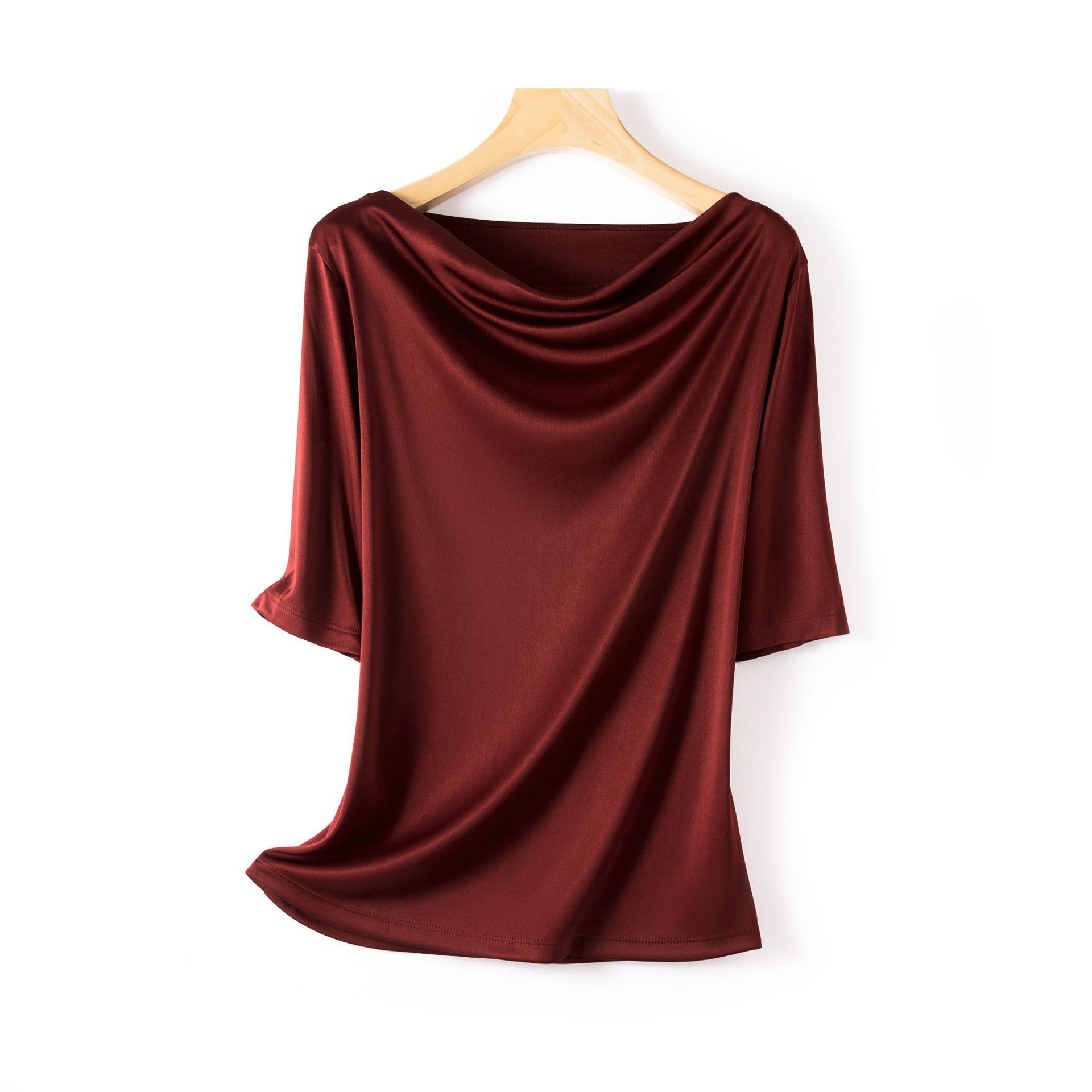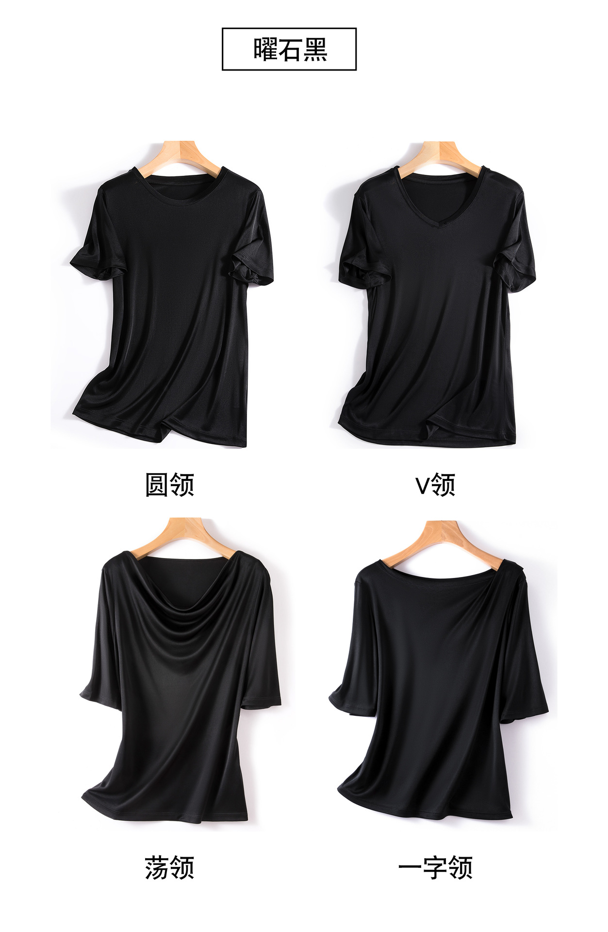 일본 산링 아세트산 반팔 여성용 솔리드 컬러 쿨 비 다림질 반팔 한 단어 스윙 칼라 여성용 반팔 중간 소매 티셔츠