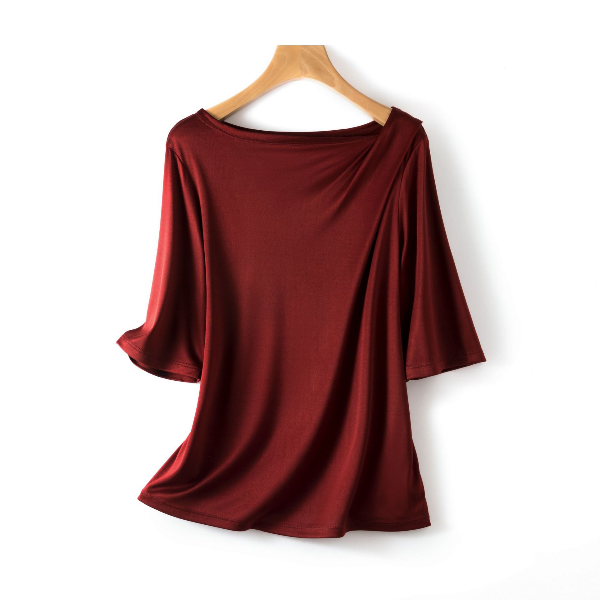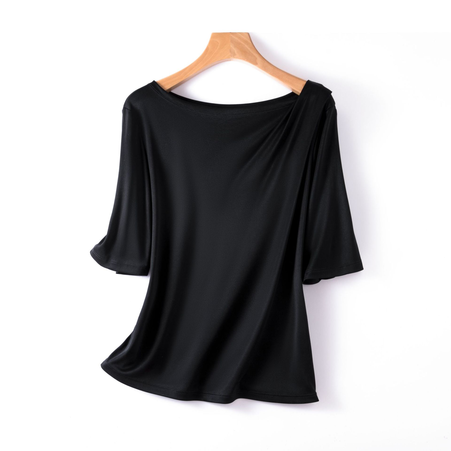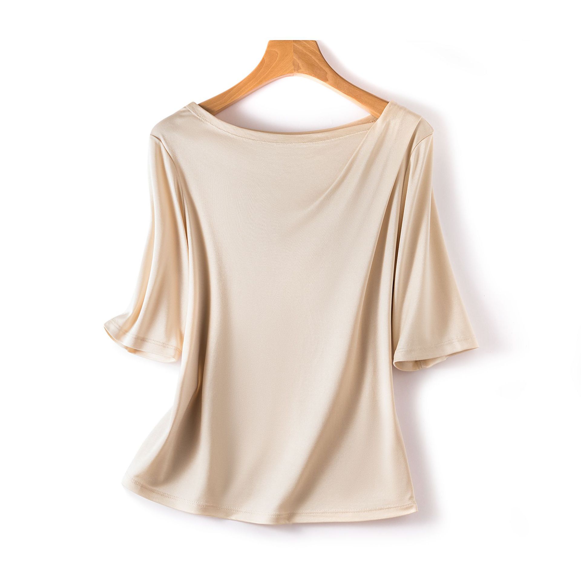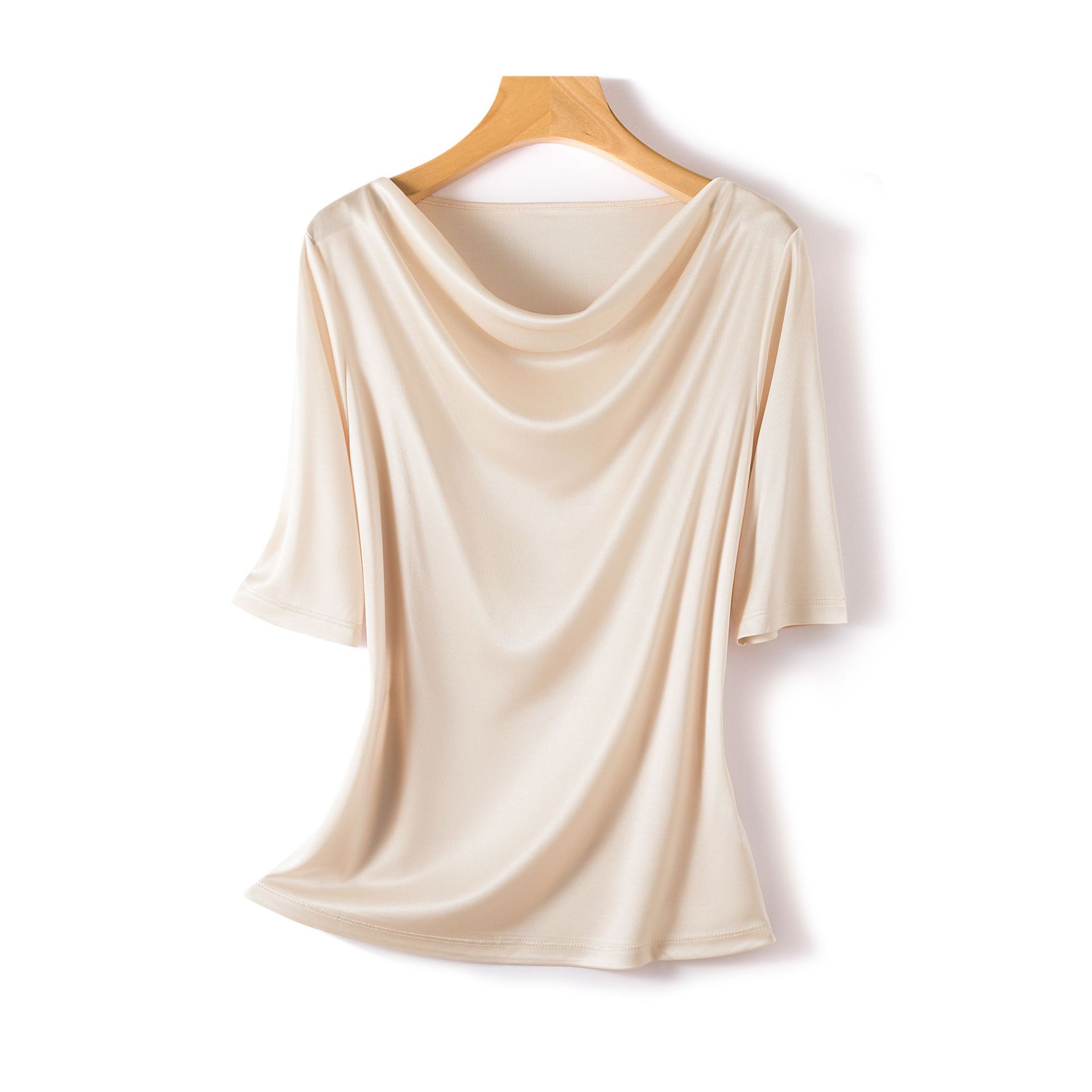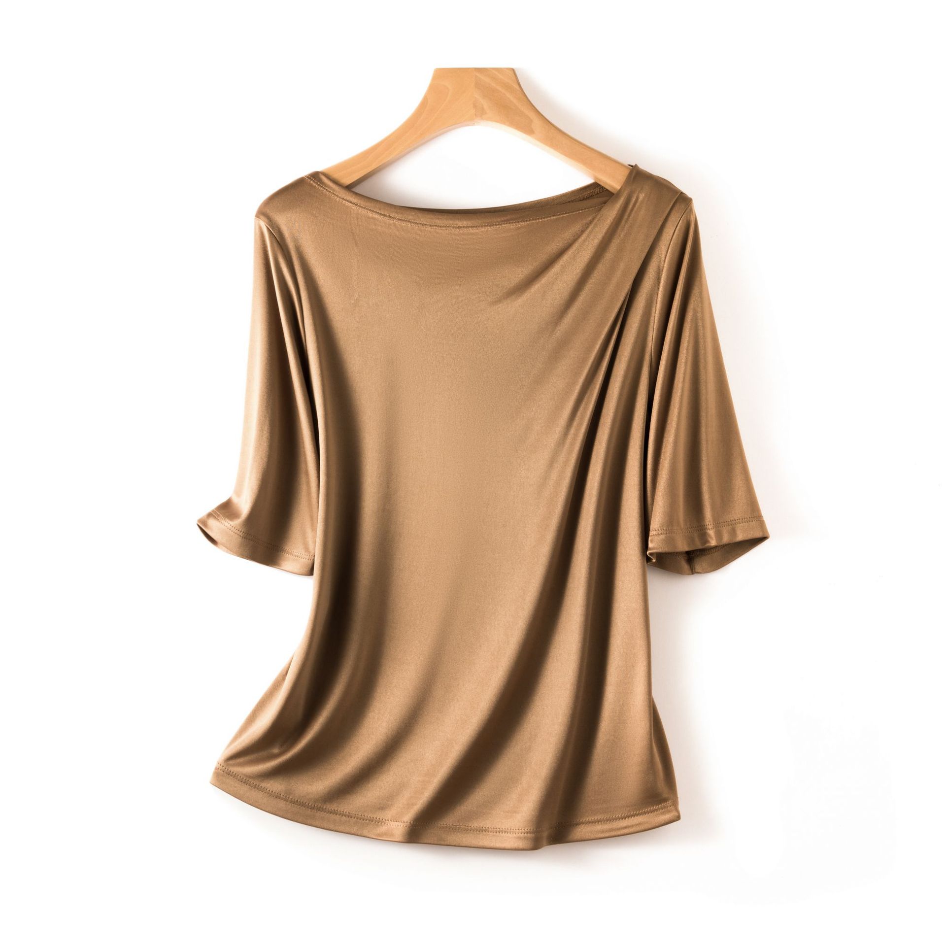 일본 산링 아세트산 반팔 여성용 솔리드 컬러 쿨 비 다림질 반팔 한 단어 스윙 칼라 여성용 반팔 중간 소매 티셔츠