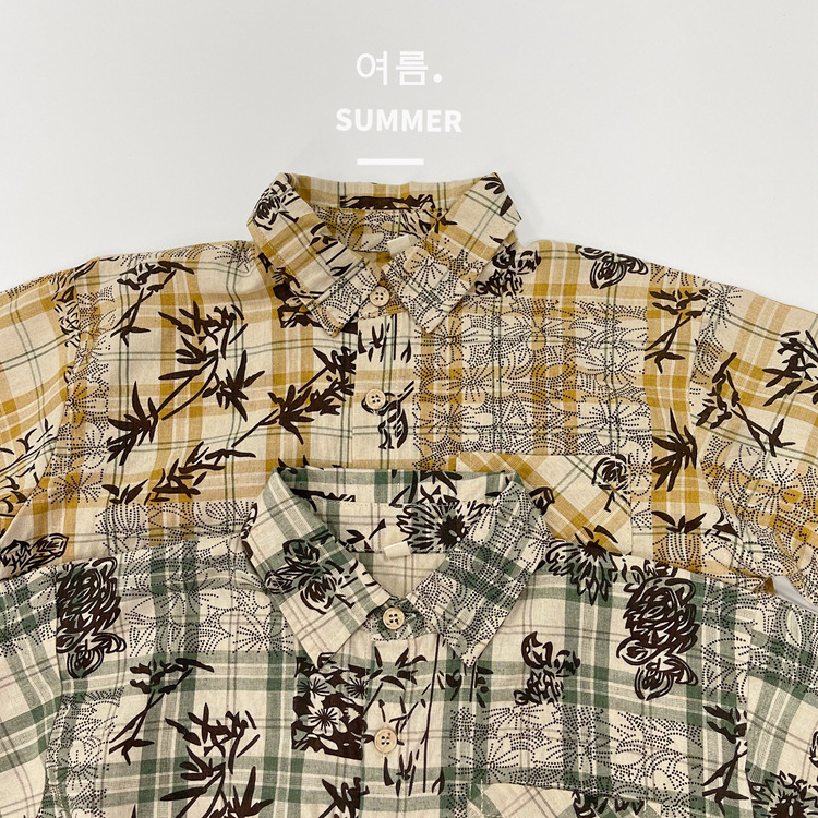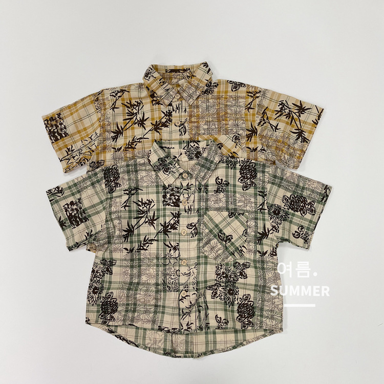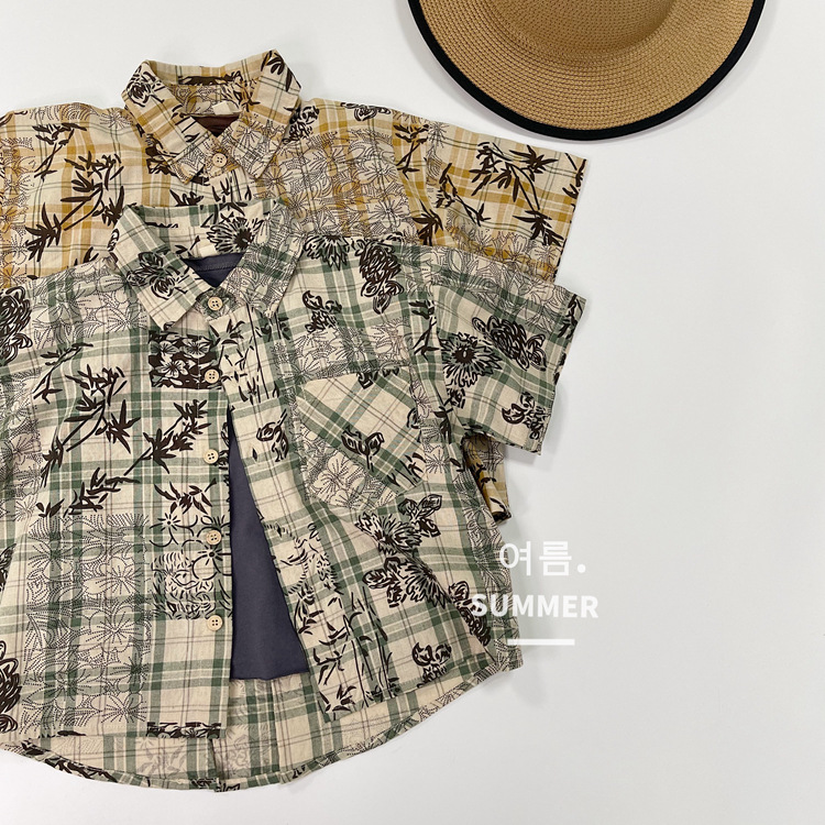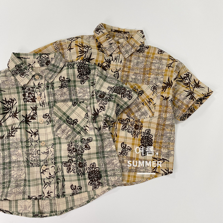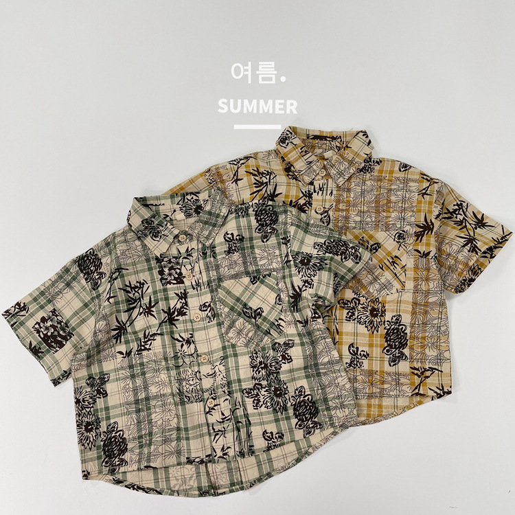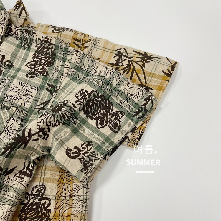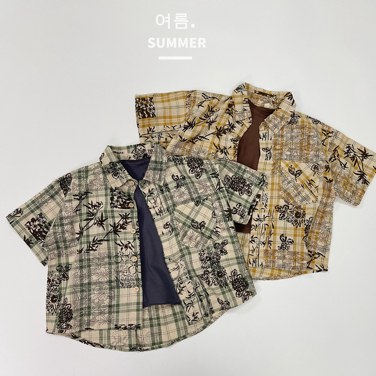 홀리데이 스타일 착용 Kaqi Huangzi 한국 스타일 어린이 셔츠 여름 얇은 꽃 셔츠 소년의 세련된 반팔 가디건스토어 가기