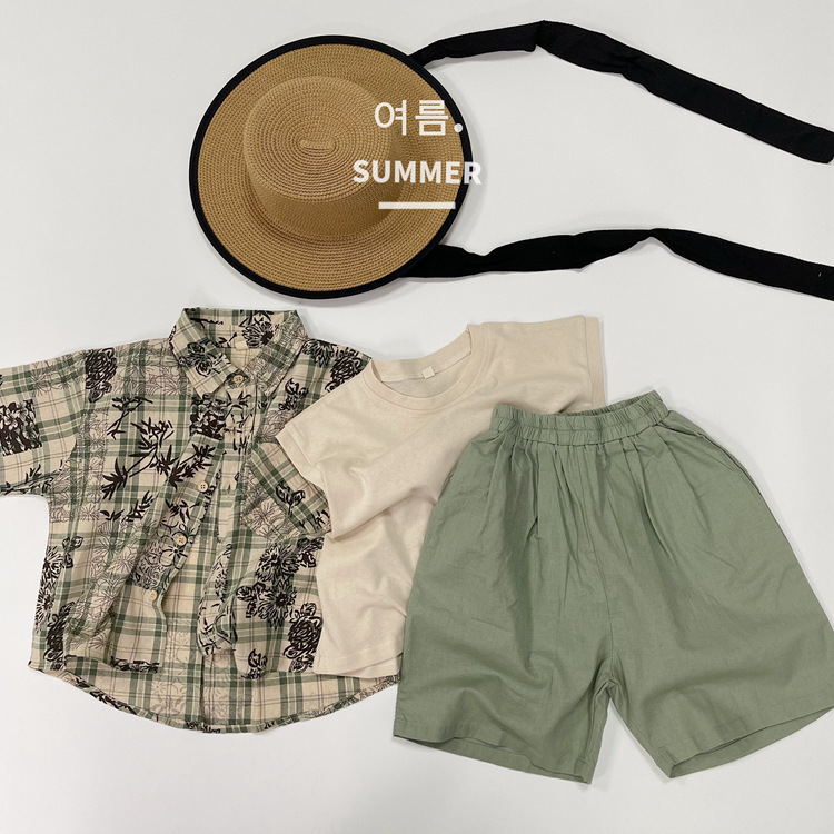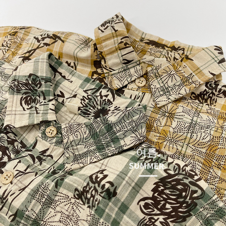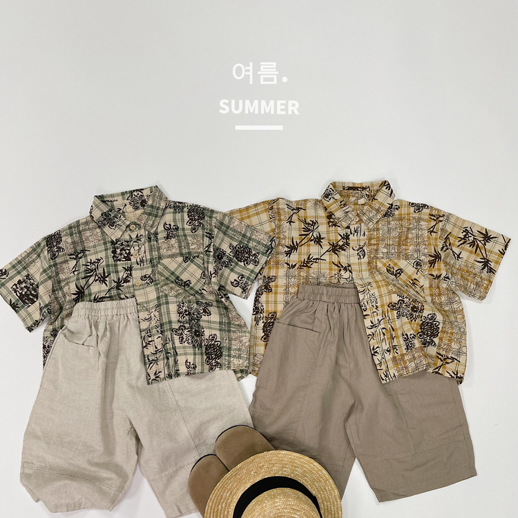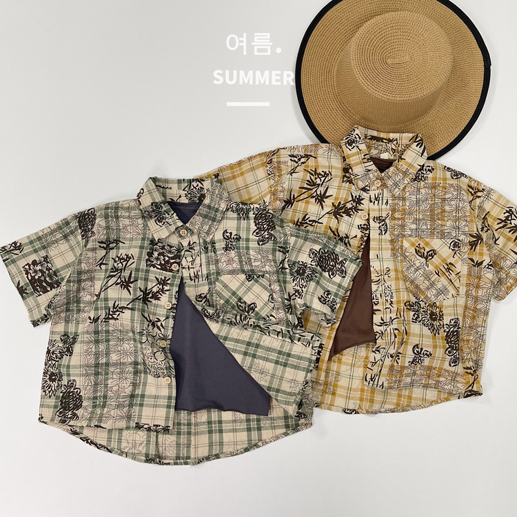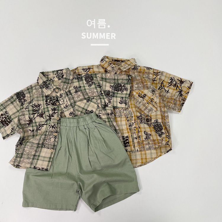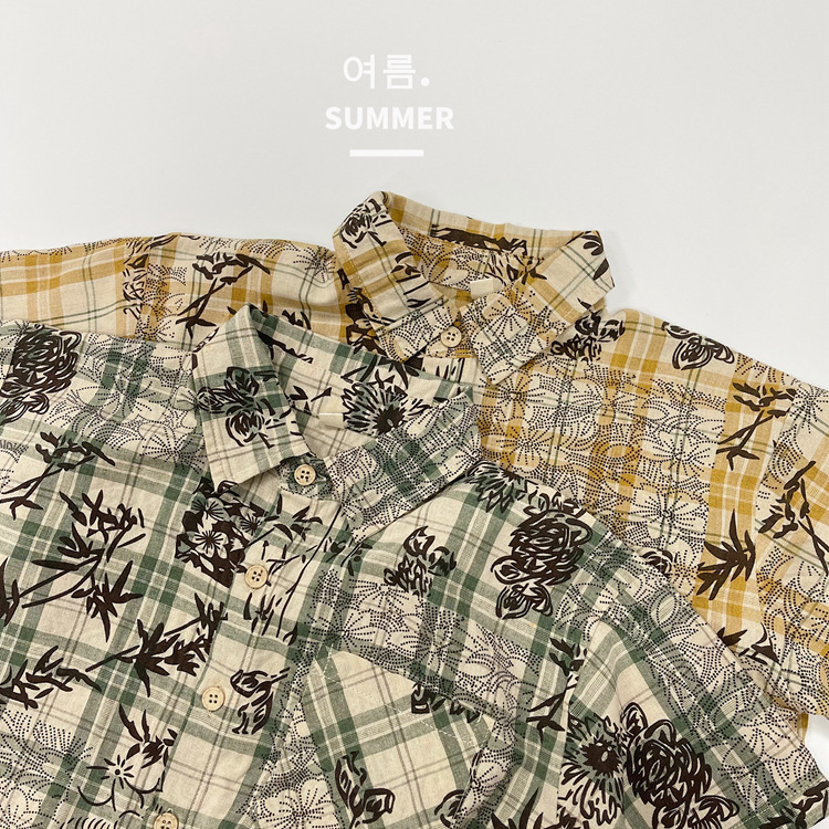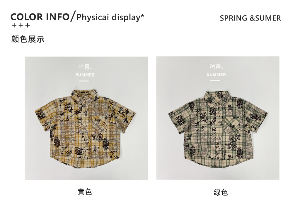 홀리데이 스타일 착용 Kaqi Huangzi 한국 스타일 어린이 셔츠 여름 얇은 꽃 셔츠 소년의 세련된 반팔 가디건스토어 가기