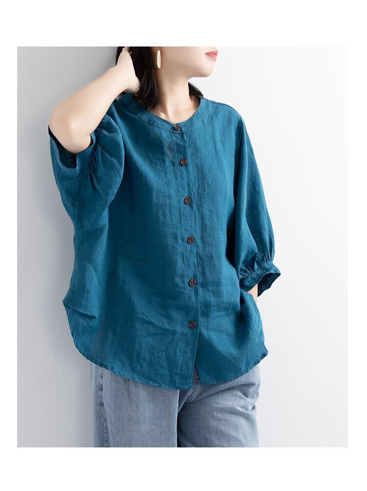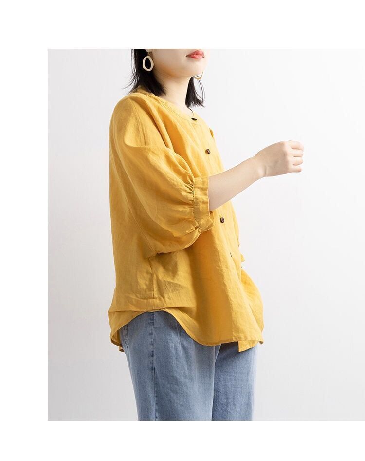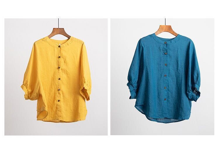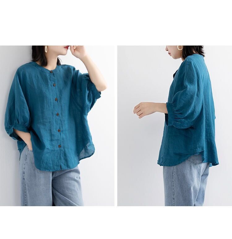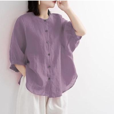 빈티지 코튼 린넨 반팔 셔츠 탑 여성의 플러스 사이즈 예술적 캐주얼 패션 작은 셔츠 얇은 느슨한 랜턴 슬리브 셔츠스토어 가기