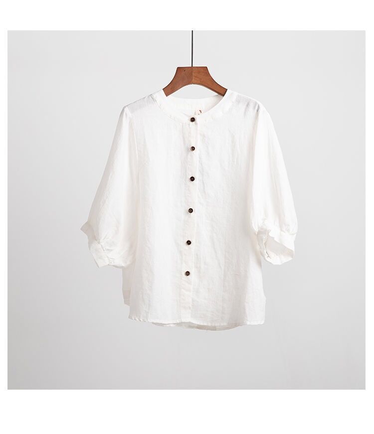 빈티지 코튼 린넨 반팔 셔츠 탑 여성의 플러스 사이즈 예술적 캐주얼 패션 작은 셔츠 얇은 느슨한 랜턴 슬리브 셔츠