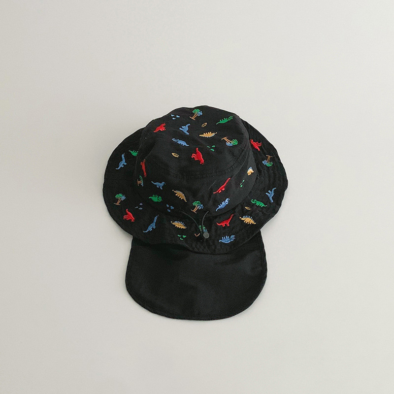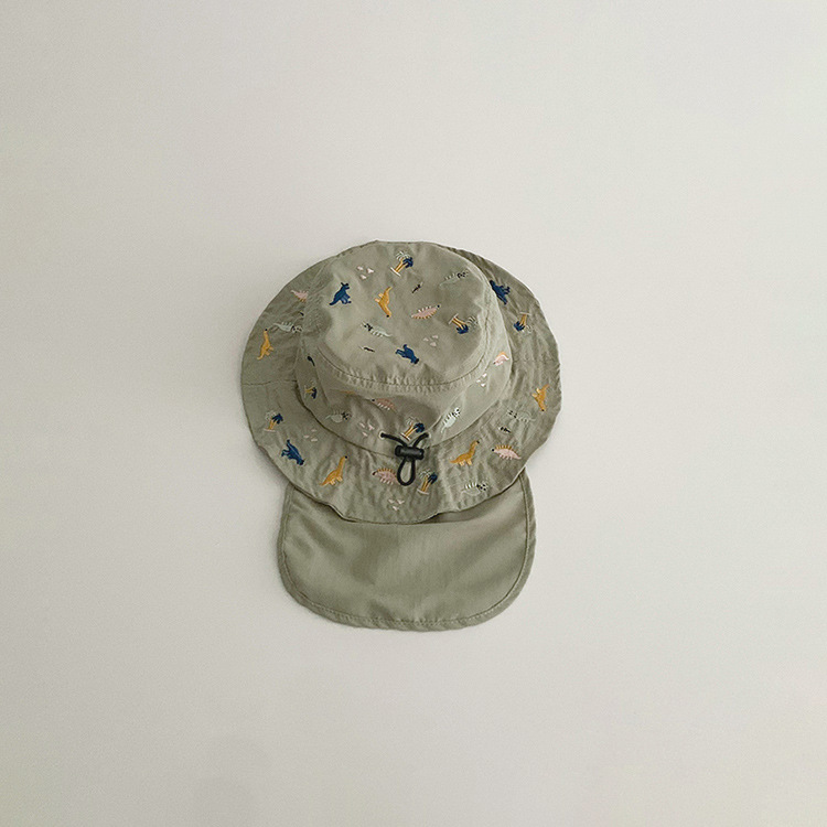 Qiunan 어린이 속건 어부 모자 여름 소년 소녀 만화 목도리 차양 모자 아기 모자 자외선 차단제 모자