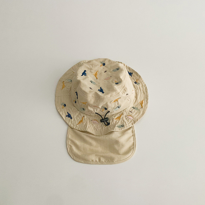 Qiunan 어린이 속건 어부 모자 여름 소년 소녀 만화 목도리 차양 모자 아기 모자 자외선 차단제 모자스토어 가기