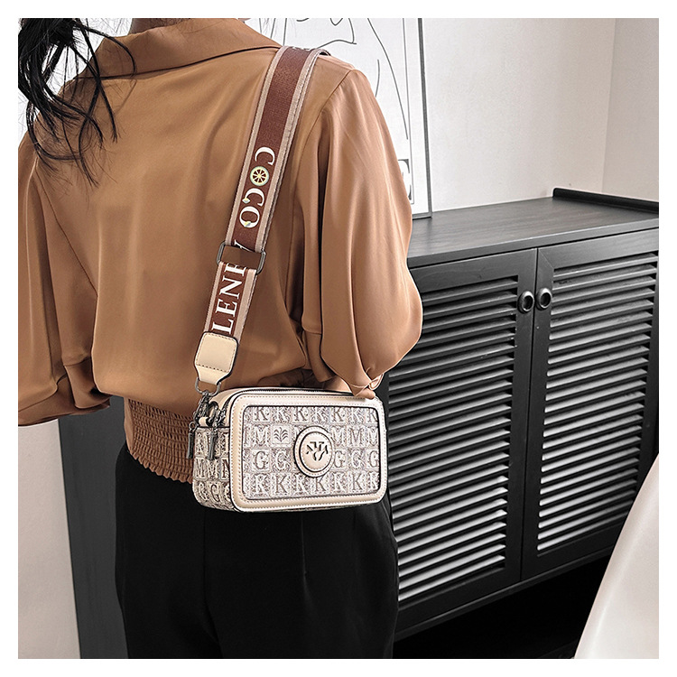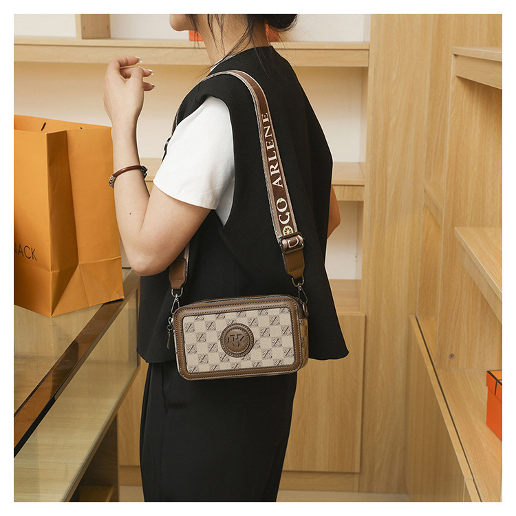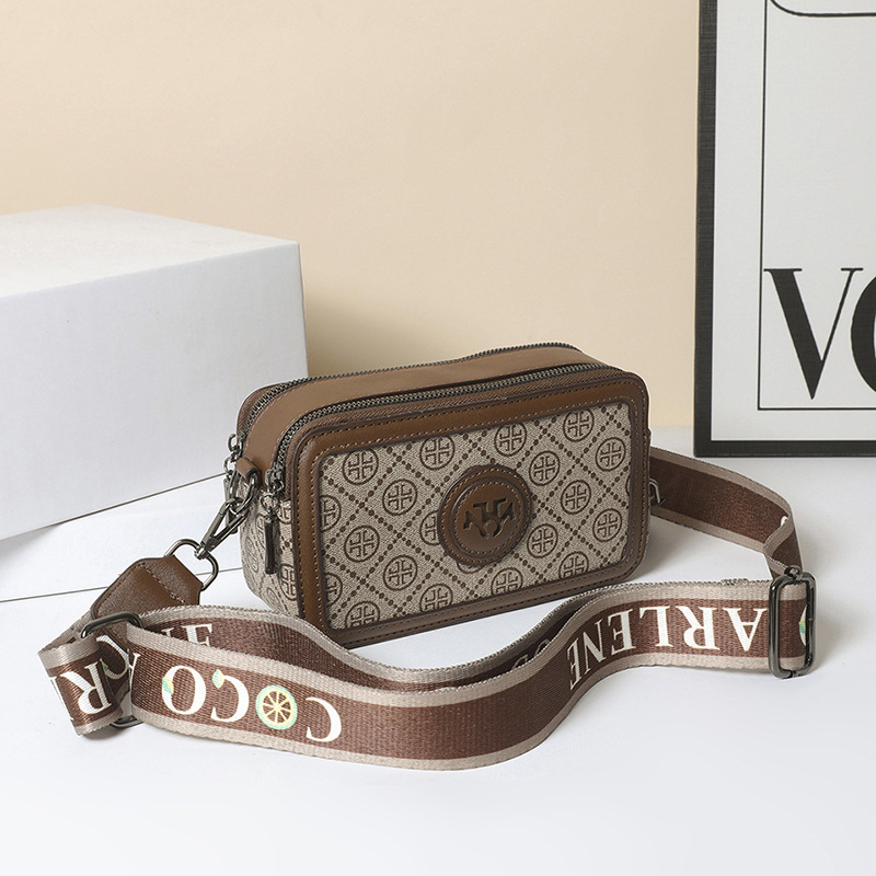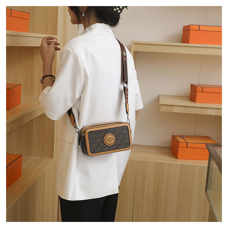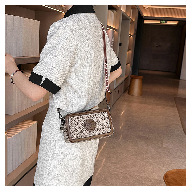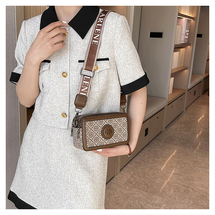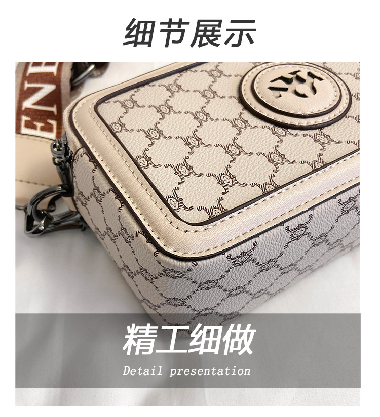 엄선된 카메라 가방, 유럽과 미국의 패션 트렌드, 크로스 패턴 프린트 작은 사각형 가방, 넓은 어깨끈 여성용 가방, 크로스 바디 백스토어 가기
