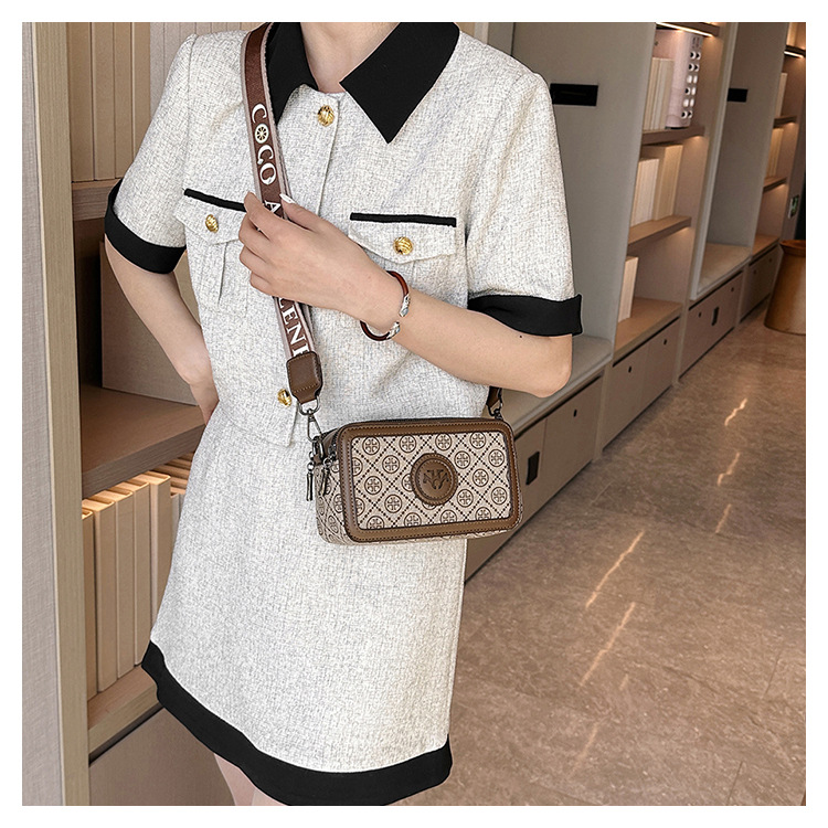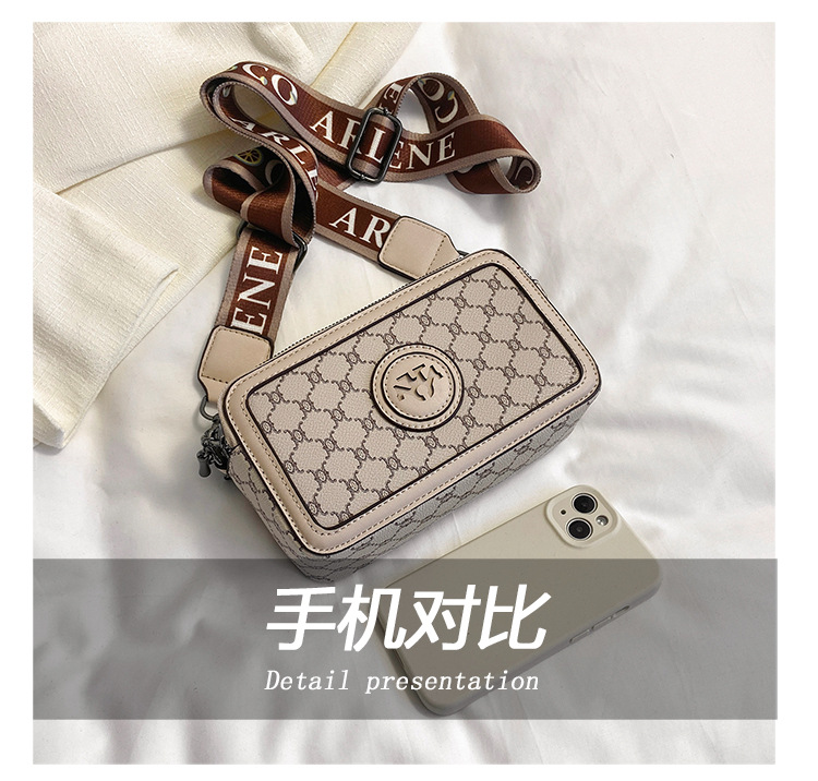 엄선된 카메라 가방, 유럽과 미국의 패션 트렌드, 크로스 패턴 프린트 작은 사각형 가방, 넓은 어깨끈 여성용 가방, 크로스 바디 백