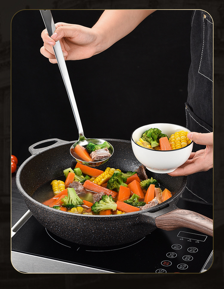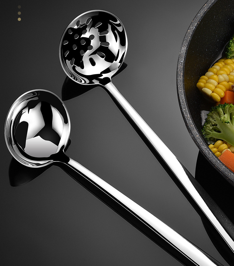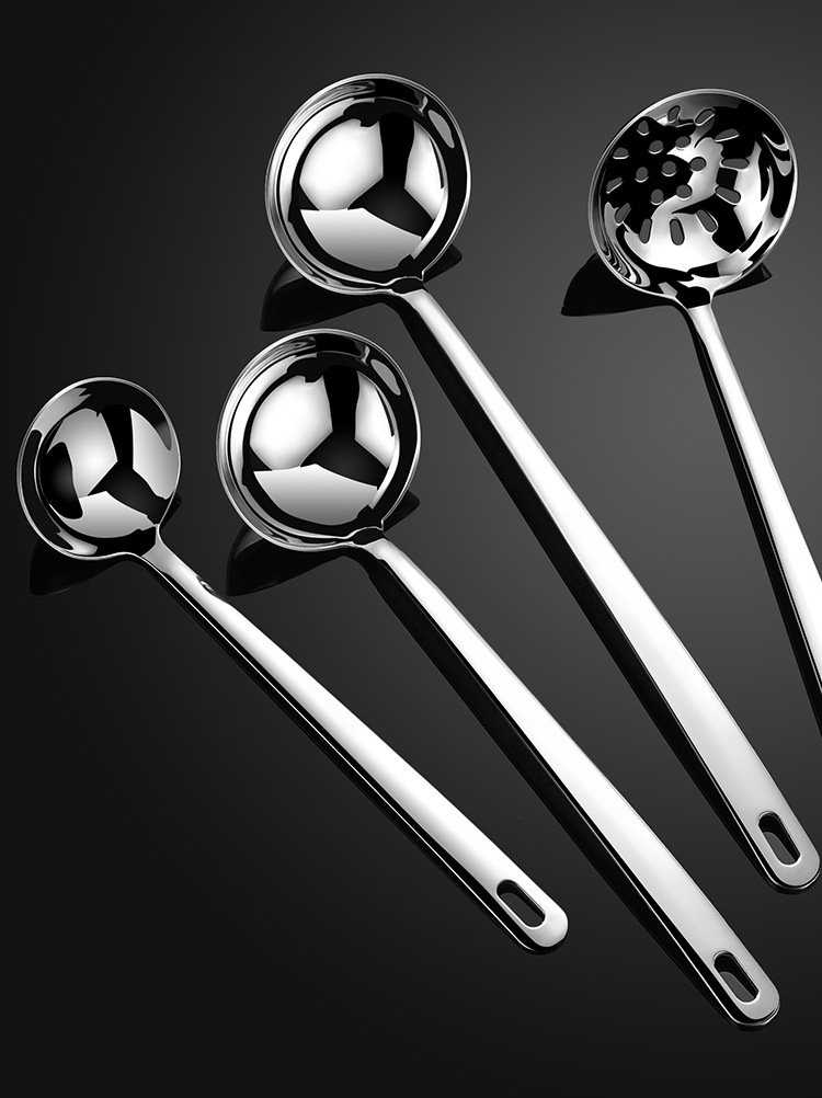 주방용품 가정용 두꺼운 304 스테인리스 스틸 거름망망자, 깊은 대형 수프 스푼, 긴 손잡이 냄비 스푼 도매
