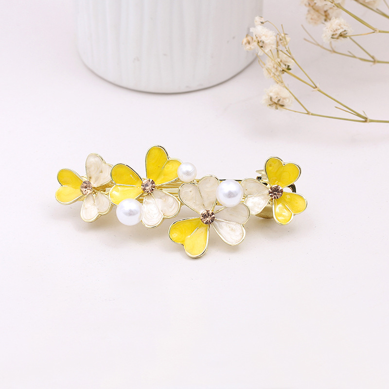이른 봄 액세서리, 우아한 반 묶음 꽃 머리핀, 여성용 탑 클립, 상큼하고 달콤한 봄 클립, 작은 머리핀, 기름 떨어지는 헤어 액세서리스토어 가기
