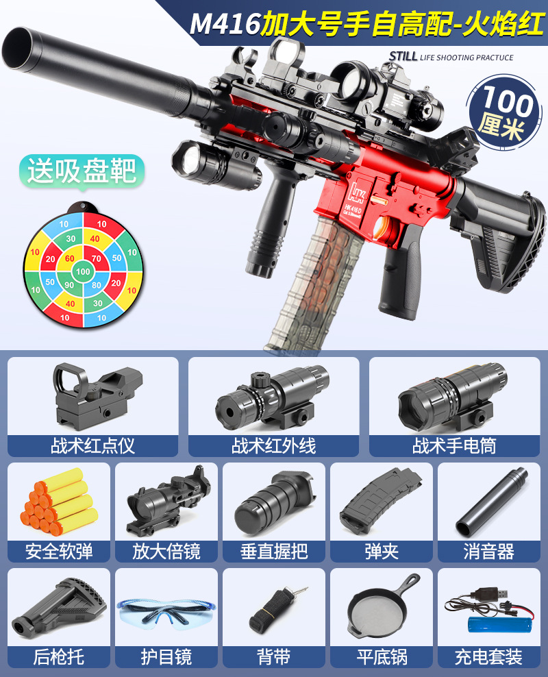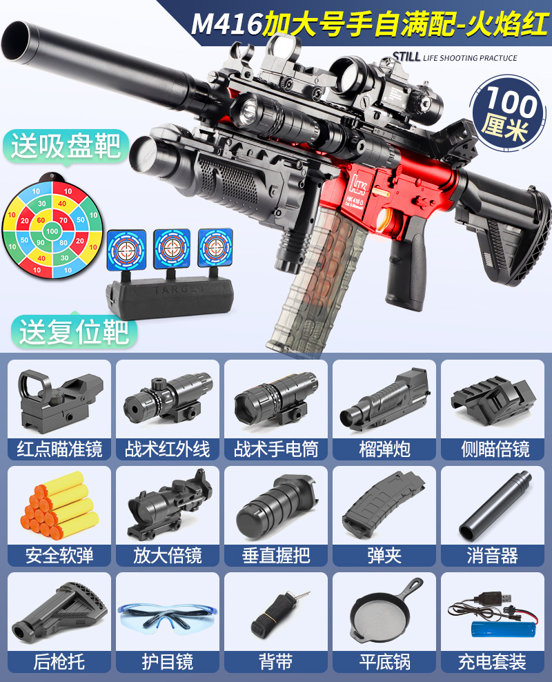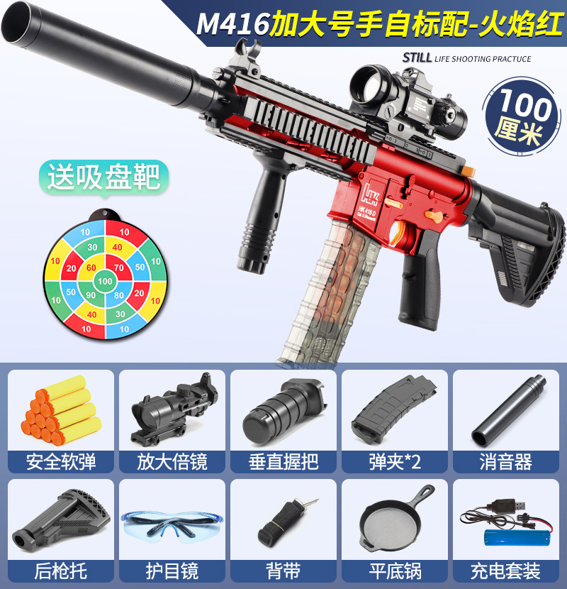 • [대형 이중 탄창] Flame Red-M416 자동 소프트 총알 총 [표준 구성]