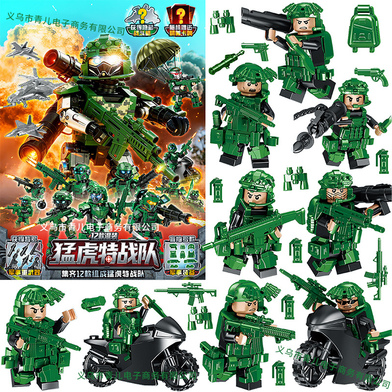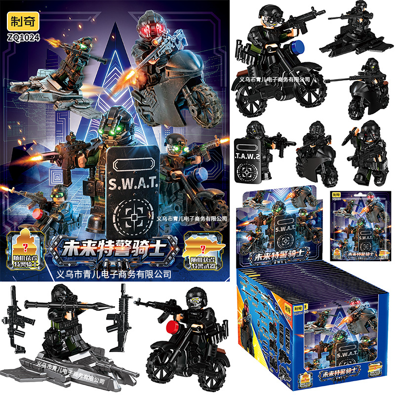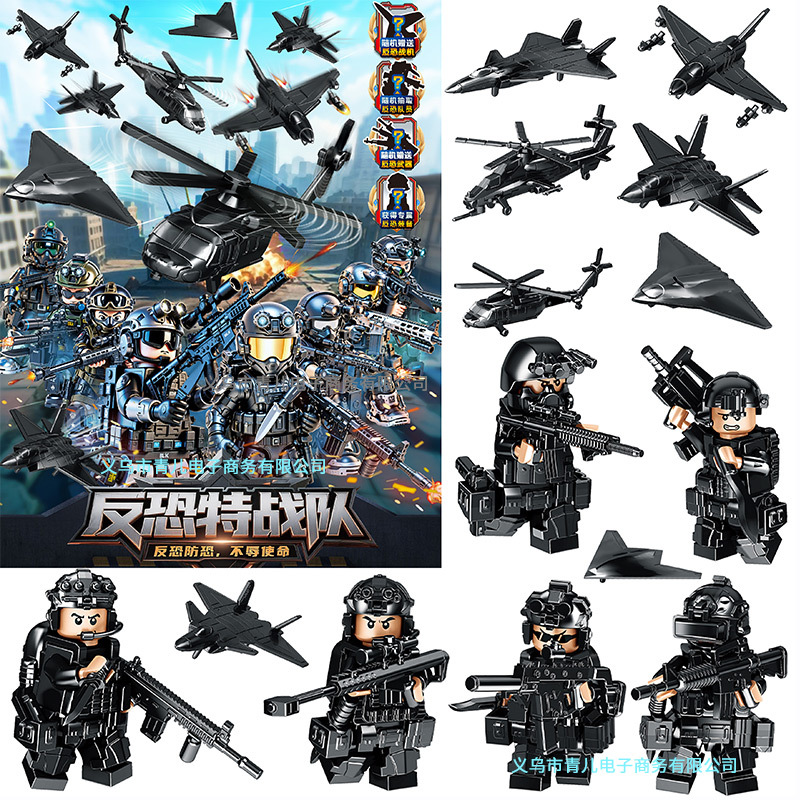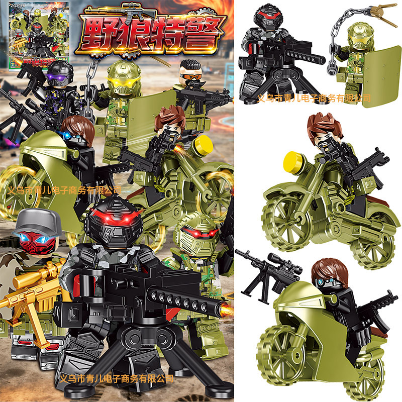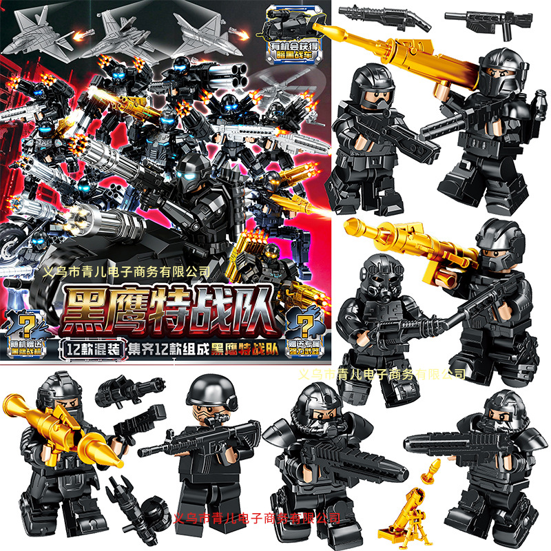 특수 경찰 남성 빌딩 블록 블라인드 가방 장난감 전투기 폭행 부대 인형 플라스틱 작은 입자 조립 국경 특수 부대스토어 가기
