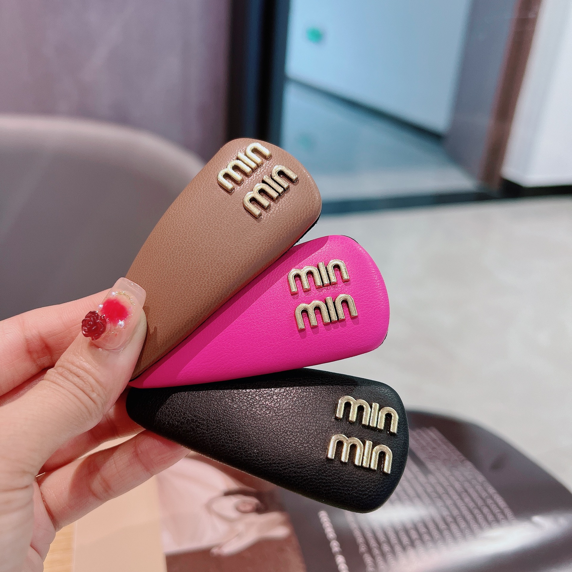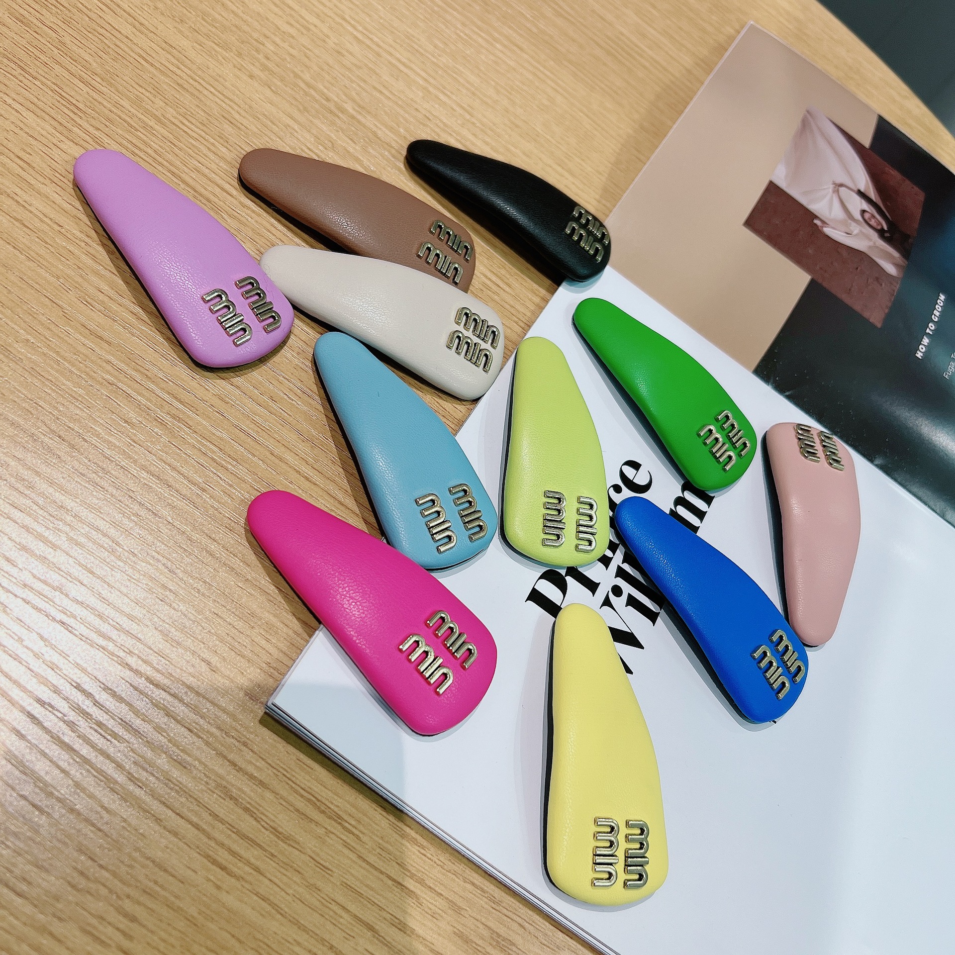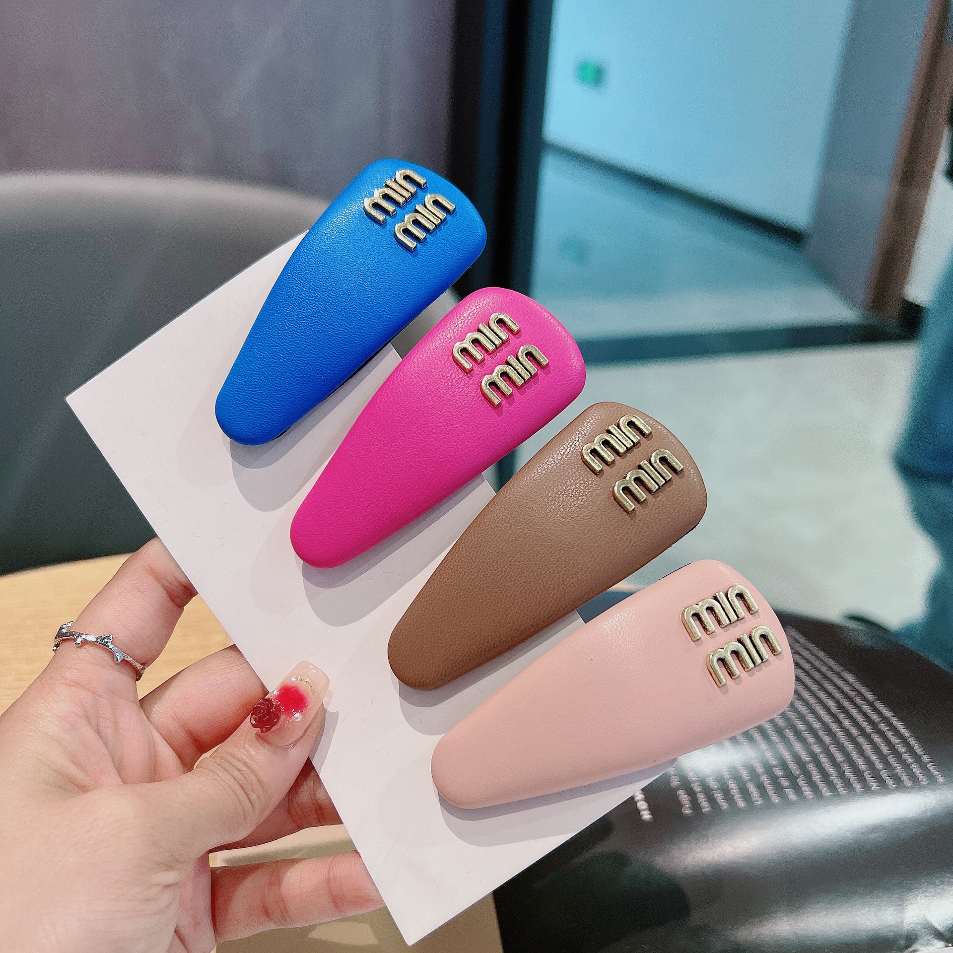 한국 새로운 캔디 컬러 가죽 물방울 BB 클립 편지 머리핀 소녀의 측면 앞머리 클립 깨진 머리핀 클립