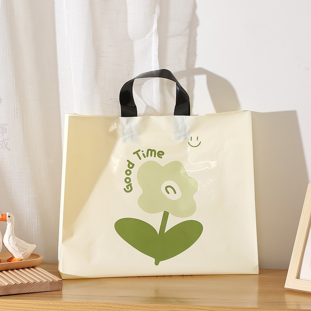 신선한 잎 선물 포장 가방 만화 의류 매장 가방 여성 의류 아동 의류 플라스틱 핸드백 인쇄 로고스토어 가기