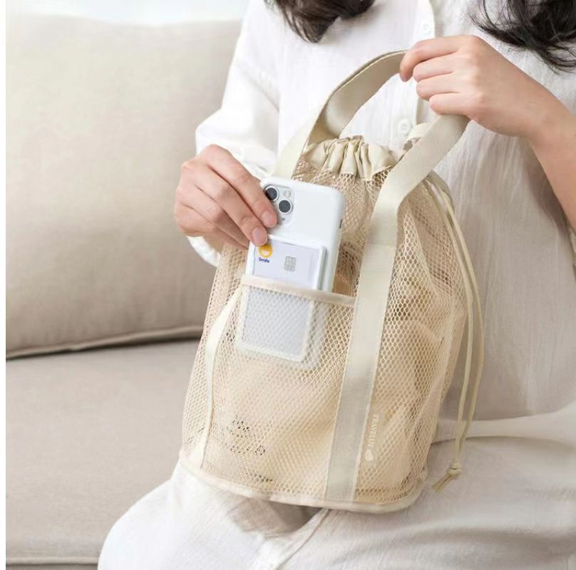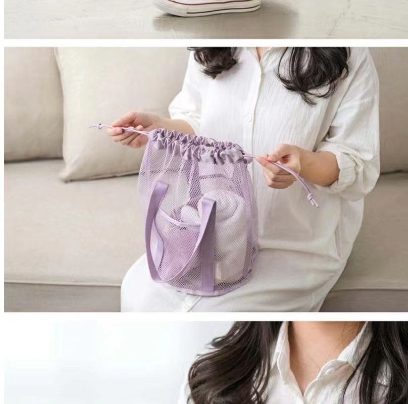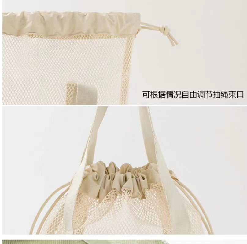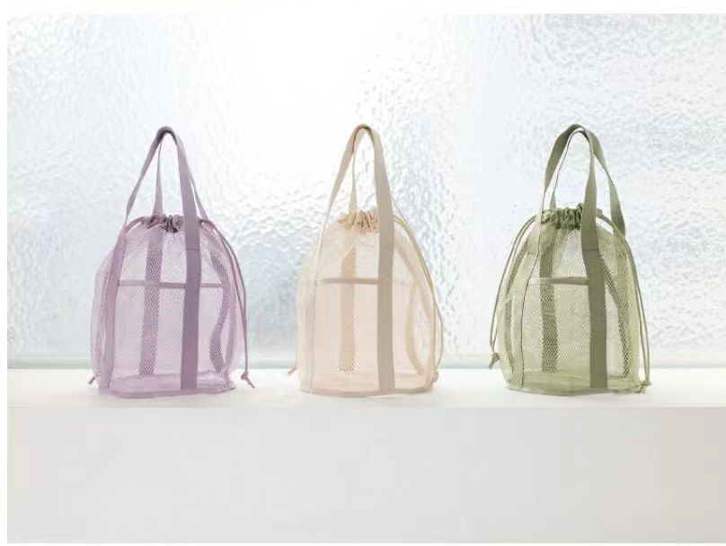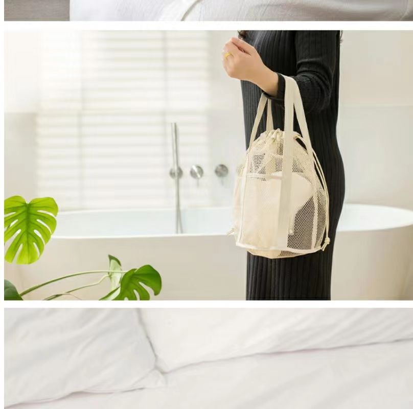 접이식 캐주얼 메쉬 중공 토트 백 졸라 매는 끈 포켓 수영 세면 용품 가방 여행 조직 초경량 보관 가방스토어 가기