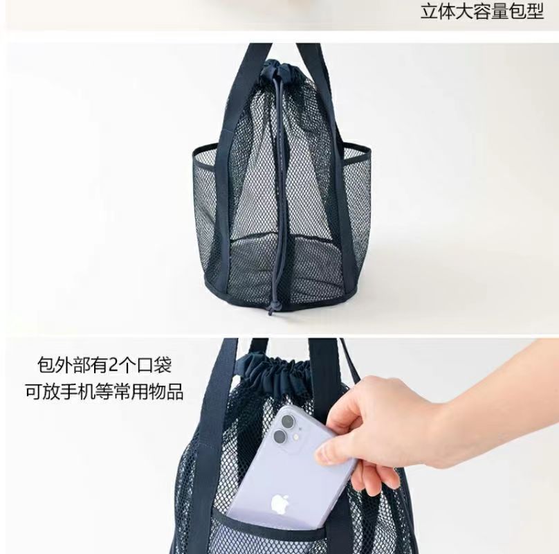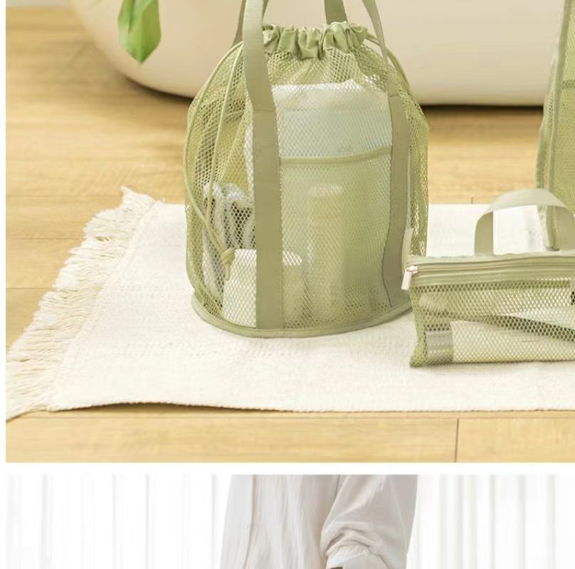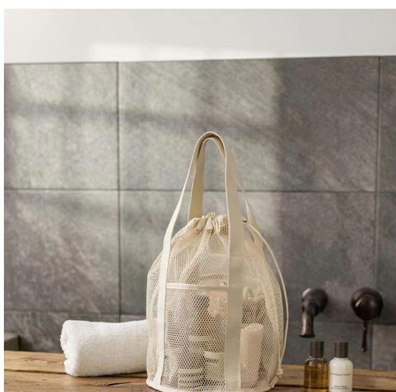 접이식 캐주얼 메쉬 중공 토트 백 졸라 매는 끈 포켓 수영 세면 용품 가방 여행 조직 초경량 보관 가방