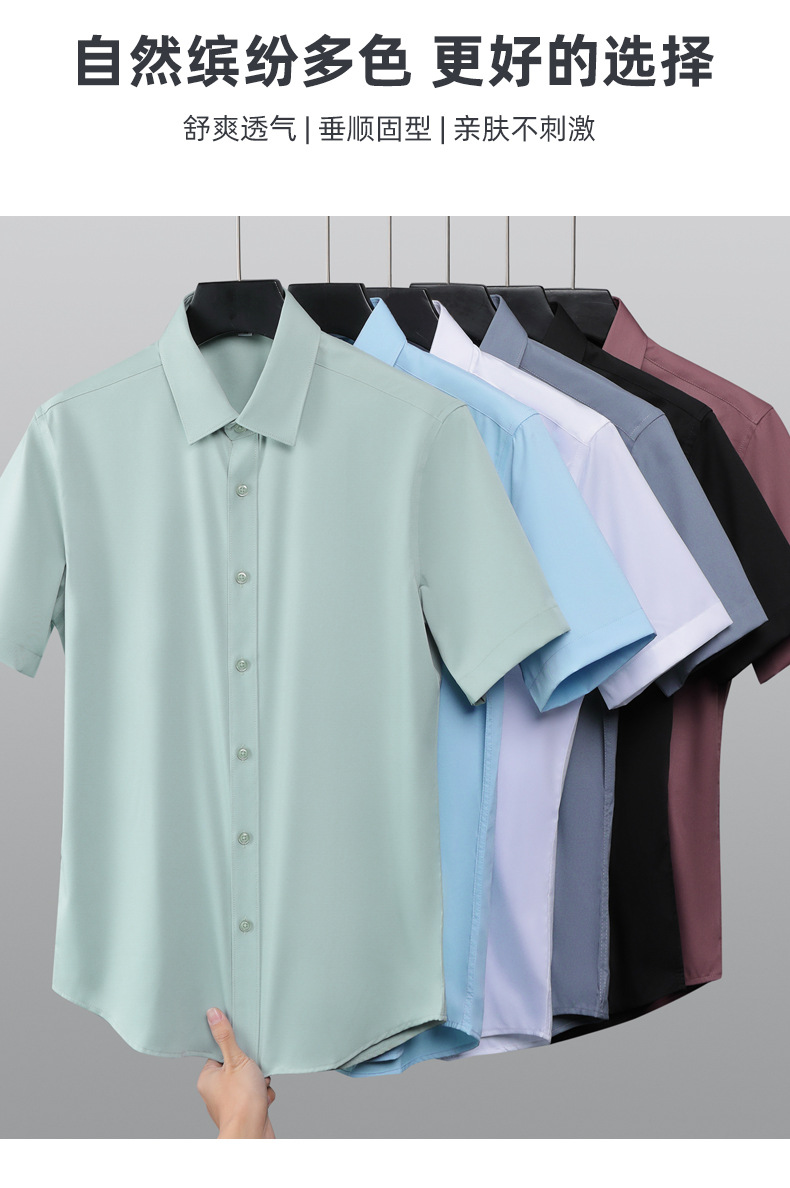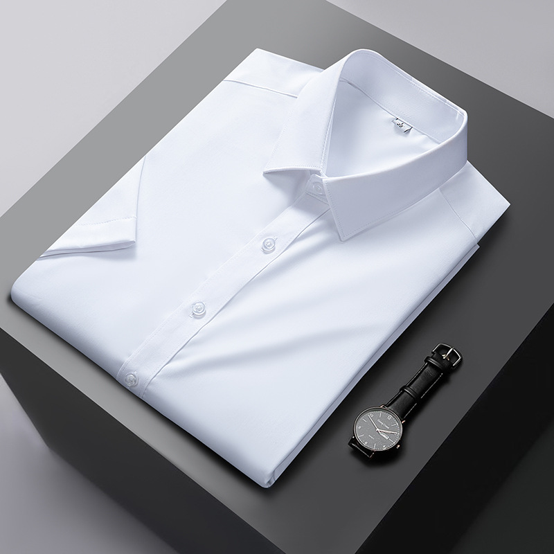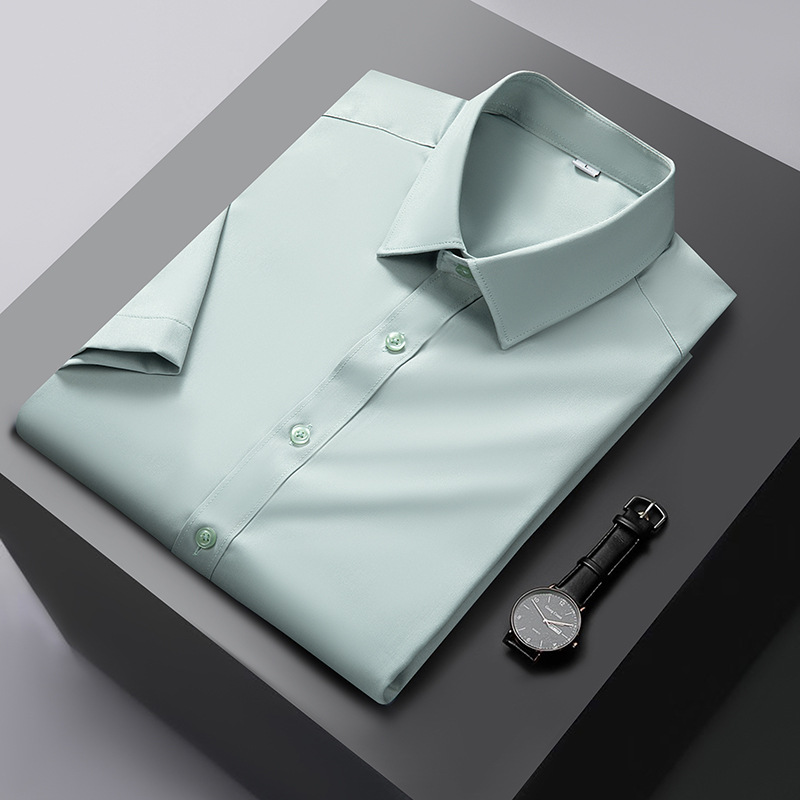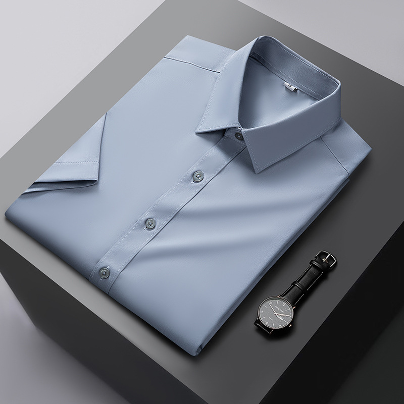 대나무 섬유 반팔 셔츠 남자의 2024 여름 하이 엔드 센스 라이트 비즈니스 비 다림질 캐주얼 긴팔 셔츠 남성용 셔츠스토어 가기
