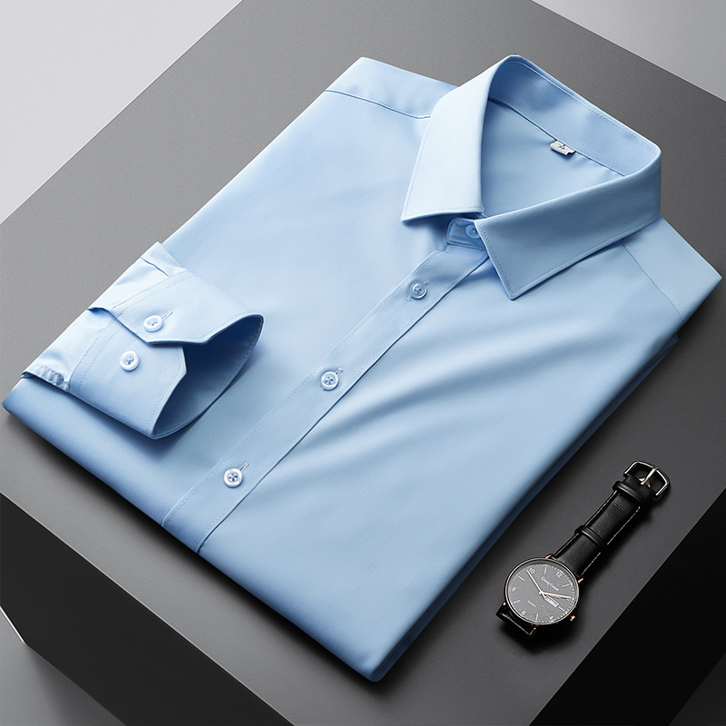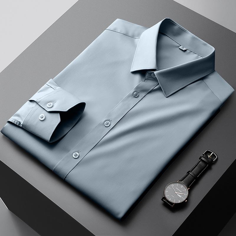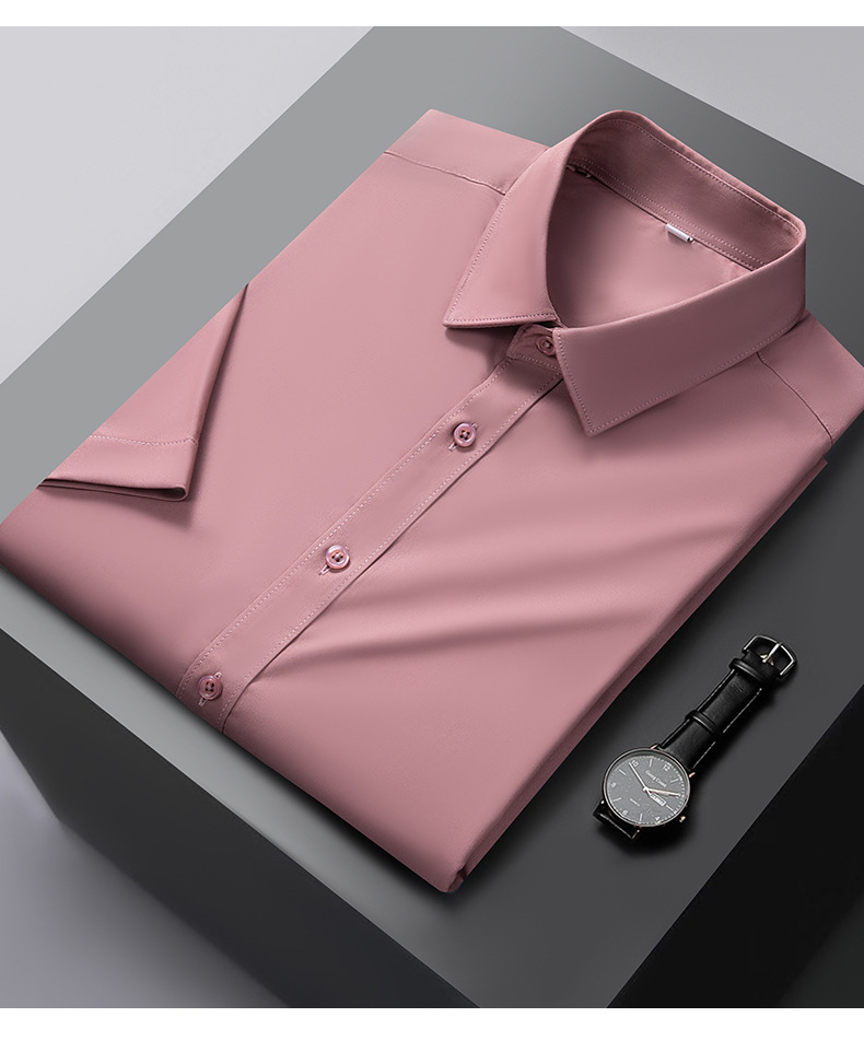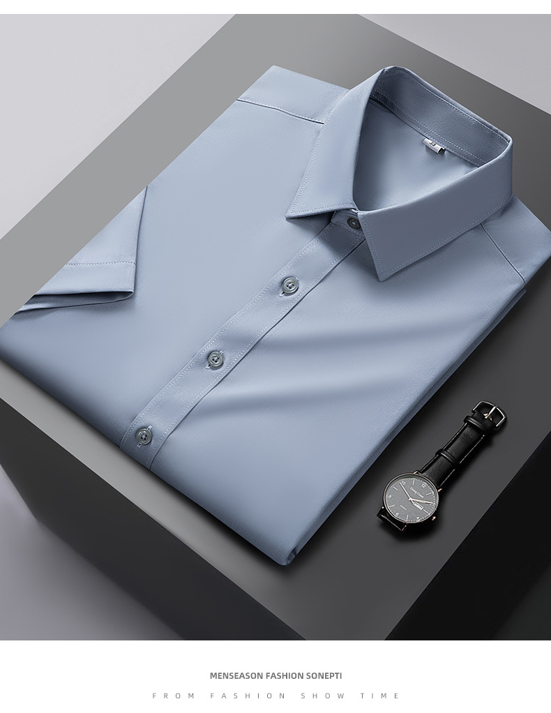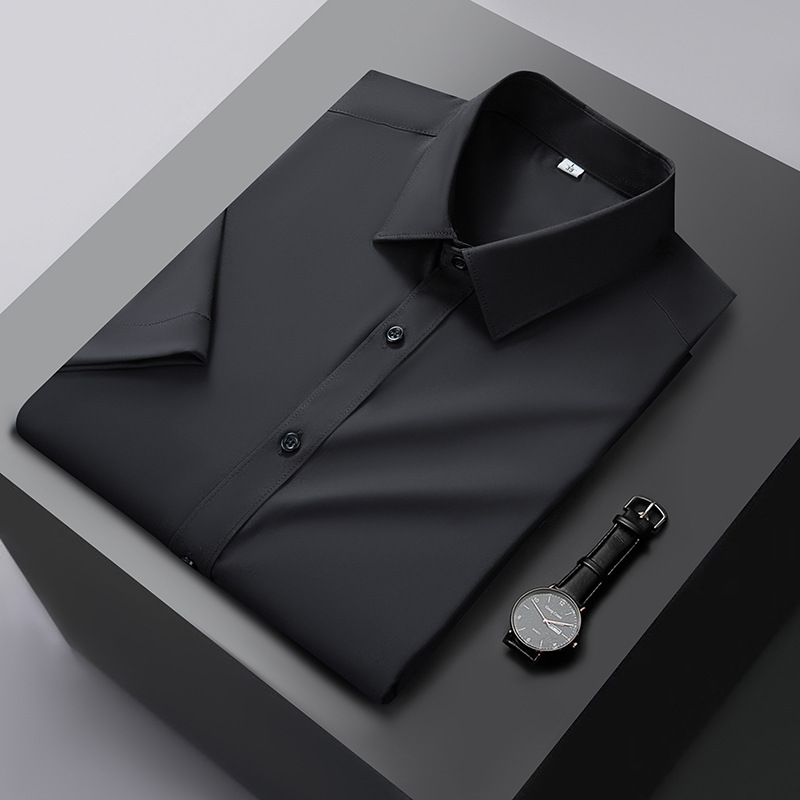 대나무 섬유 반팔 셔츠 남자의 2024 여름 하이 엔드 센스 라이트 비즈니스 비 다림질 캐주얼 긴팔 셔츠 남성용 셔츠스토어 가기
