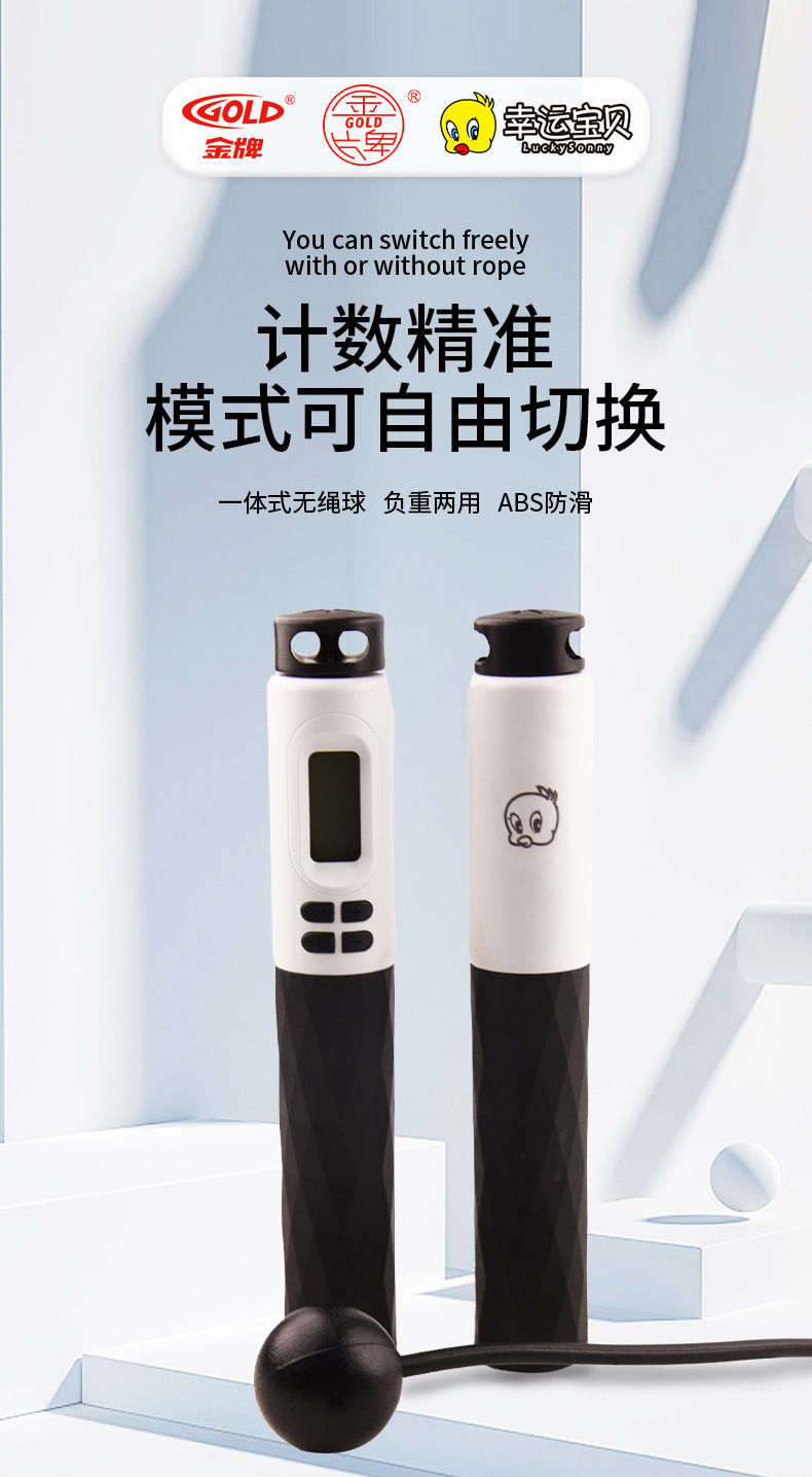 금메달 무선 전자 계수 로프 스킵 학생 LED 발광 대형 스크린 ABS 미끄럼 방지 핸들 와이어 로프 도매스토어 가기