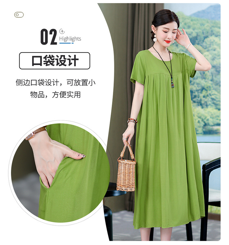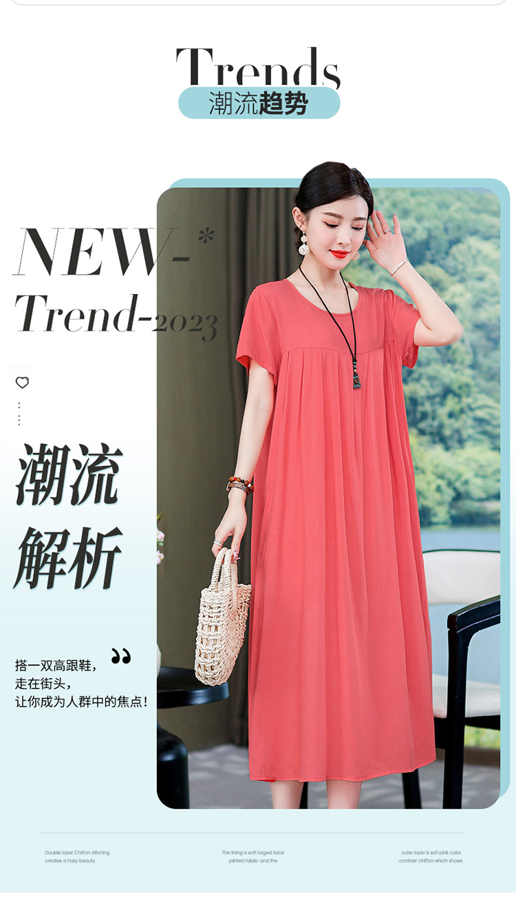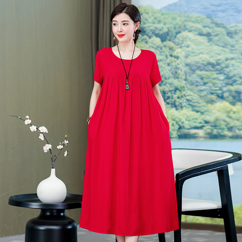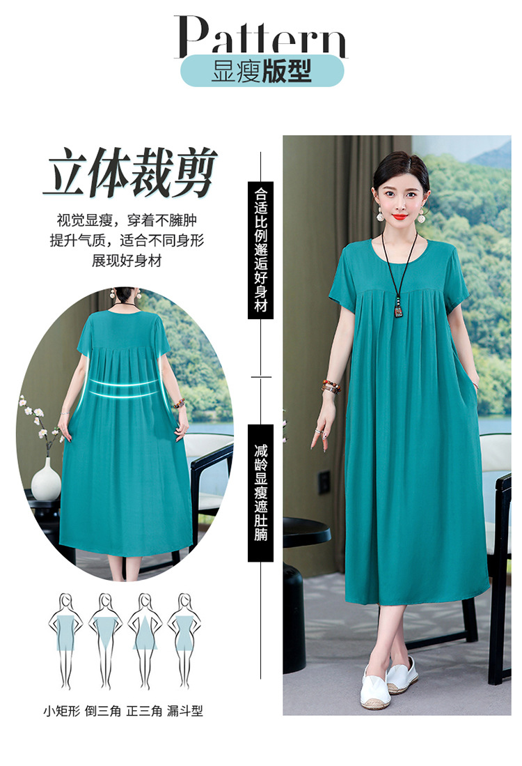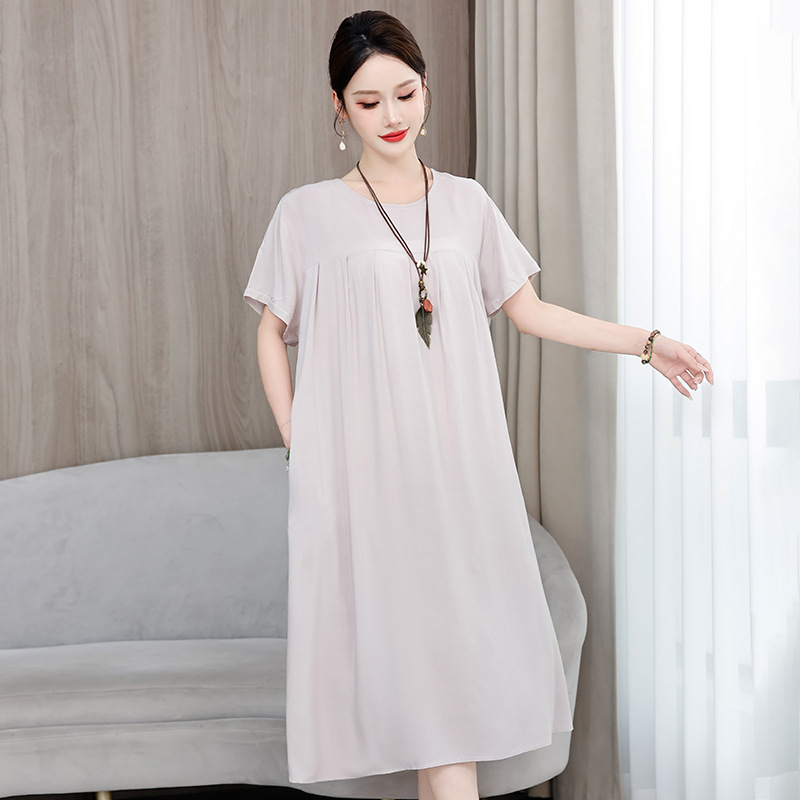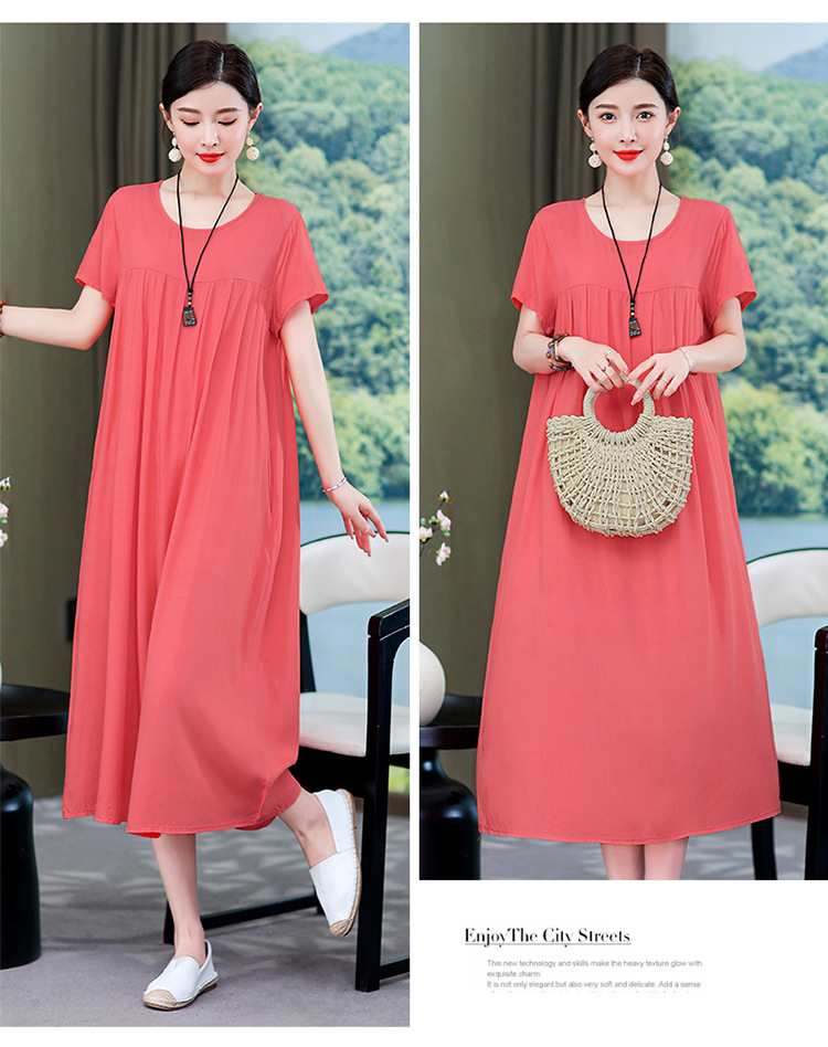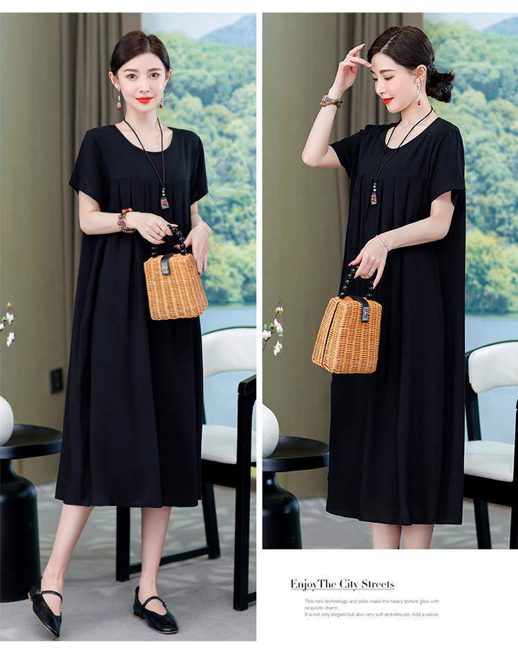 여자의 여름 새로운 라면 느슨한 플러스 사이즈 단색 원피스 여름 한국 중간 길이 이상 무릎 원피스스토어 가기