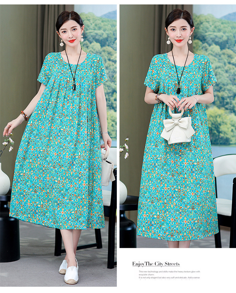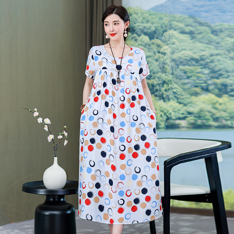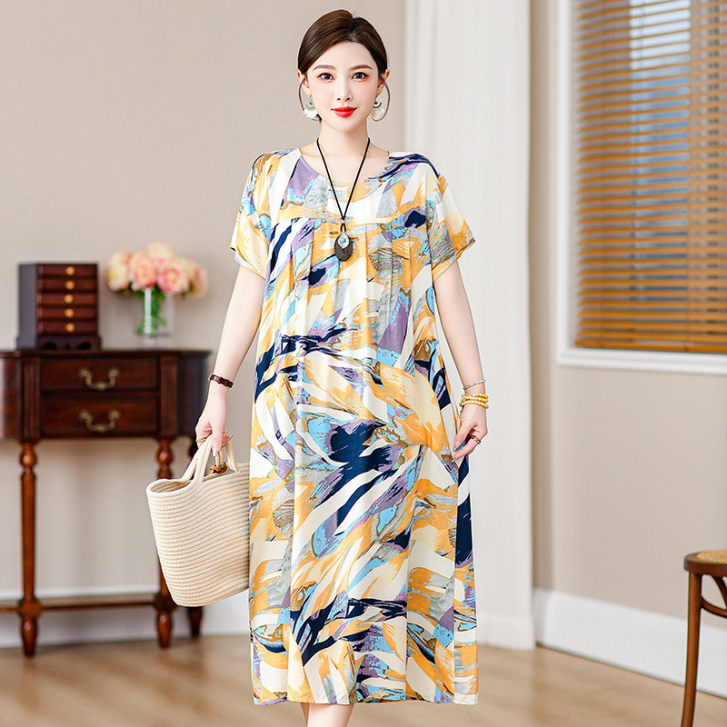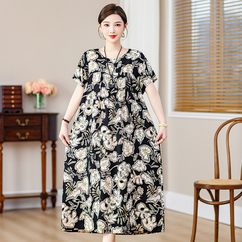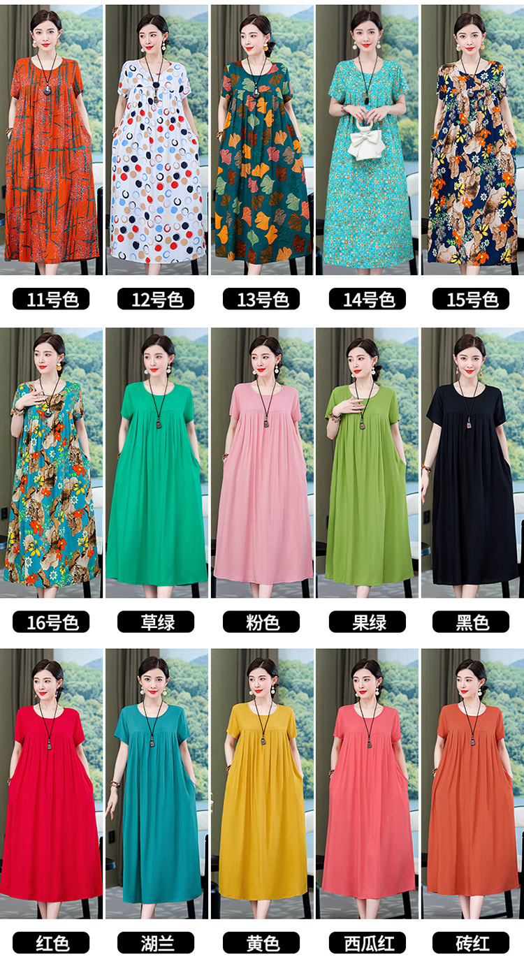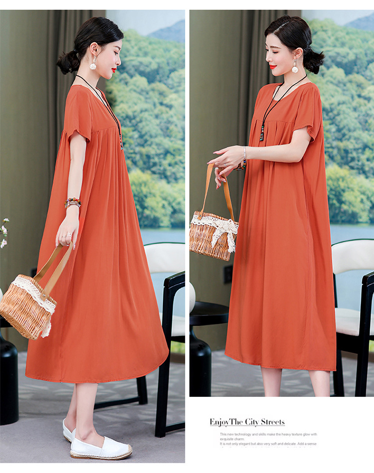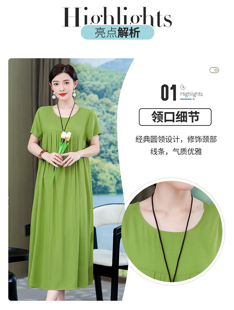 여자의 여름 새로운 라면 느슨한 플러스 사이즈 단색 원피스 여름 한국 중간 길이 이상 무릎 원피스스토어 가기