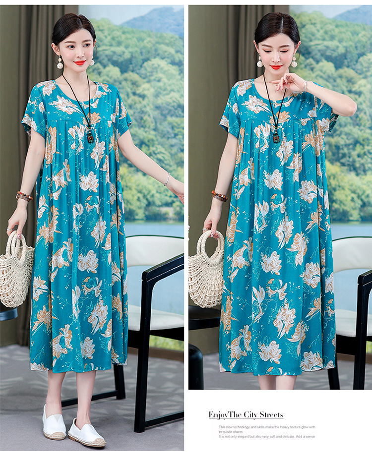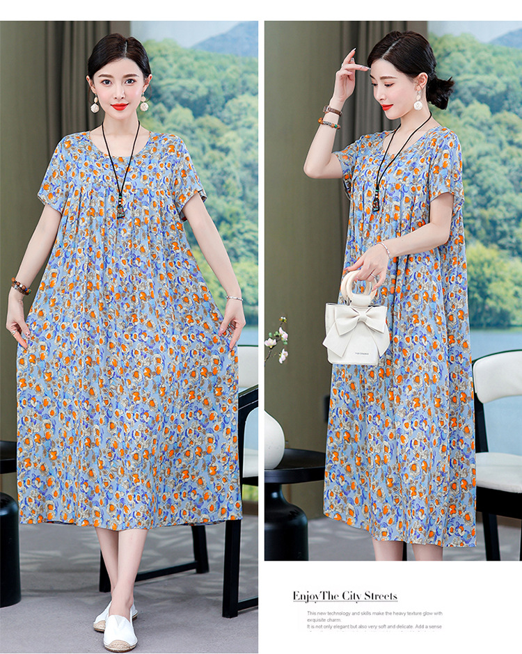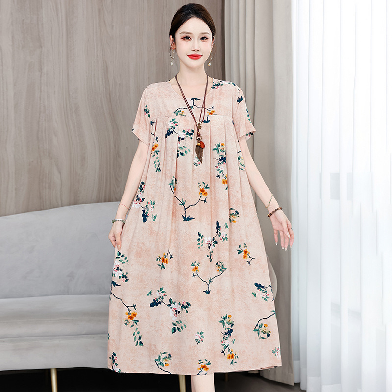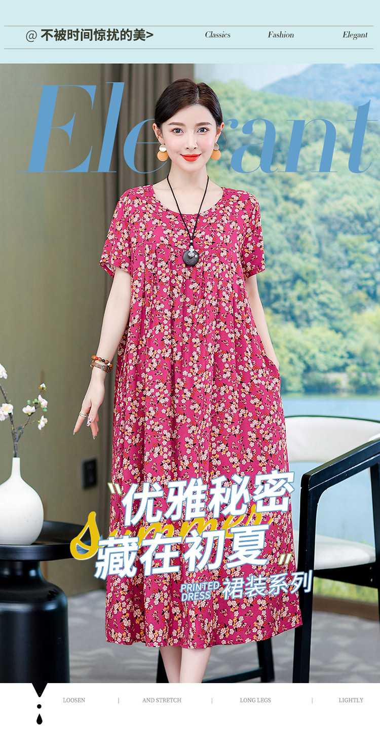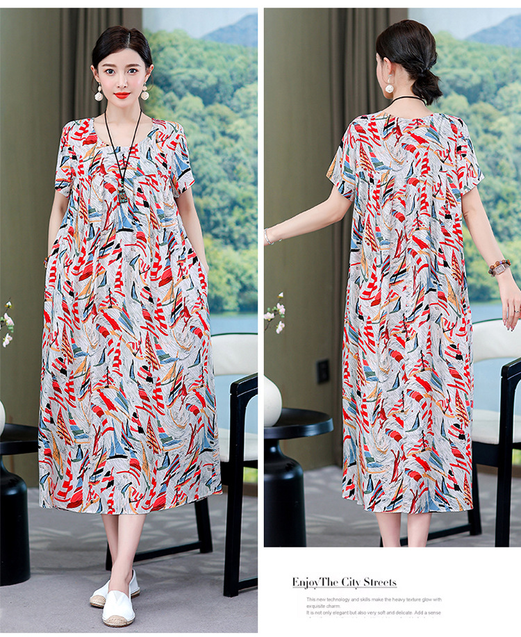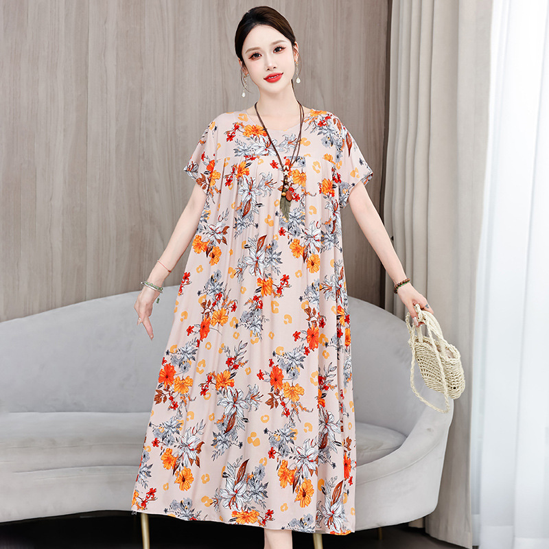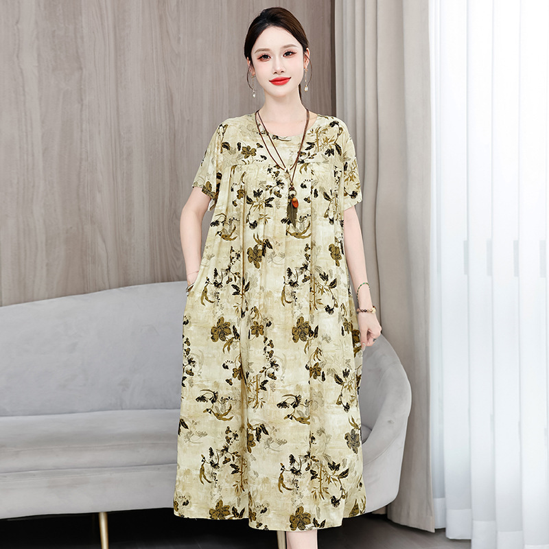 여자의 여름 새로운 라면 느슨한 플러스 사이즈 단색 원피스 여름 한국 중간 길이 이상 무릎 원피스스토어 가기