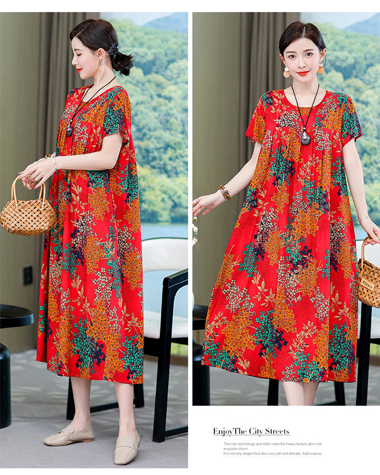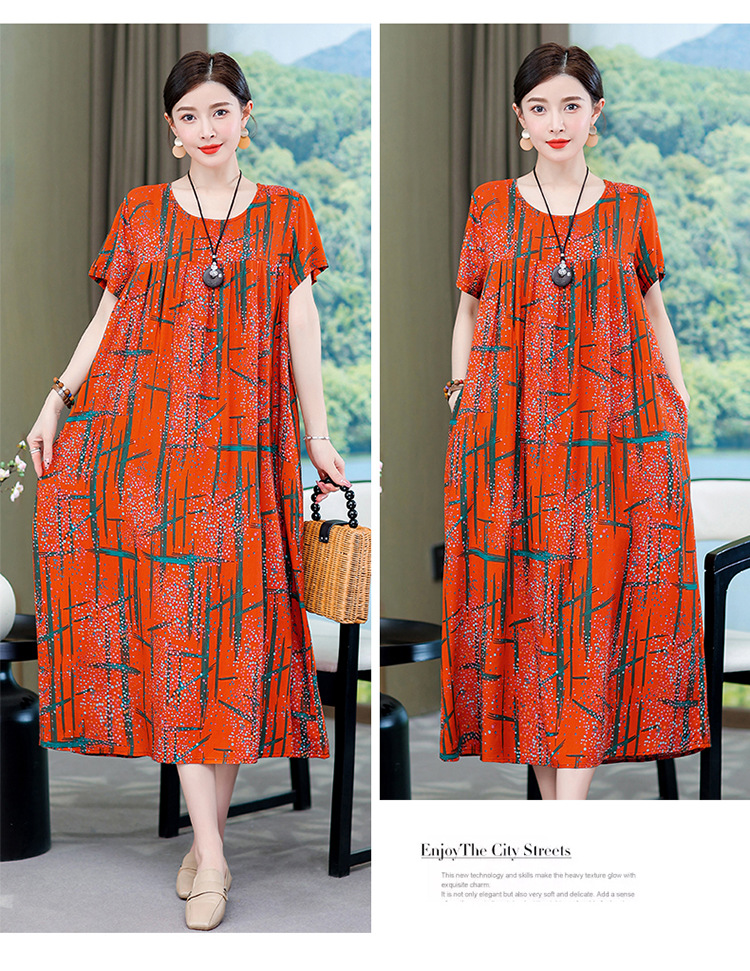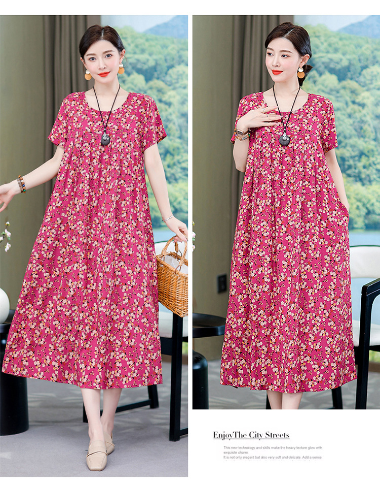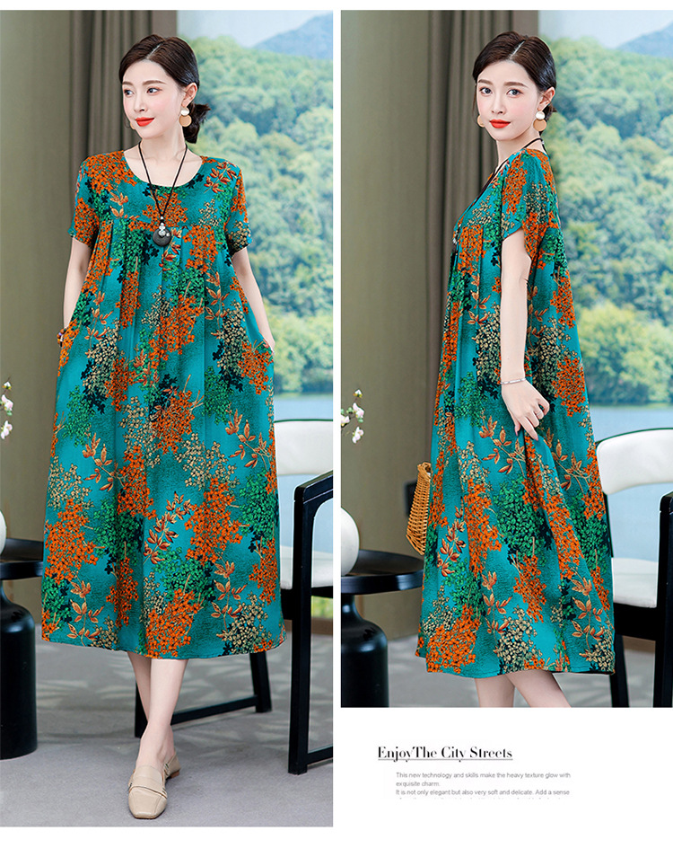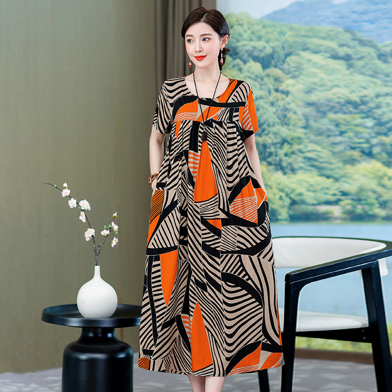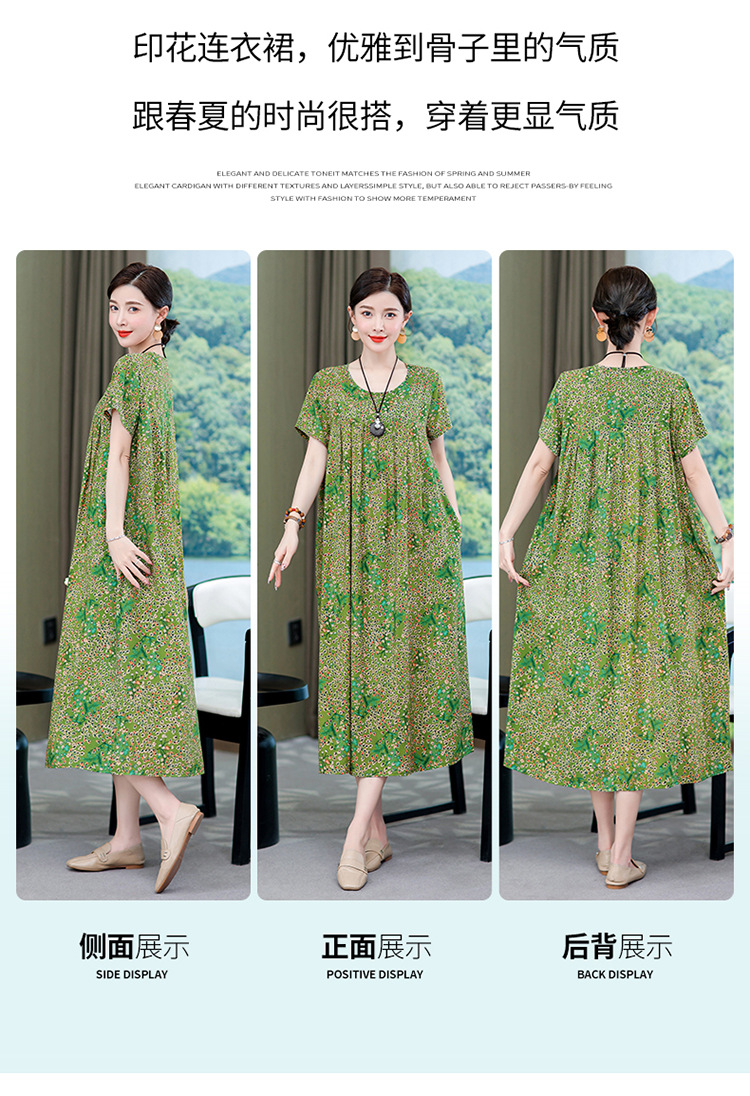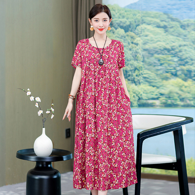 여자의 여름 새로운 라면 느슨한 플러스 사이즈 단색 원피스 여름 한국 중간 길이 이상 무릎 원피스스토어 가기