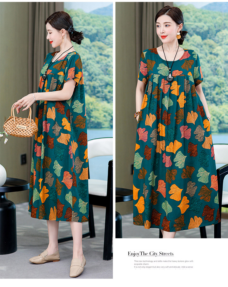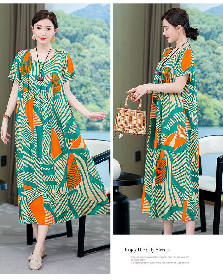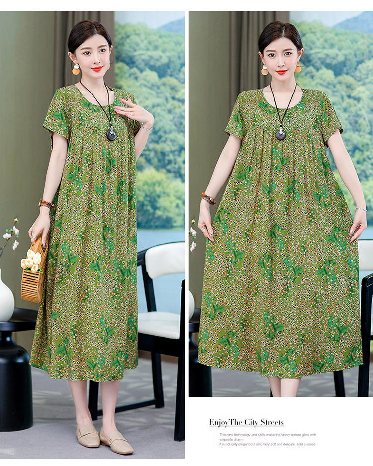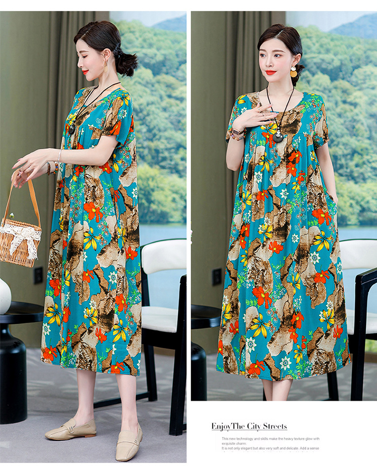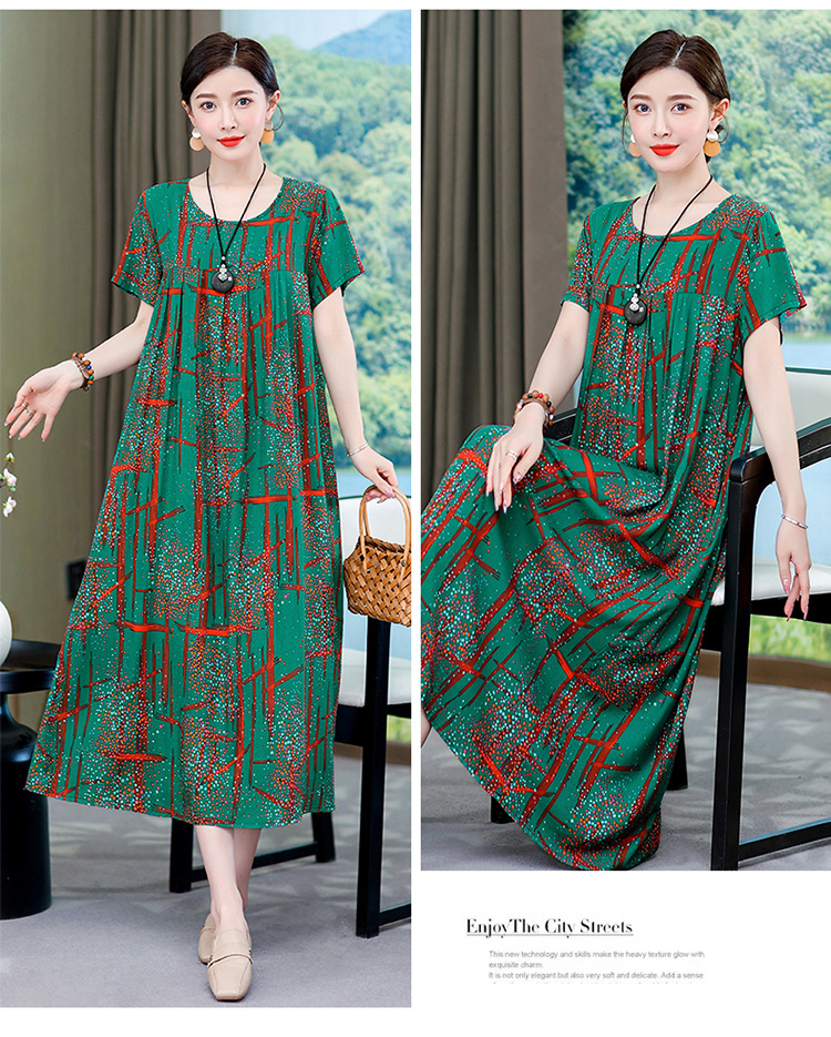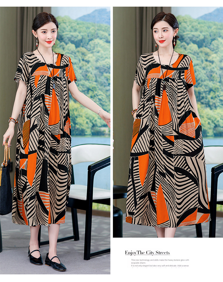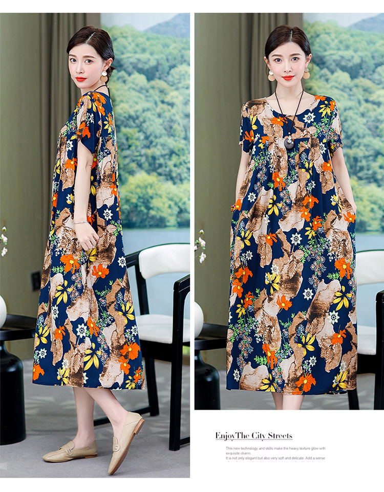 여자의 여름 새로운 라면 느슨한 플러스 사이즈 단색 원피스 여름 한국 중간 길이 이상 무릎 원피스스토어 가기