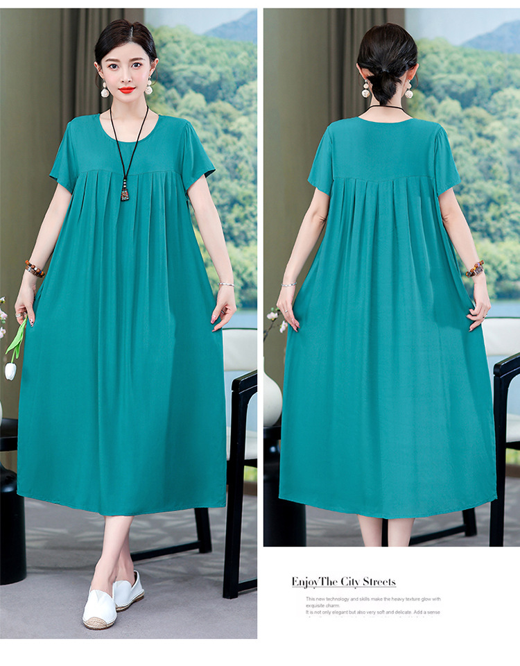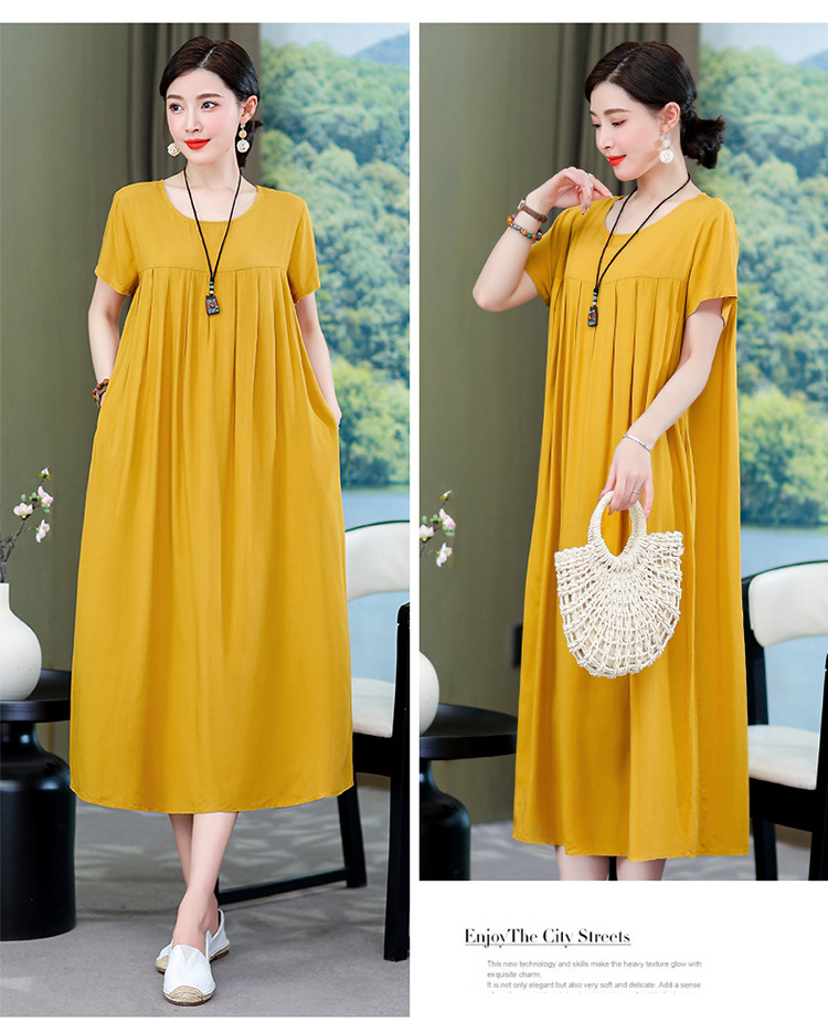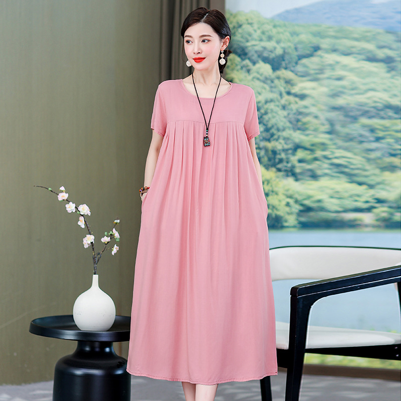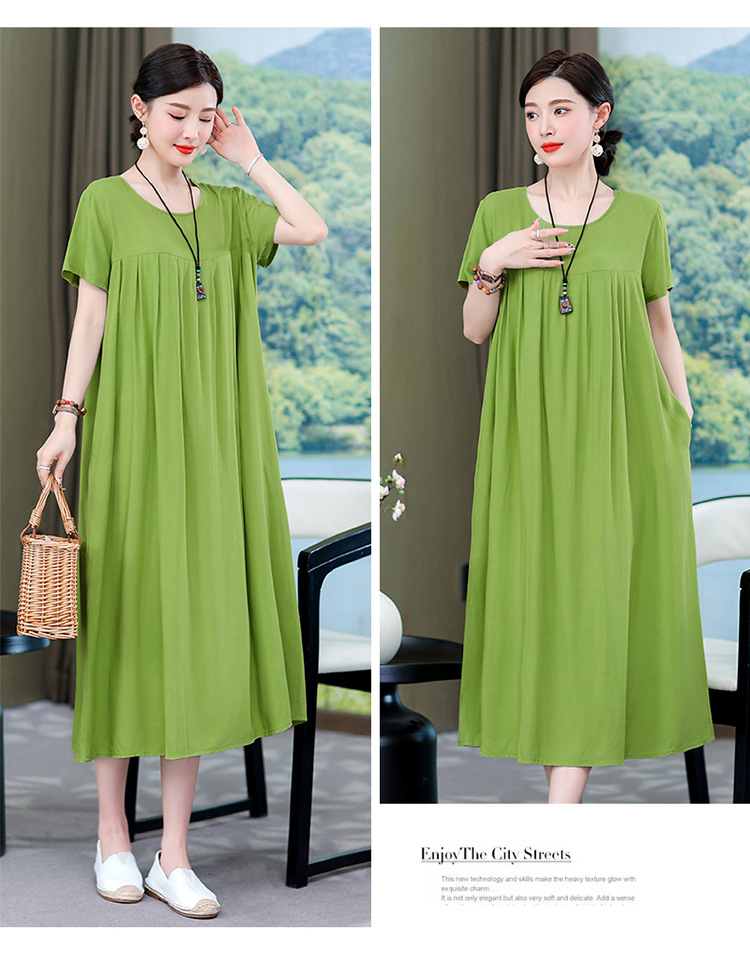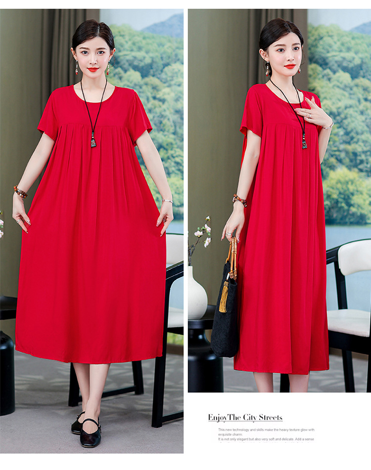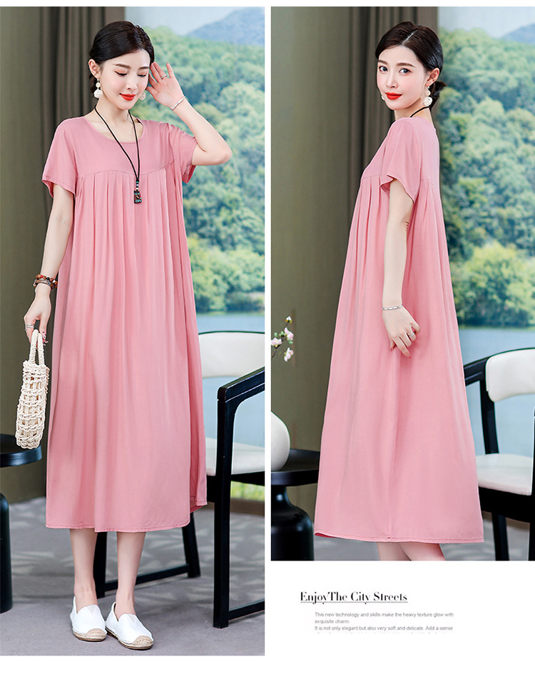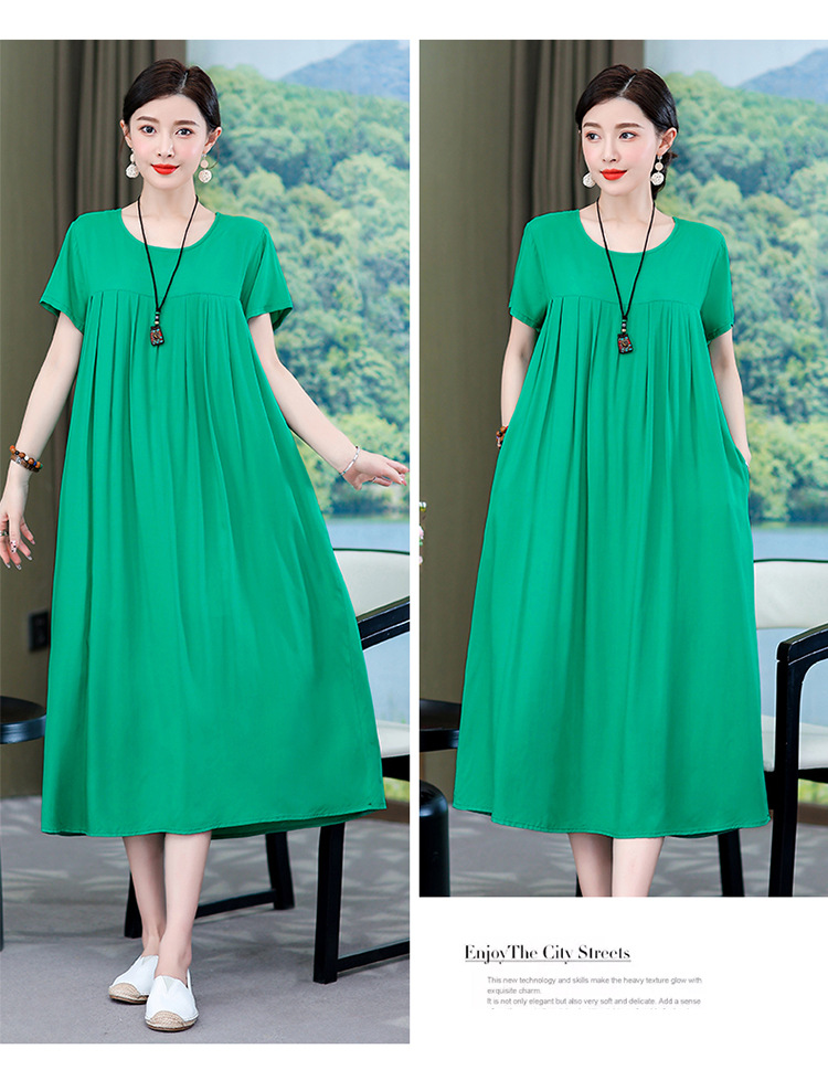 여자의 여름 새로운 라면 느슨한 플러스 사이즈 단색 원피스 여름 한국 중간 길이 이상 무릎 원피스