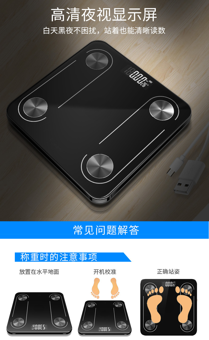 지능형 전자 체중계 인체 가정용 체중계 체지방 체중계 도매 체중계 계량 체중계 블루투스 충전식 체지방 체중계
