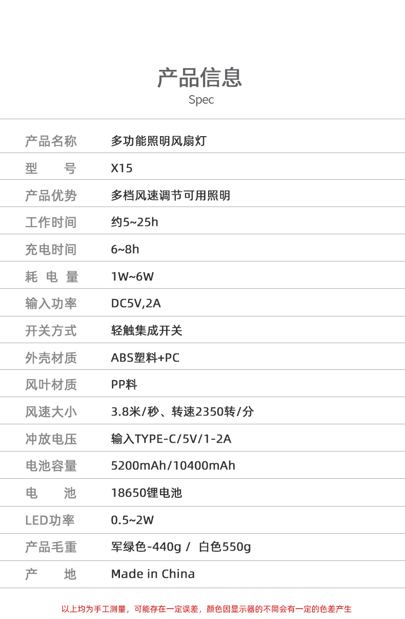 • 리모콘 팬-흰색 [5200Mah: 사용 가능-5H-25h]