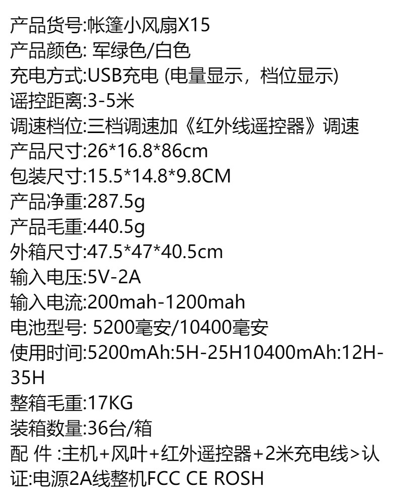 • 리모콘 팬-그린 [10400mAh: 12H-35H 제공]