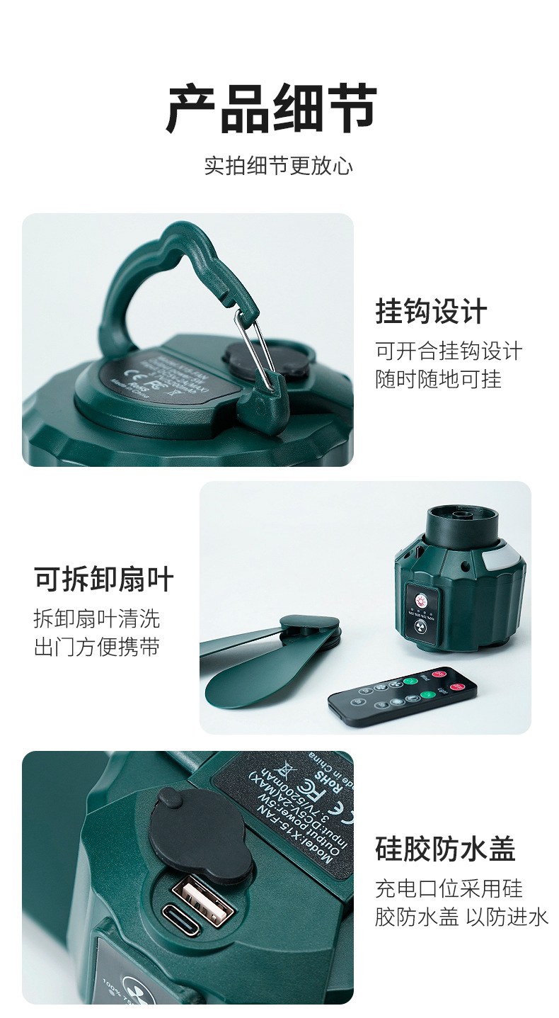 신형 텐트 천정 선풍기 야외 두 잎 선풍기 캠핑 휴대용 USB 캠핑등 기숙사 리모콘 선풍기