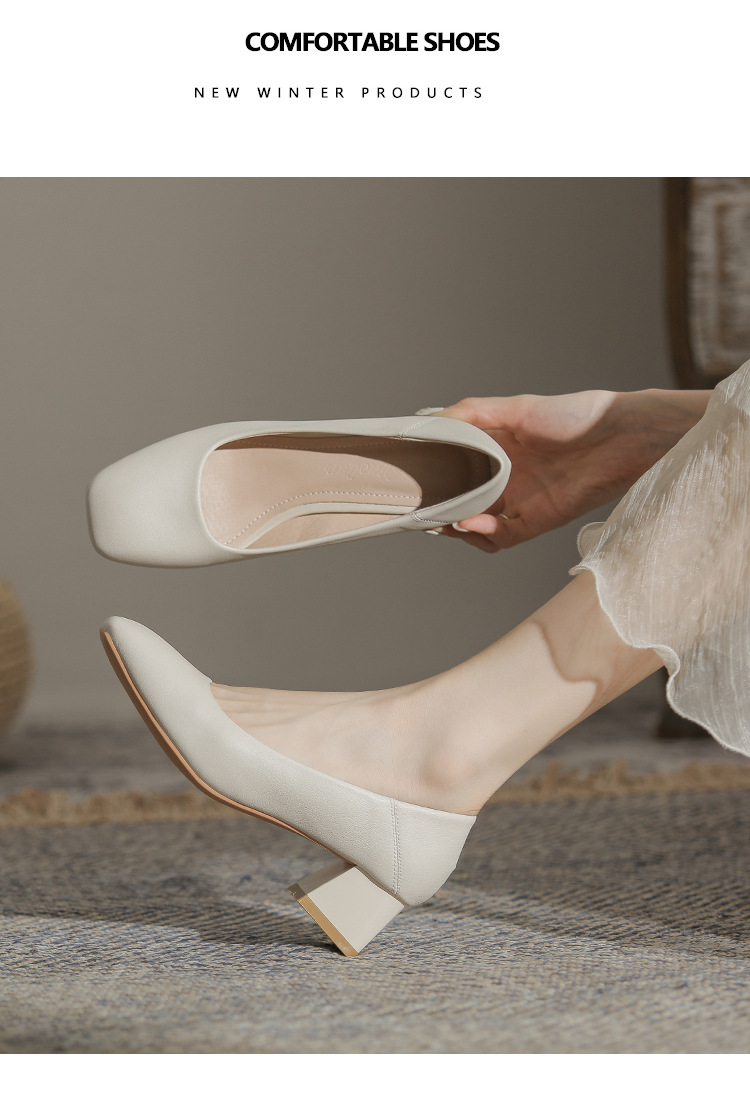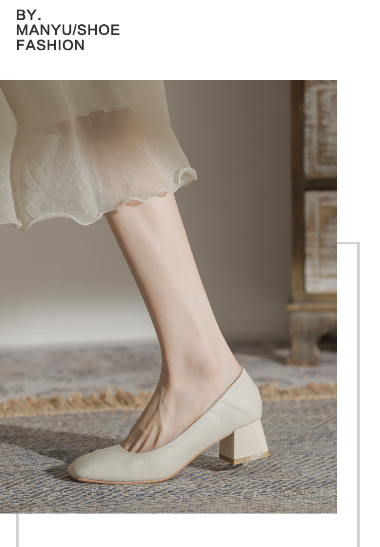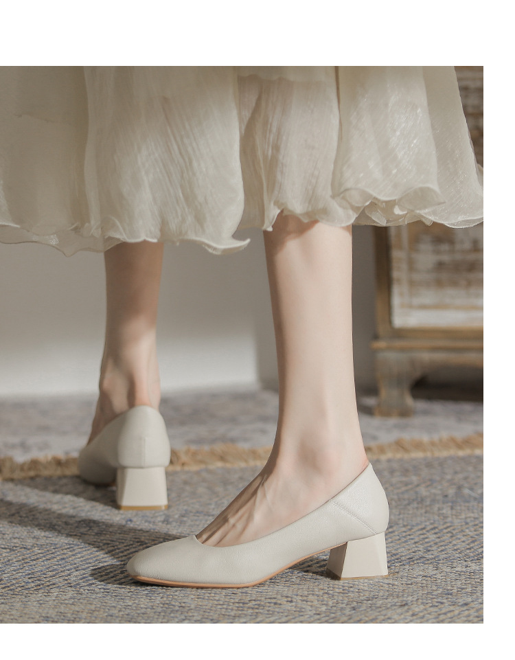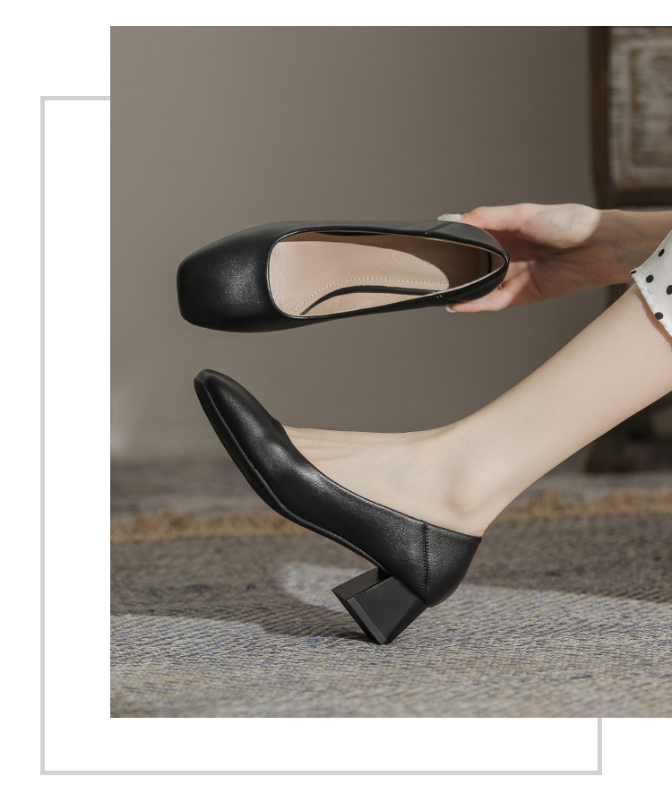 슬립온 천연 가죽 신발, 작업용 부드러운 가죽 봄 가을 여성화, 한국 스타일, 스커트와 잘 어울리는 사계절용 스퀘어토 메리제인 슈즈스토어 가기