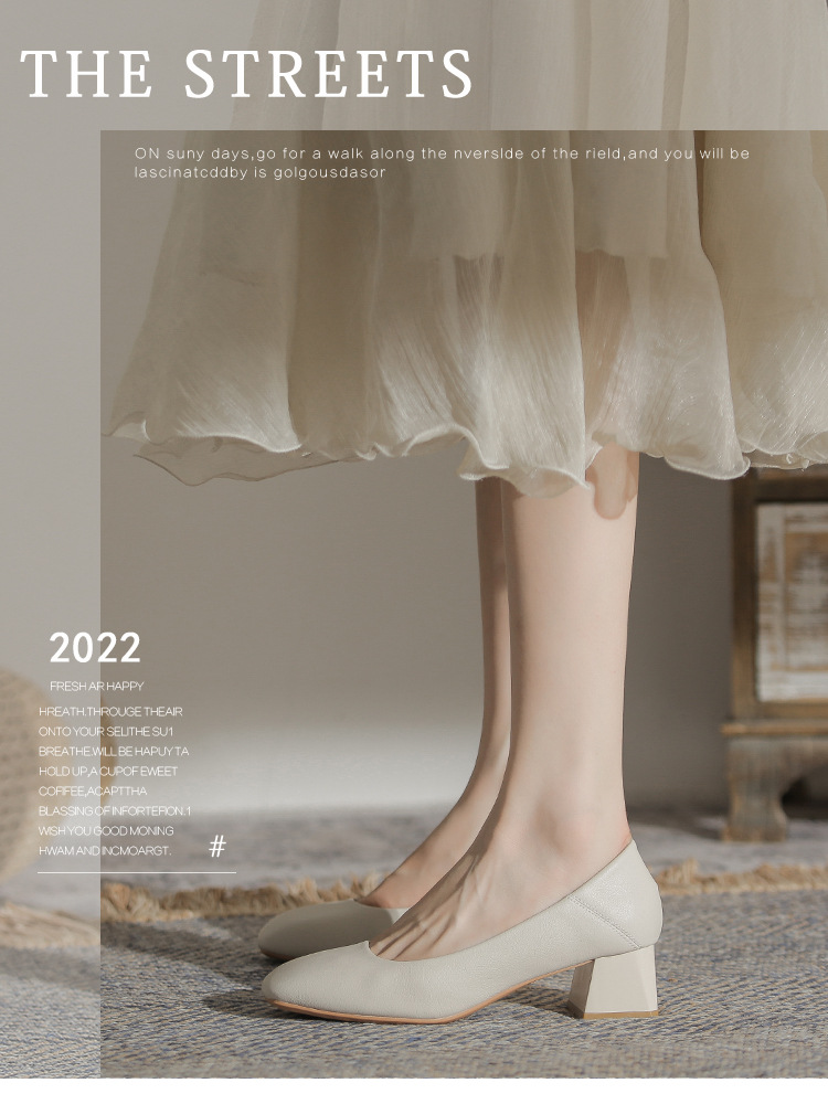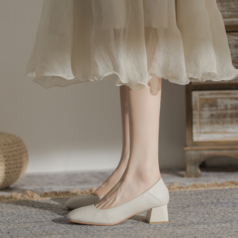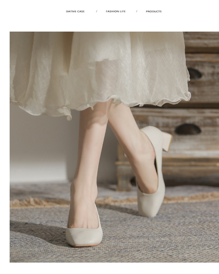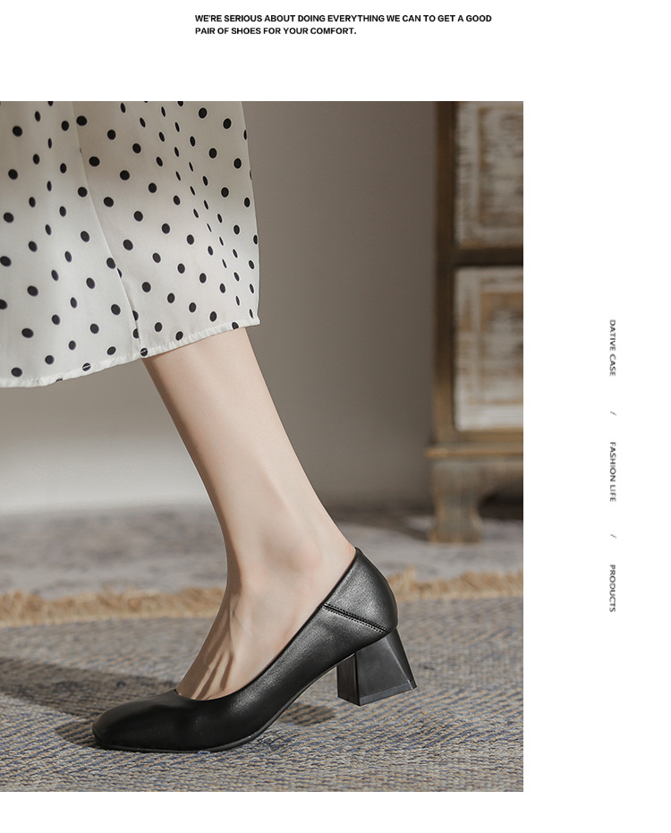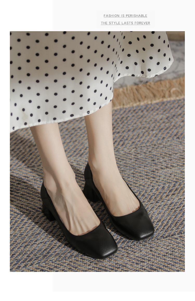 슬립온 천연 가죽 신발, 작업용 부드러운 가죽 봄 가을 여성화, 한국 스타일, 스커트와 잘 어울리는 사계절용 스퀘어토 메리제인 슈즈스토어 가기