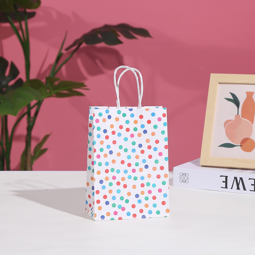 牛皮纸手提袋批发印花图案纸袋烫金圆点波点包装袋购物礼品袋子创
