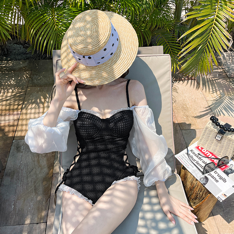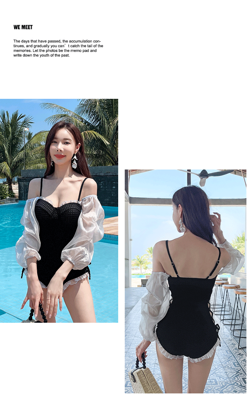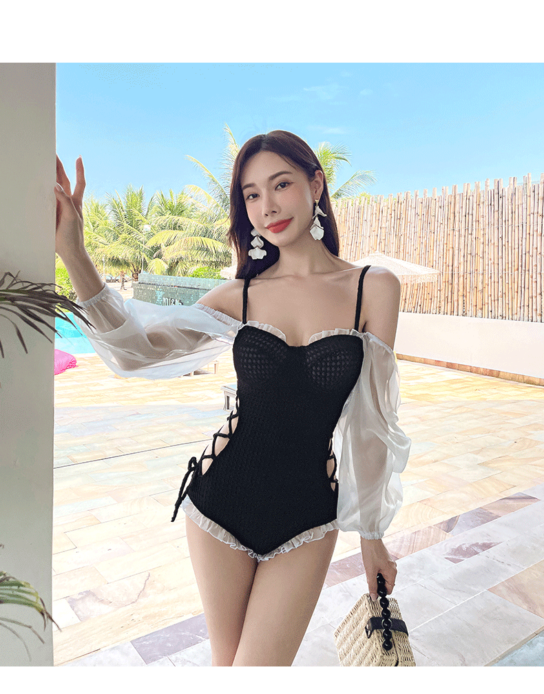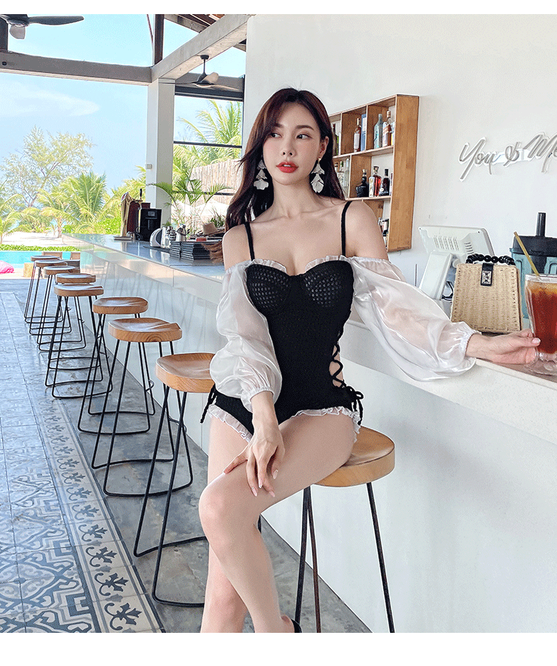 수영복 여성용 인스 타 그램 스타일 원 숄더 보수적 삼각형 비키니 가슴 패드 모여 슬림 배꼽 덮음 휴가 온천 수영복스토어 가기