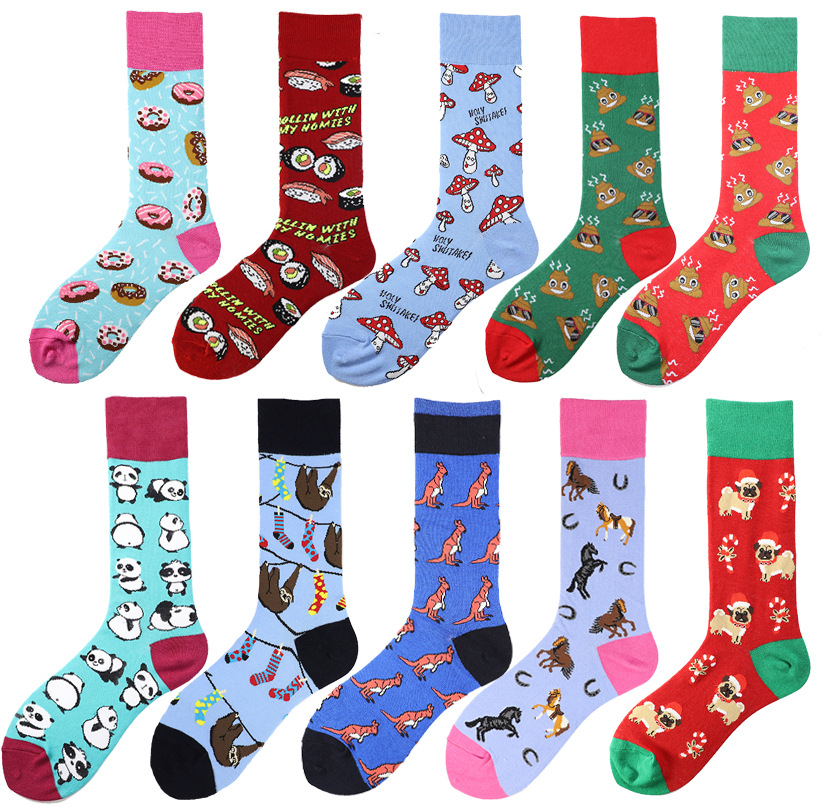 국경을 넘는 신상품 HAPPY 트렌디 남녀 양말 도매, 중간 길이 양말, 개성 있는 수출용 남녀 면 양말, 오리지널 디자인스토어 가기