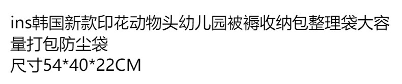 In 한국 새로운 인쇄 동물 머리 유치원 침구 보관 가방 기와 가방 대용량 포장 먼지 가방