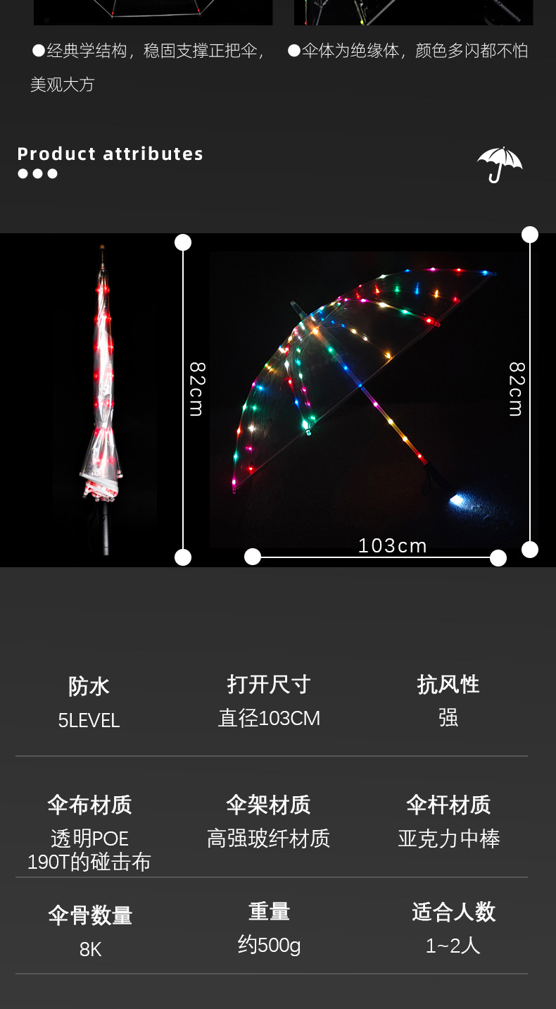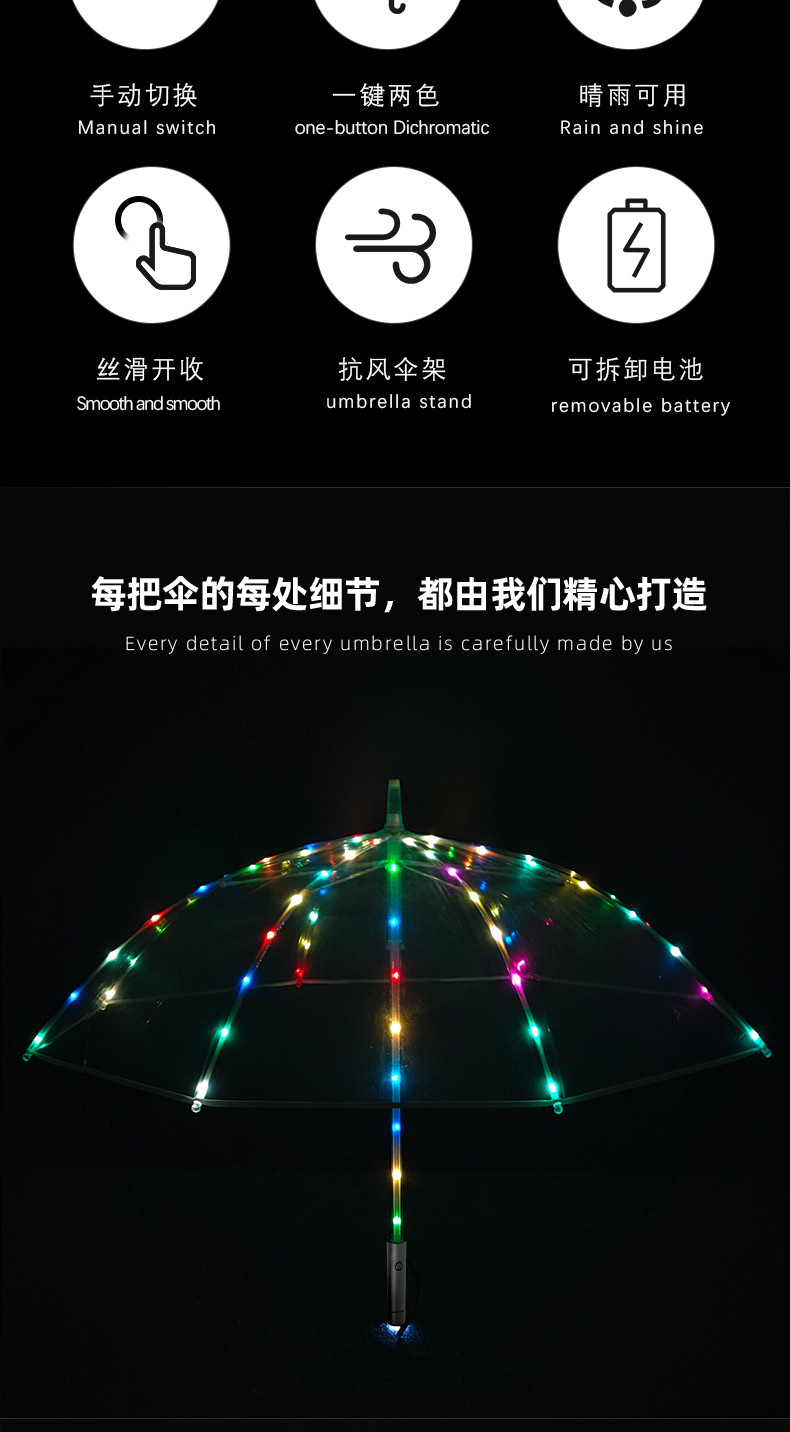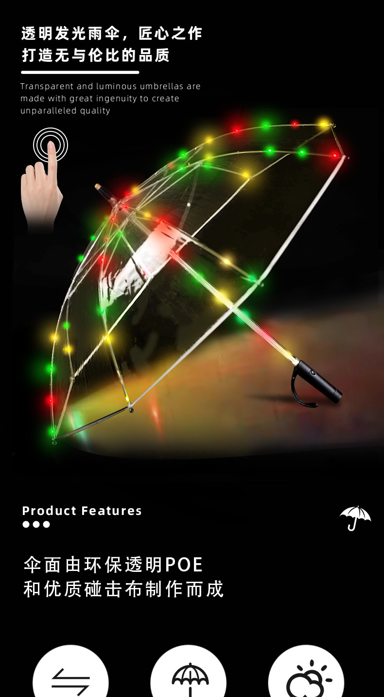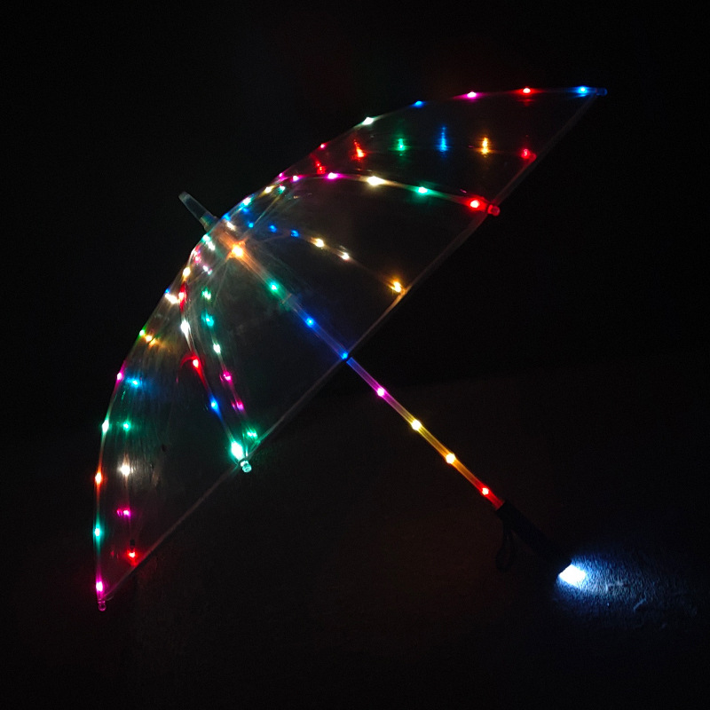 재고 도매 LED 투명 전체 발광 다채로운 조명 포 우산 아크릴 우산 스탠드 하늘 별 빛 우산 공장 전체스토어 가기